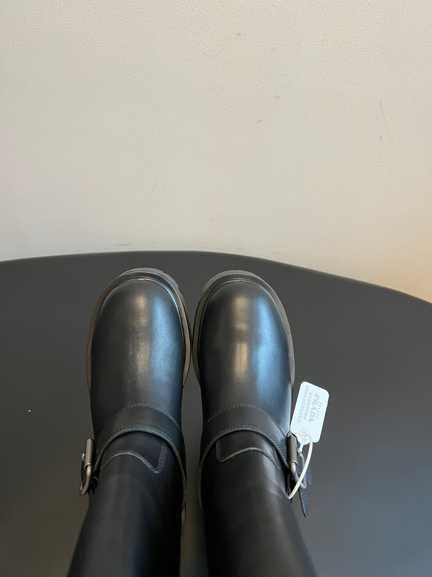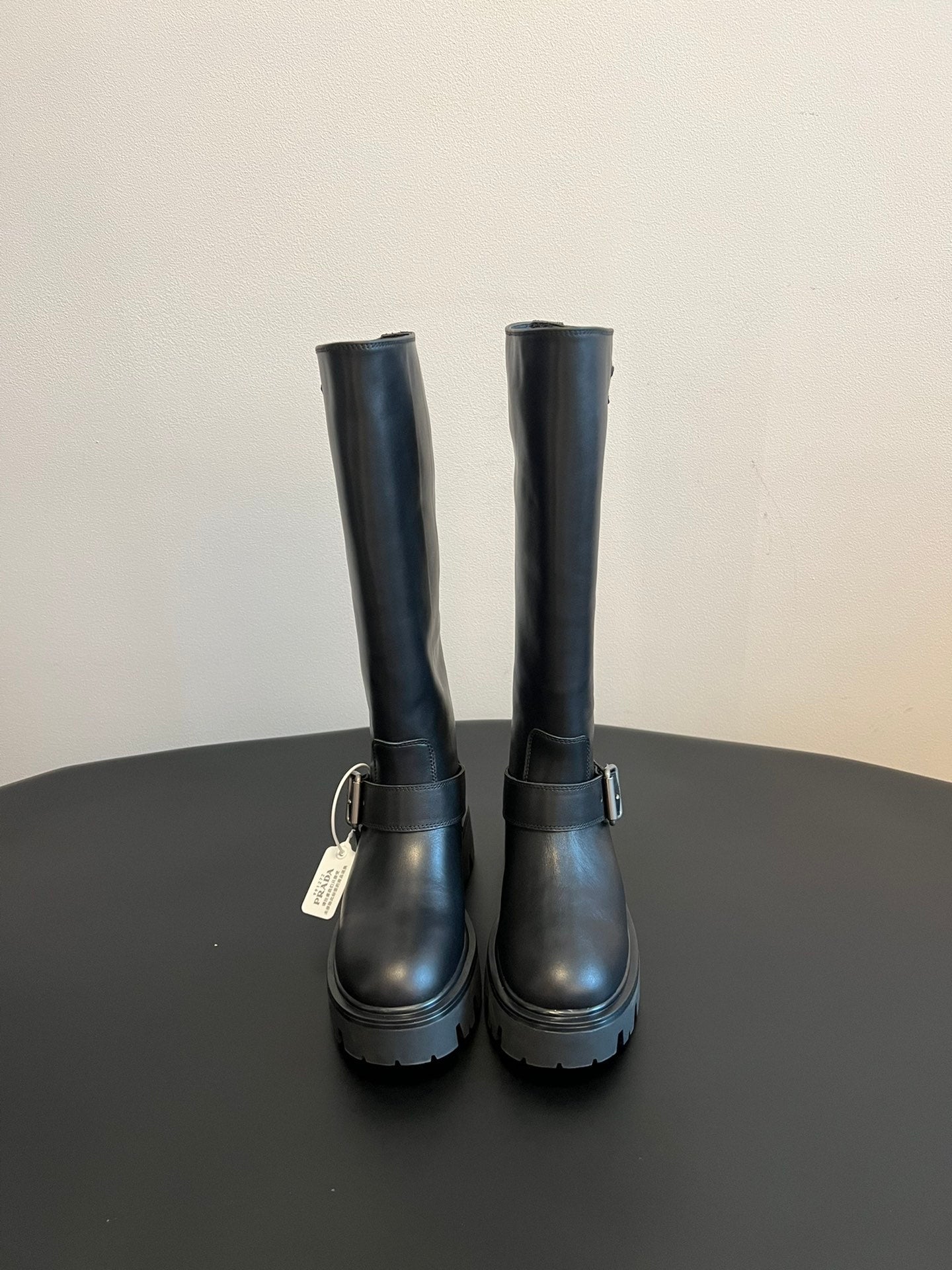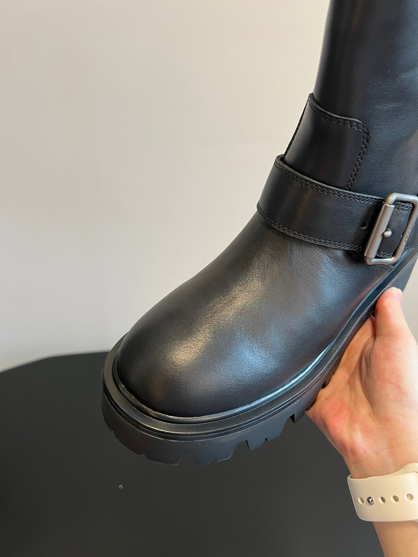 PRADA 25S HIGH-CUT PLATFORM BOOTS IN BLACK CALFSKIN WITH SILVER HARDWARE