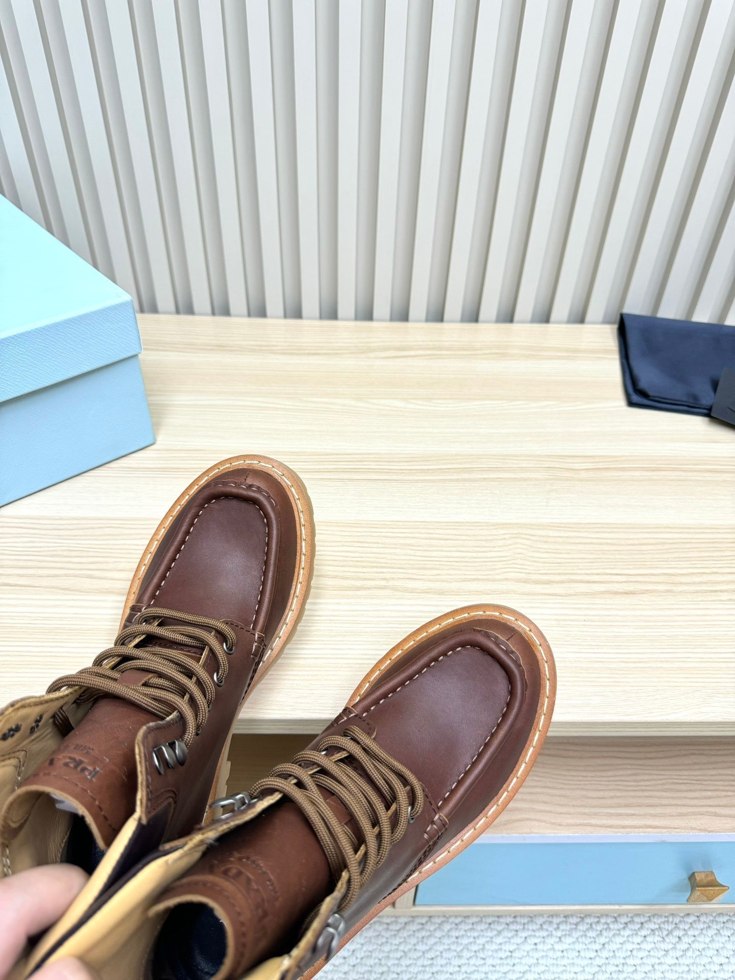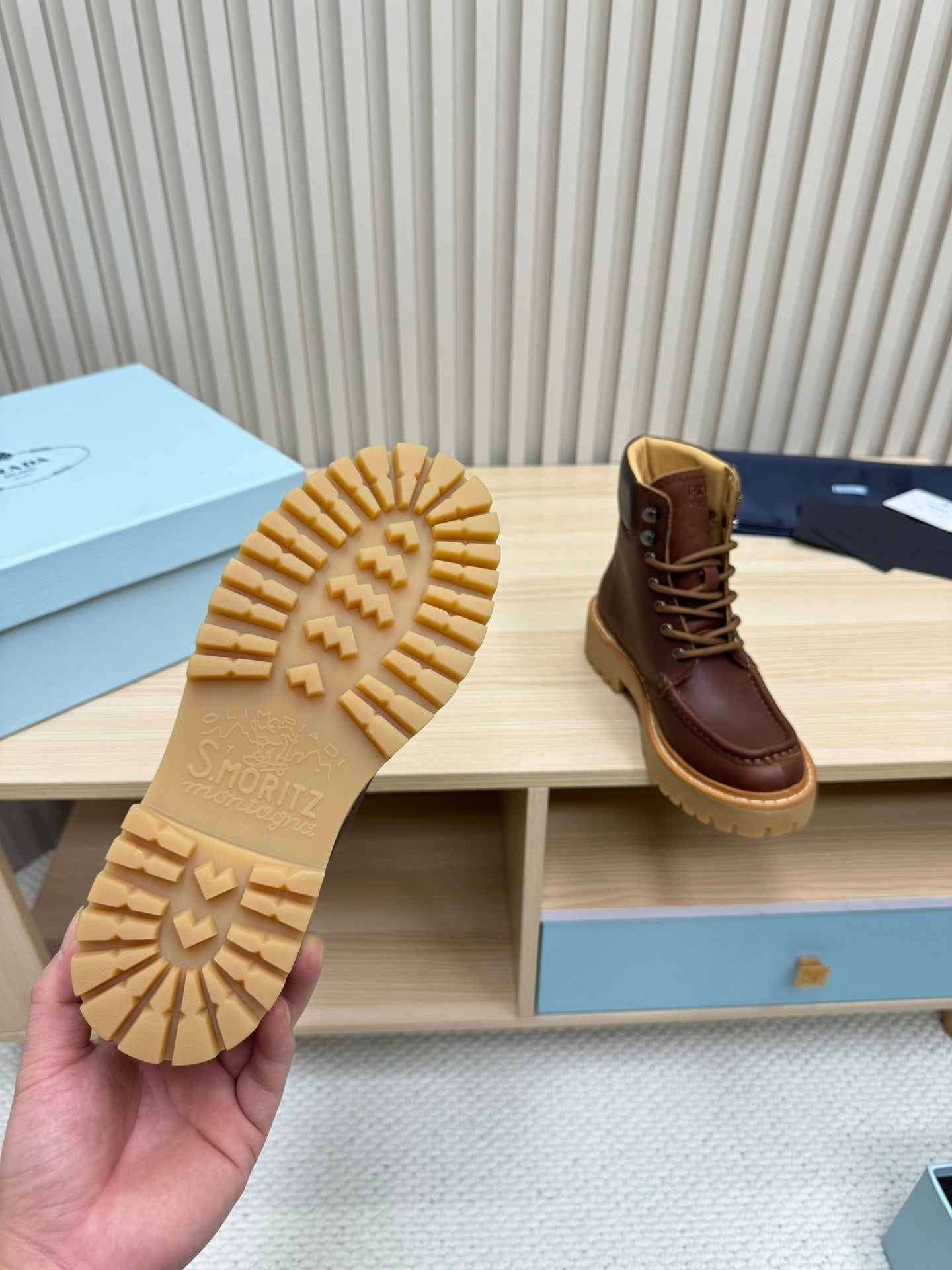 PRADA 25S LACE-UP ANKLE BOOTS IN DARK BROWN CALFSKIN