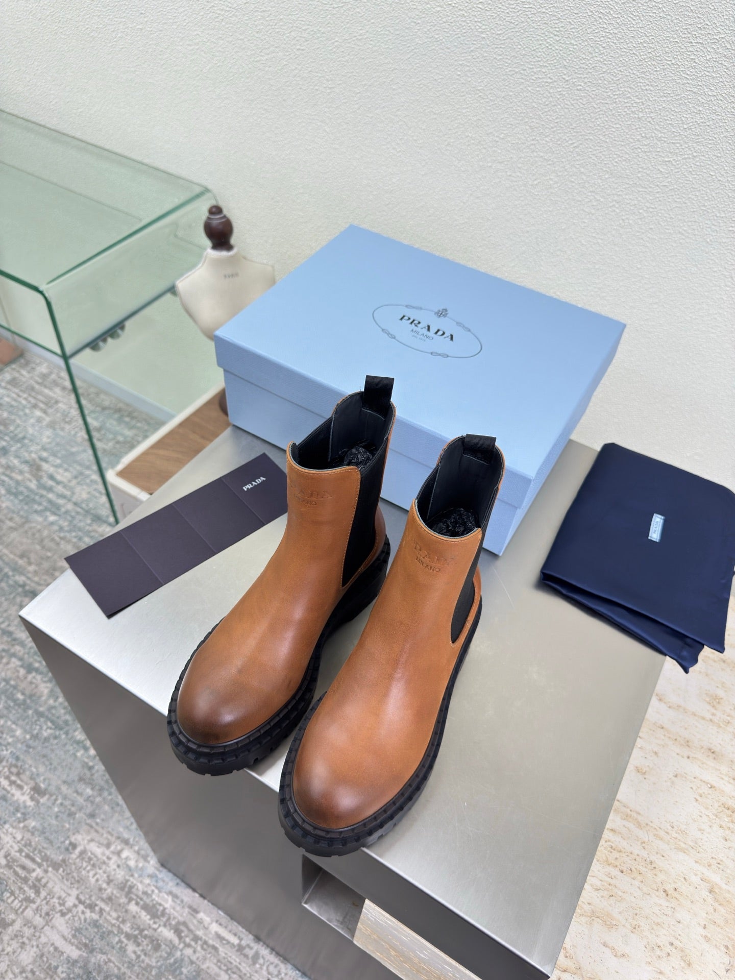 PRADA 25S PLATFORM CHELSEA BOOTS IN BROWN CALFSKIN