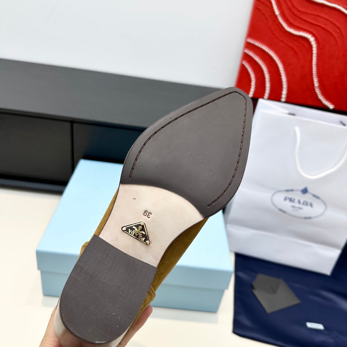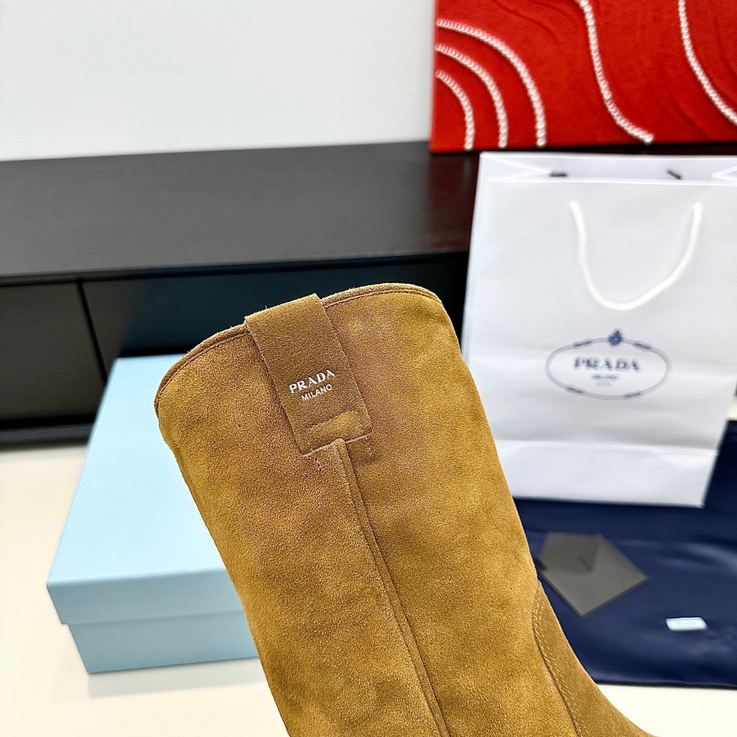 PRADA 25S POINTED-TOE LOW-CUT BOOTS IN CARAMEL BROWN SUEDE