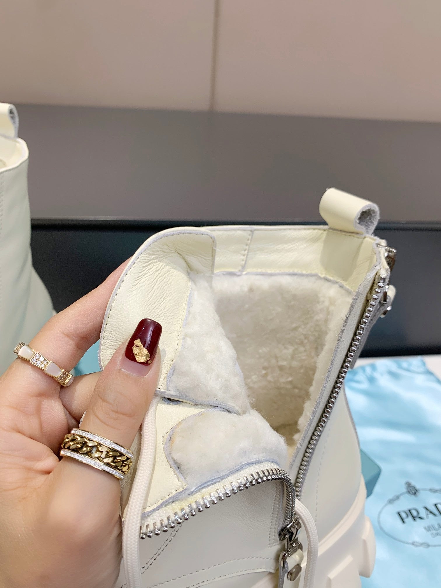 PRADA 25S SNOW BOOTS IN WHITE CALFSKIN