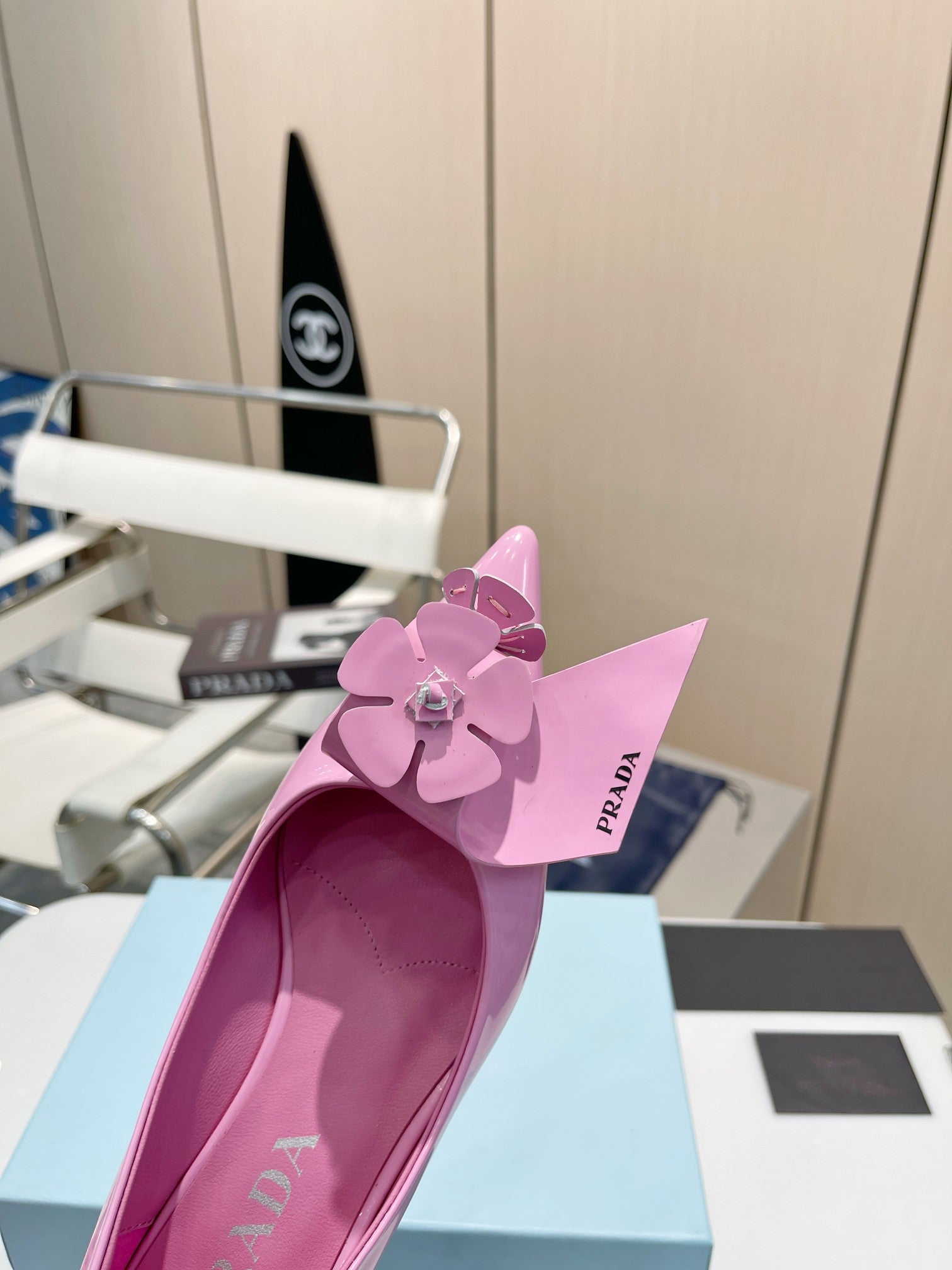 BALLET FLATS POINTED TOE IN PINK SHINY CALFSKIN ATTACHED FLOWERS