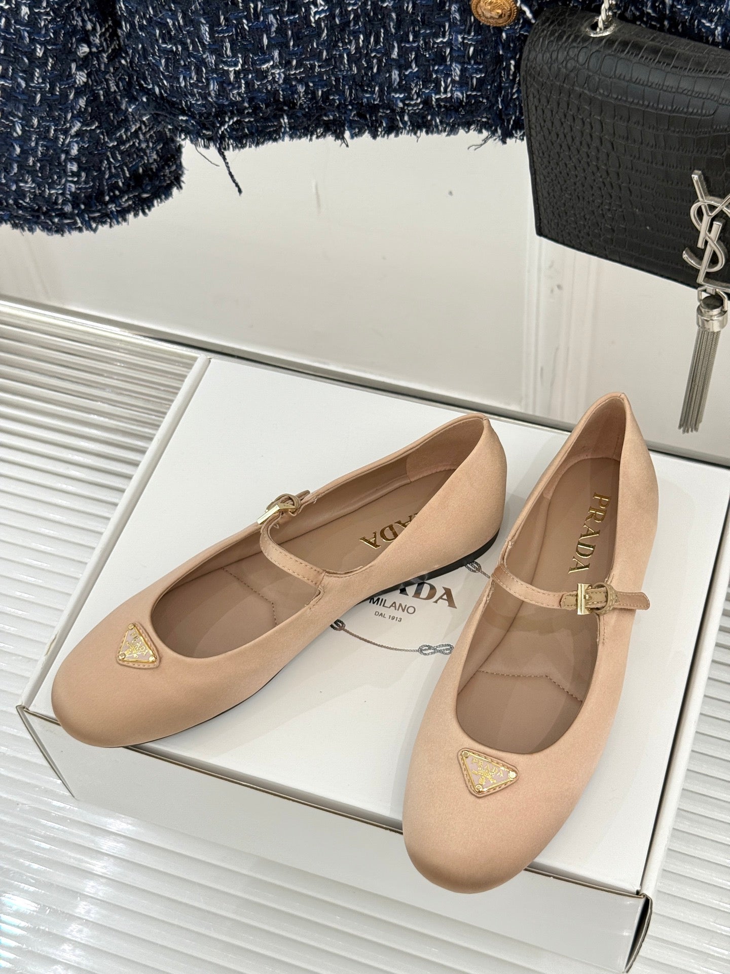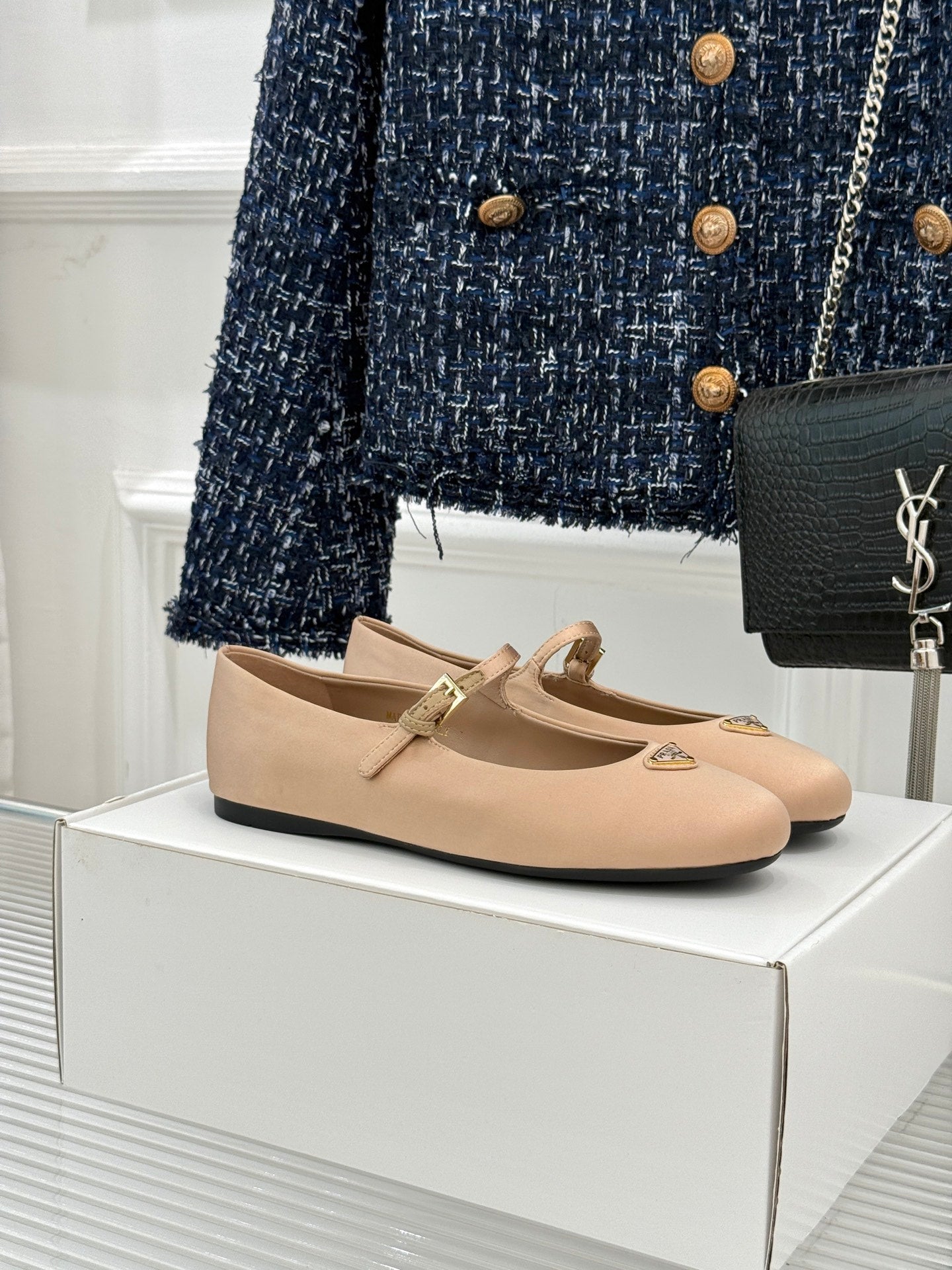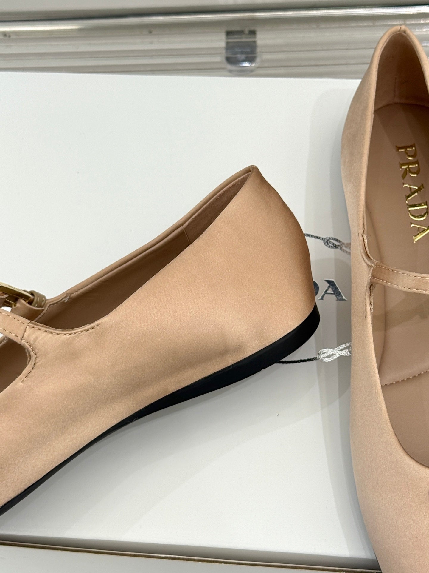 PRADA 25S BALLERINAS IN NUDE SATIN