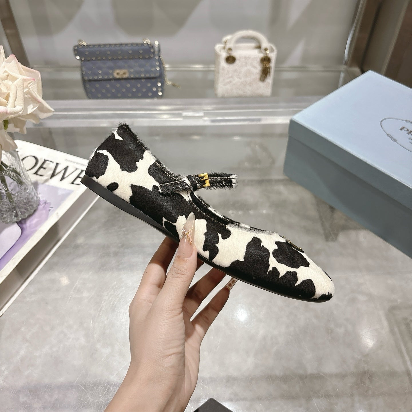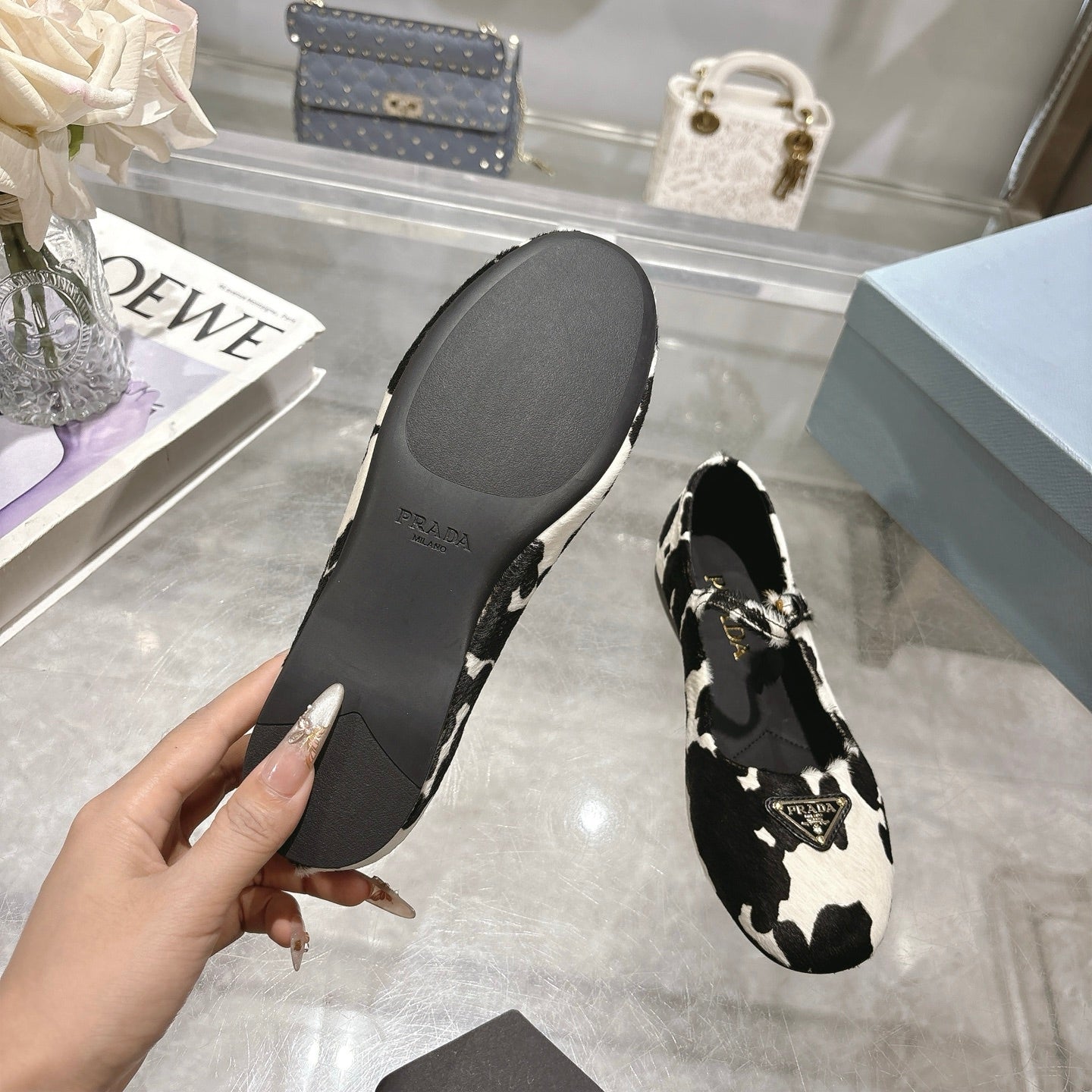 PRADA 25S MARY JANE BALLETS IN BLACK MIX CREAM WHITE HORSEHAIR FABRIC