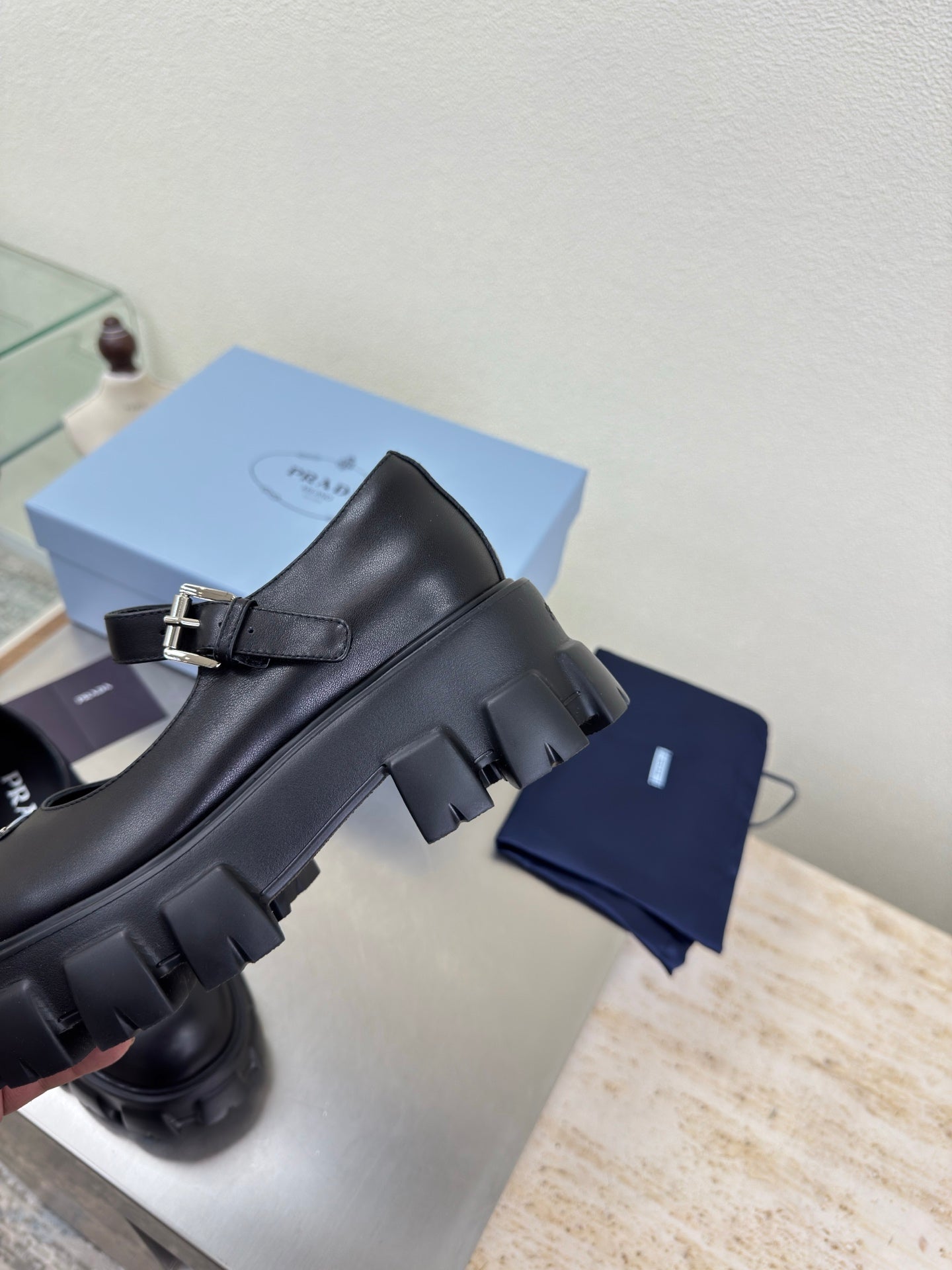 PRADA 25S PLATFORM MARY JANE SHOES IN BLACK CALFSKIN STYLE 1