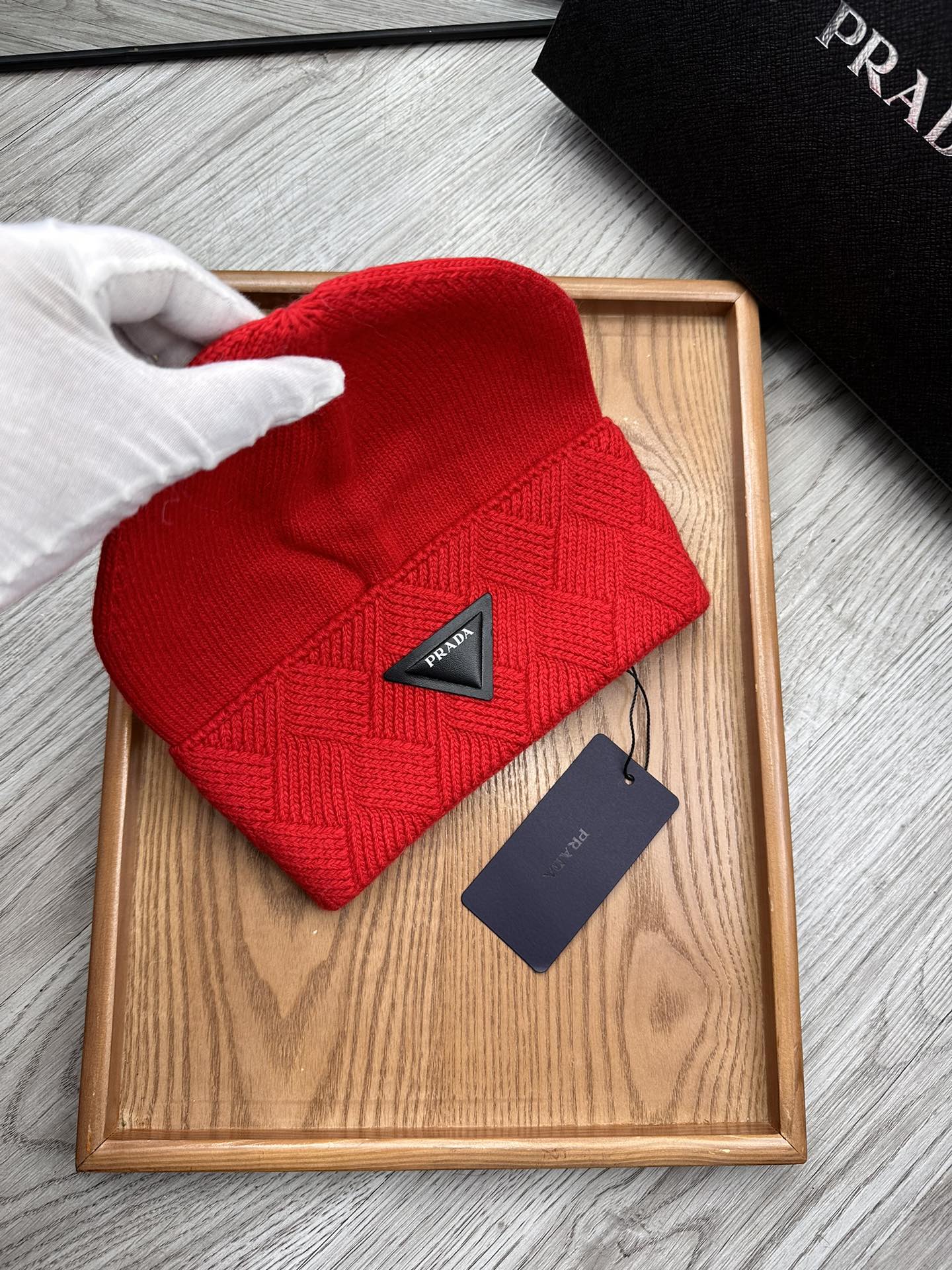 BEANIE HAT IN CHERRY RED WOOL AND RABBIT FUR 342036