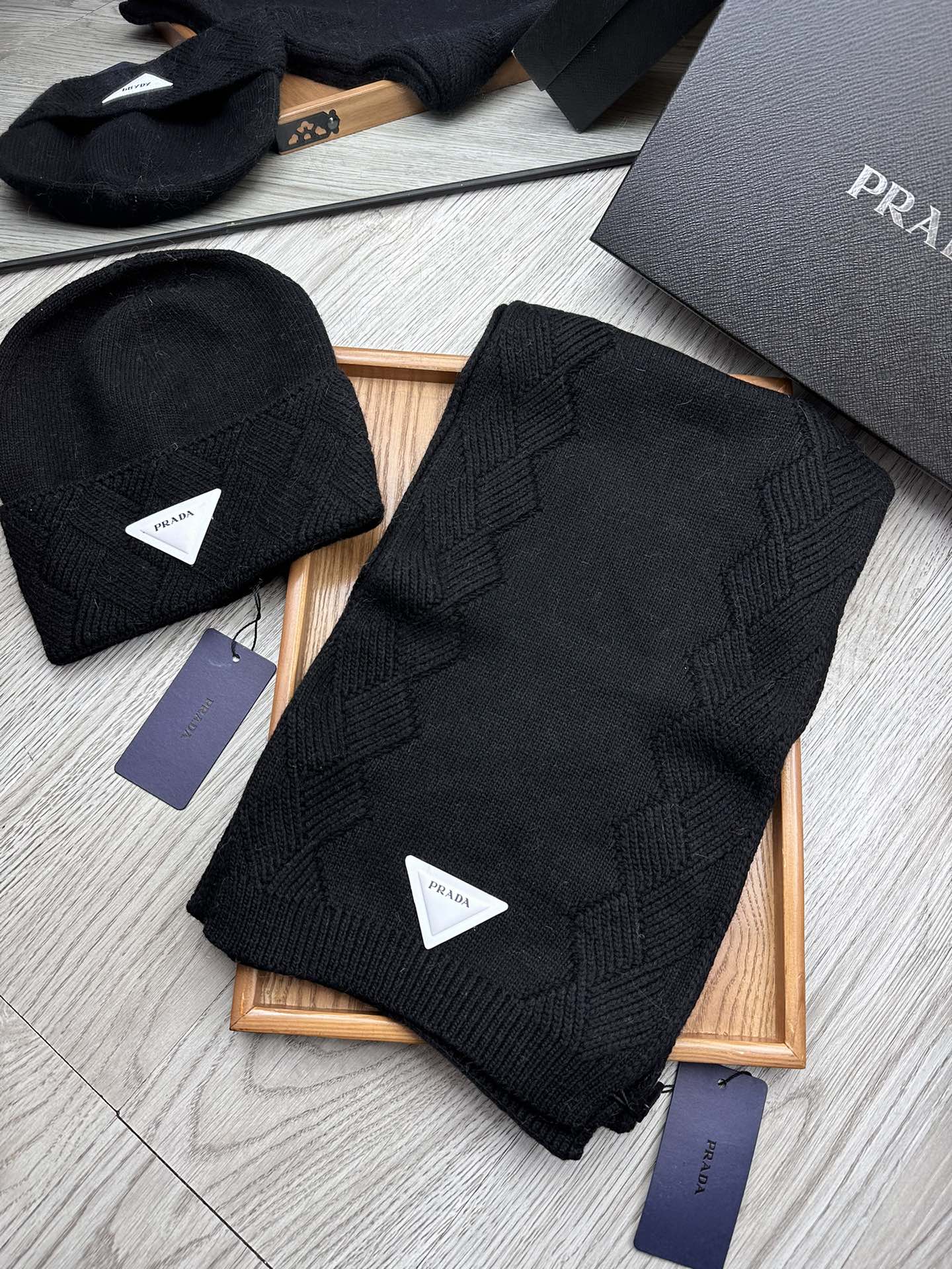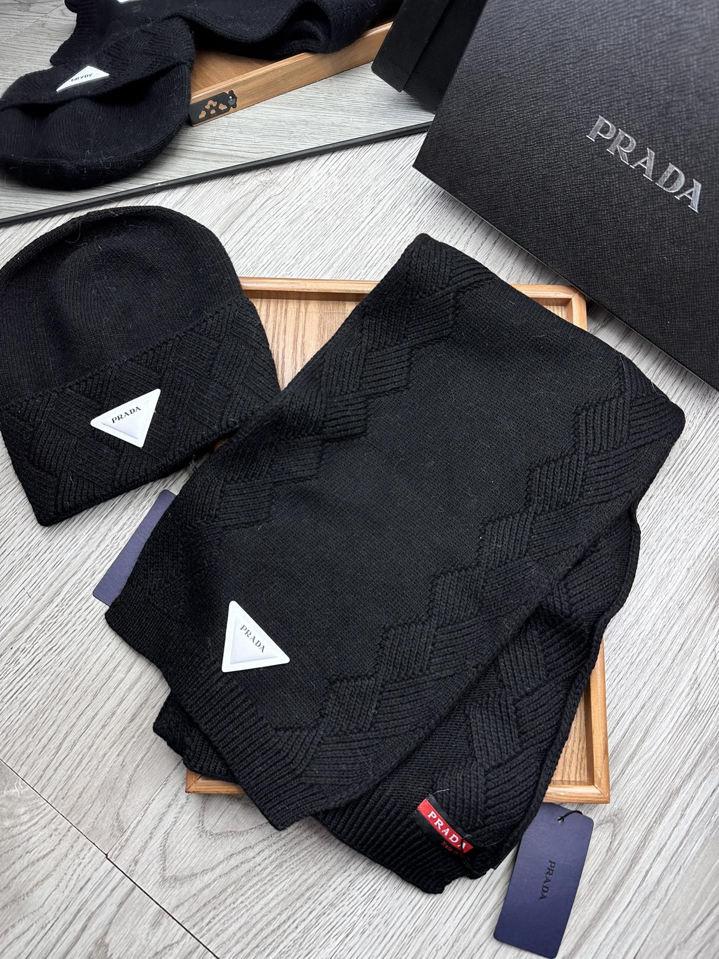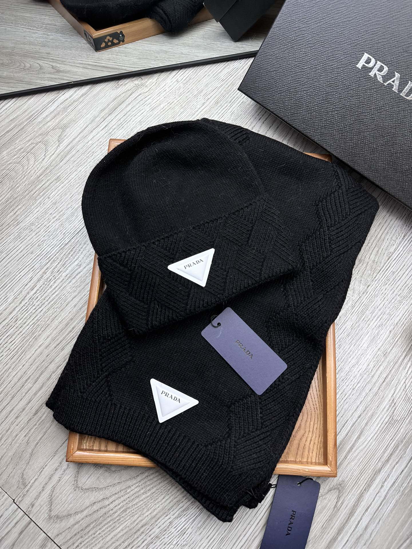 SET SCARF AND HAT IN BLACK WOOL AND RABBIT FUR 397410