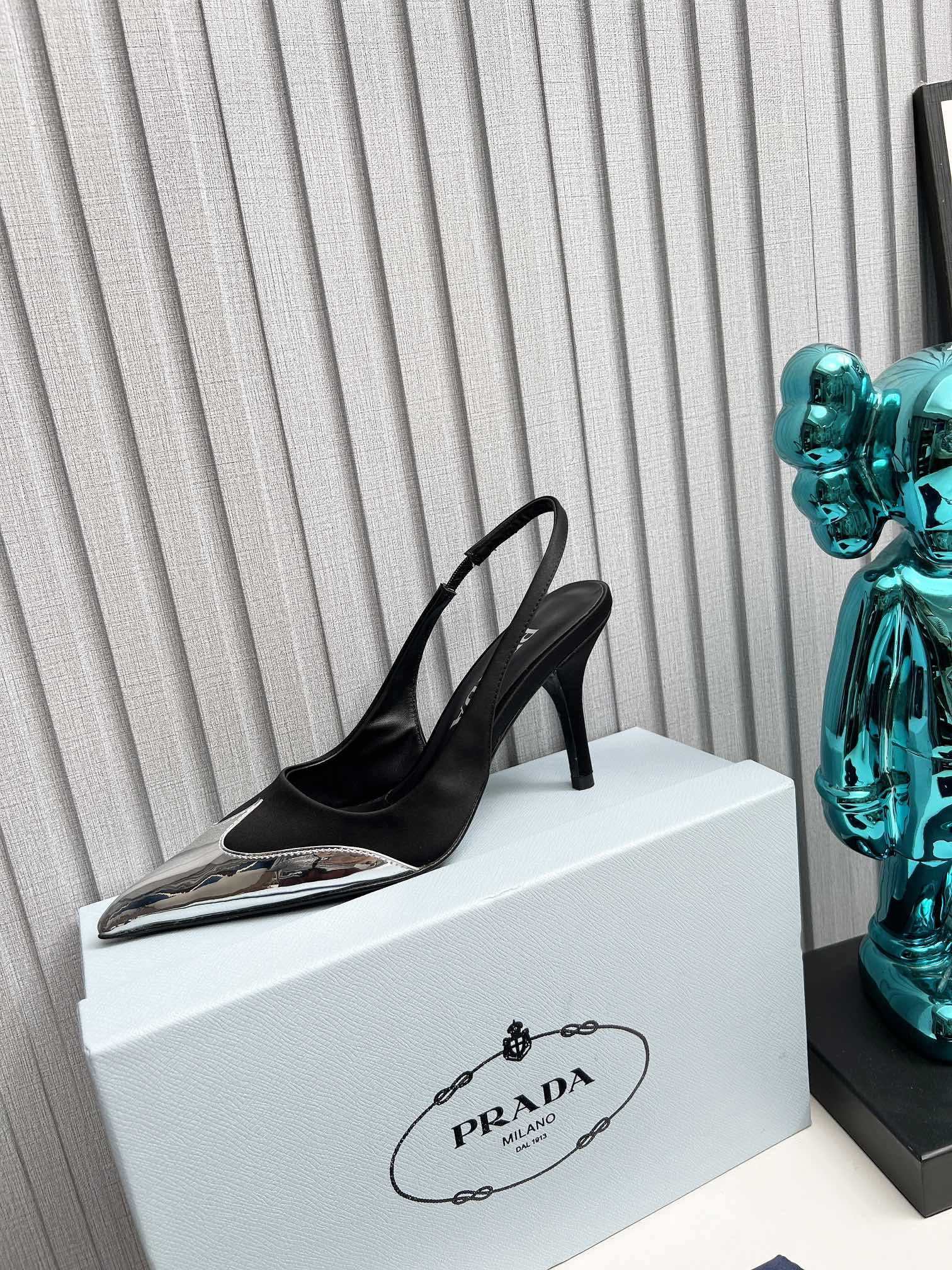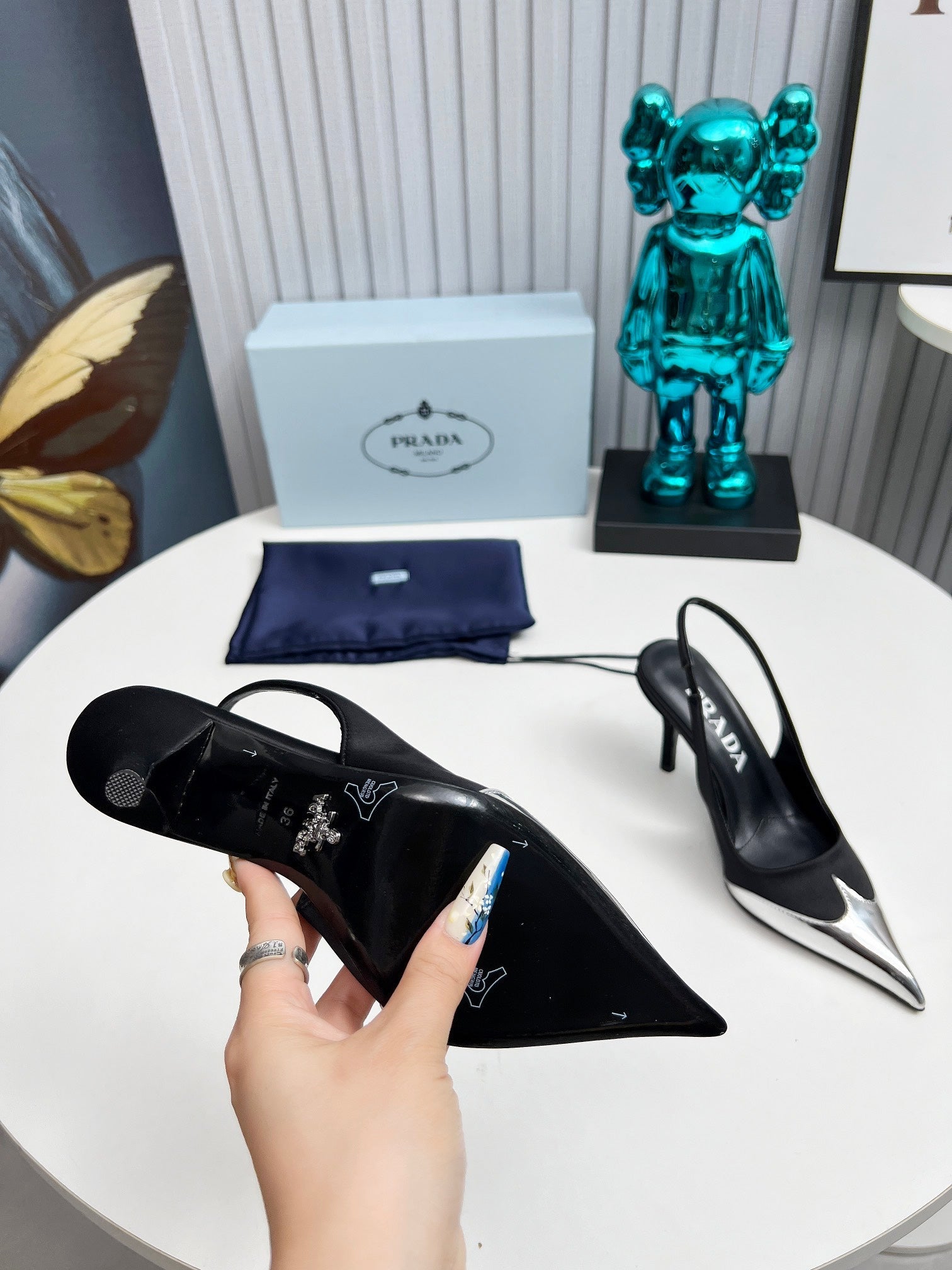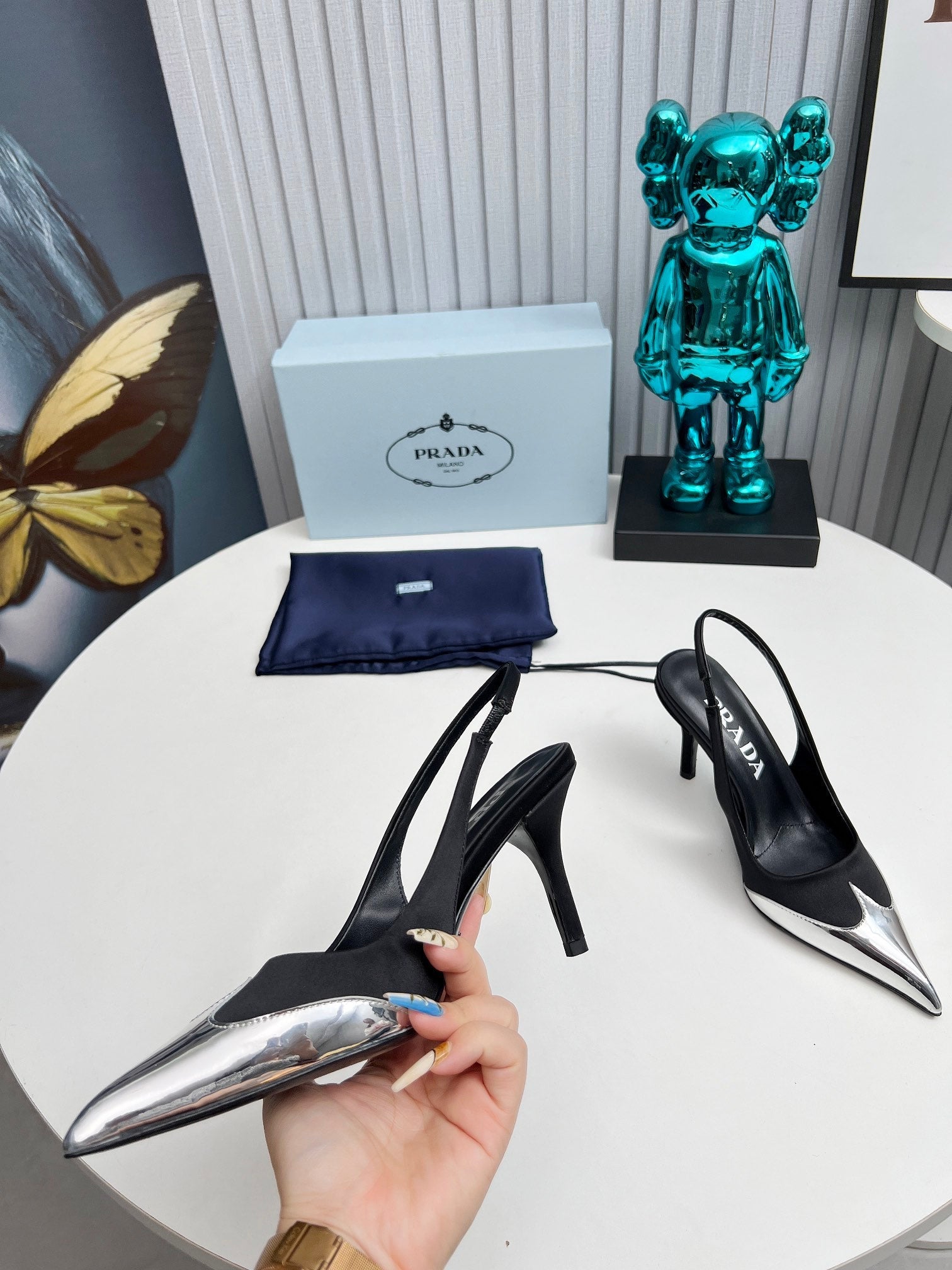 HIGH SLING BACK PUMPS IN SILVER MIX BLACK SATIN