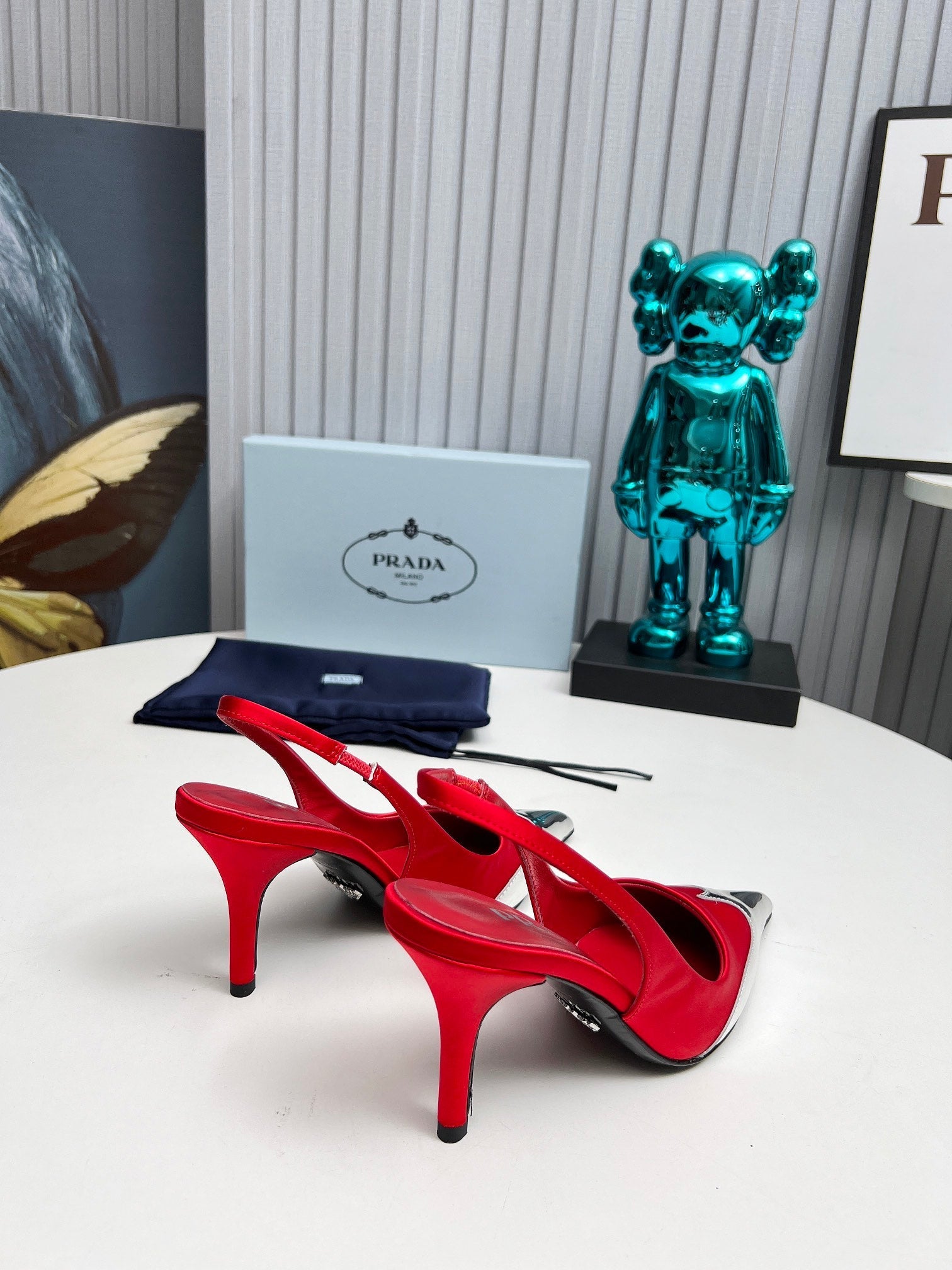 HIGH SLING BACK PUMPS IN SILVER MIX RED SATIN