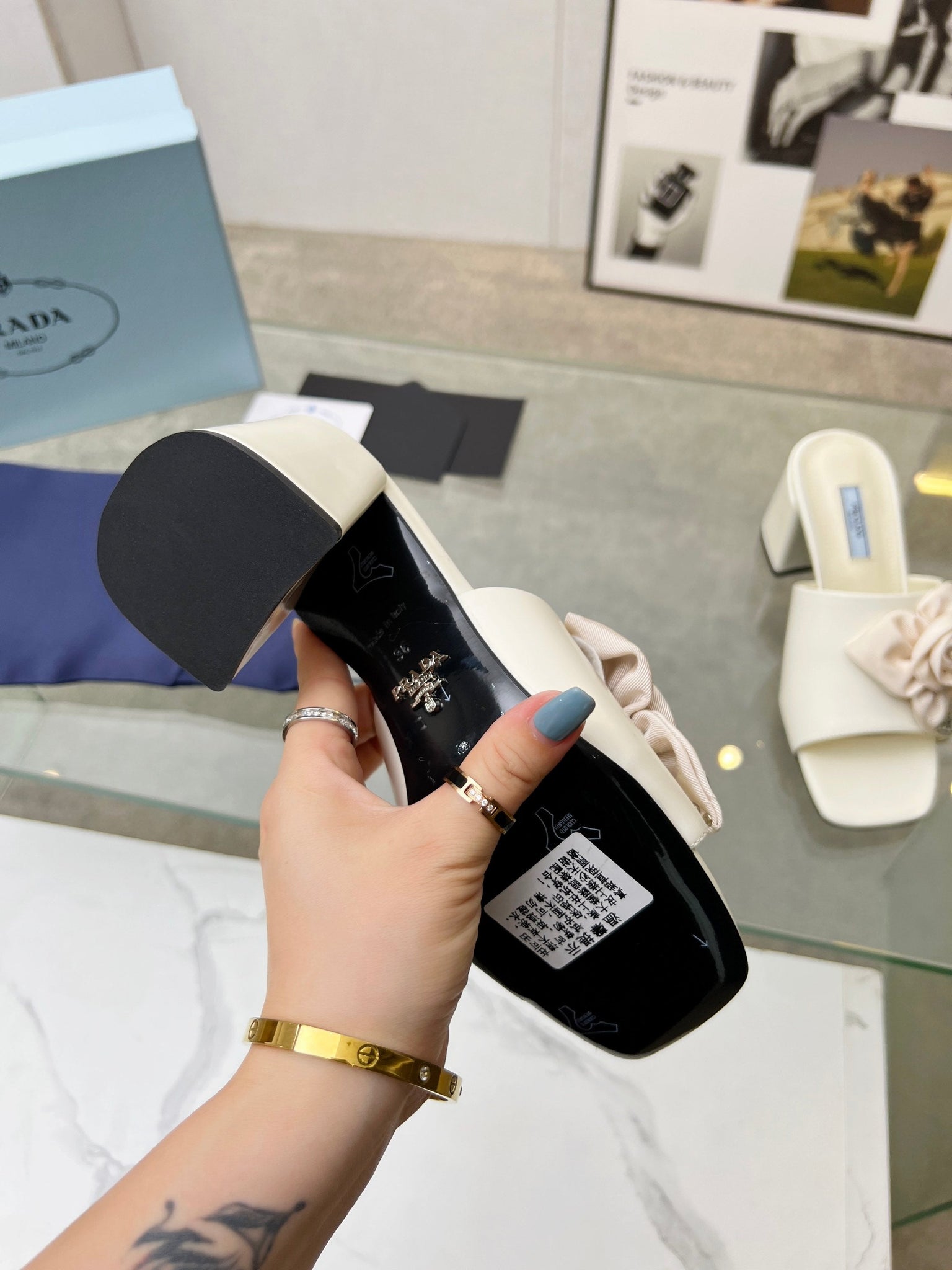 PRA FLOWER BLOCK HEELS 75 IVORY CALFSKIN