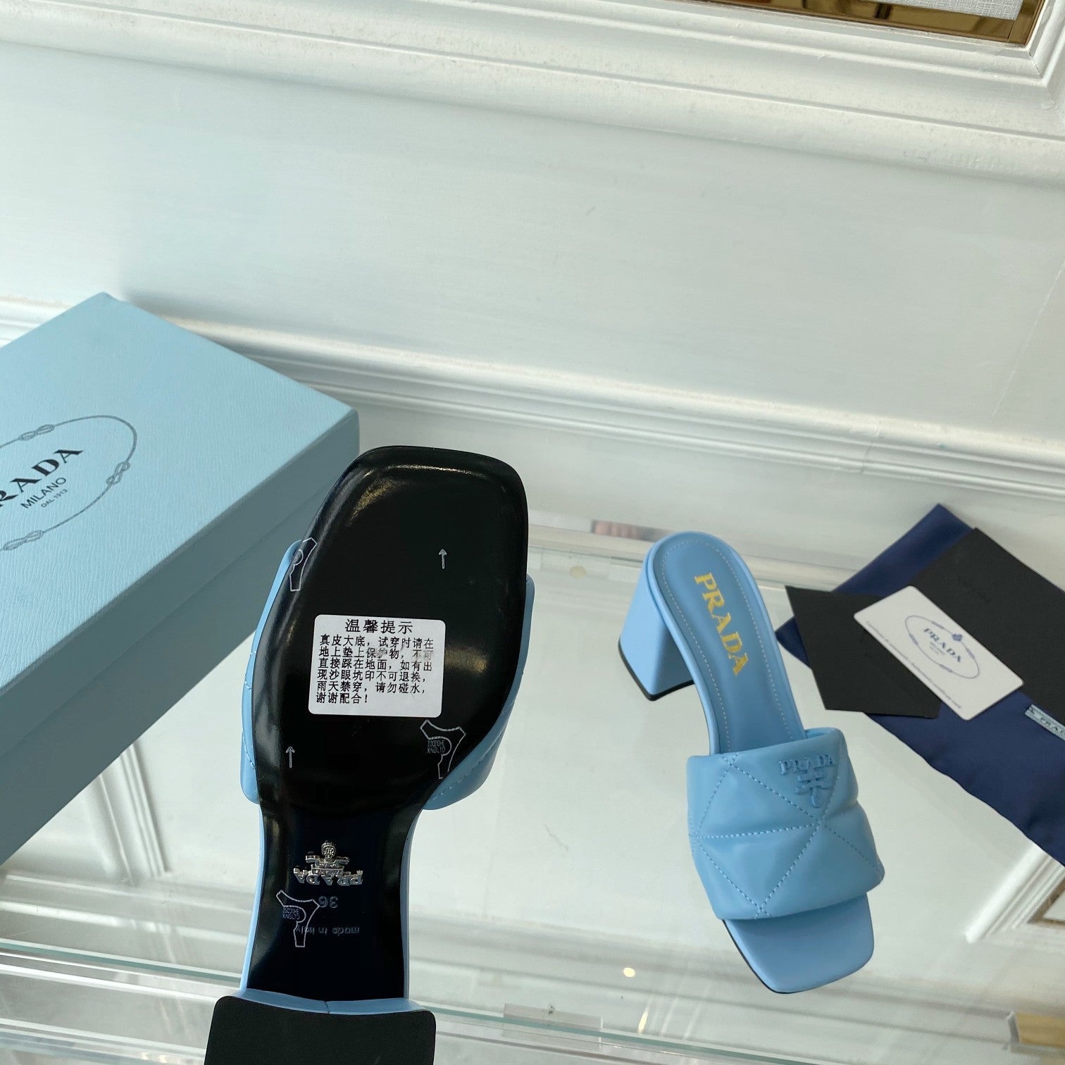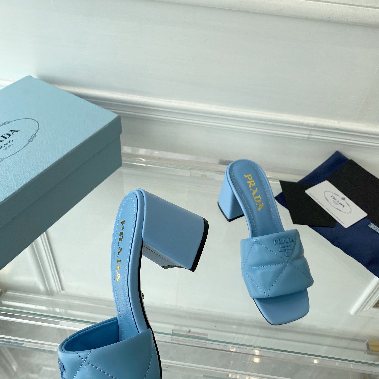 PRA QUILTED NAPPA HEELED SANDALS SKY LAMBSKIN