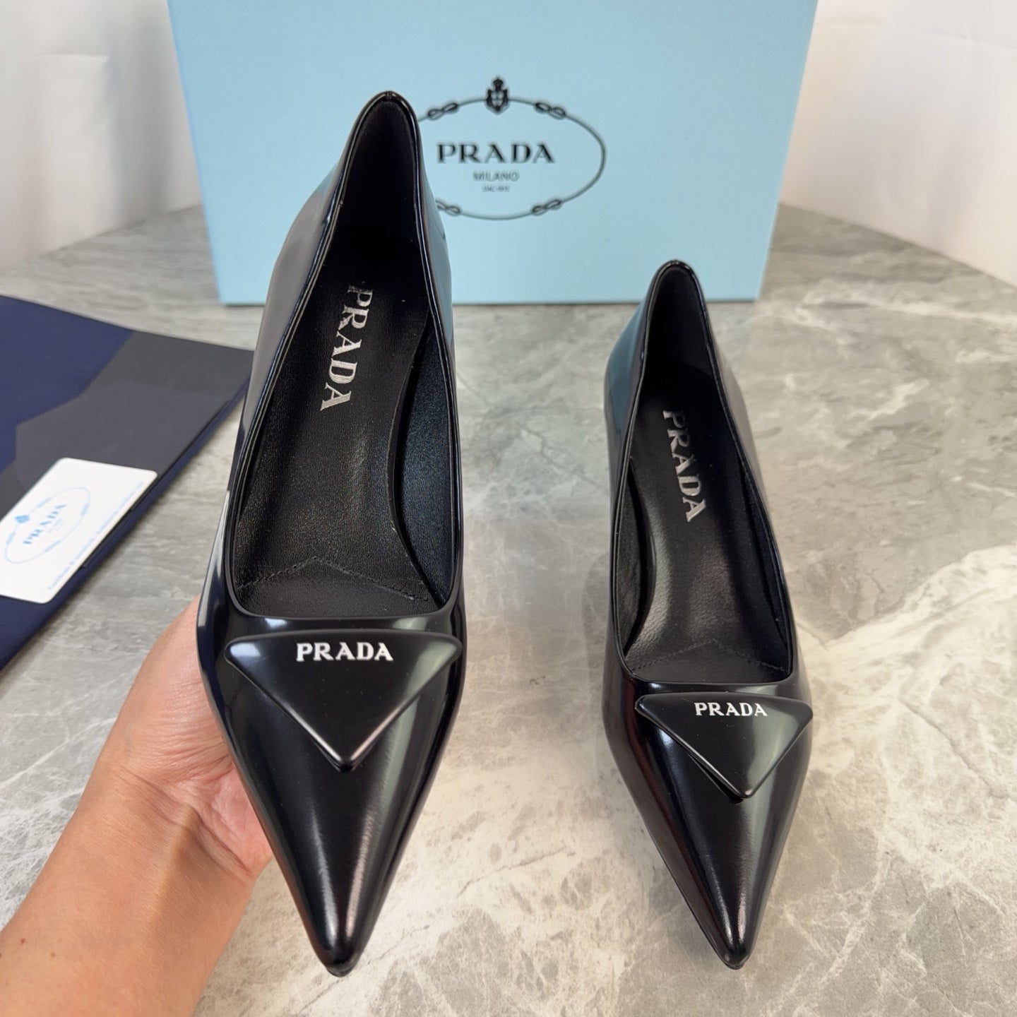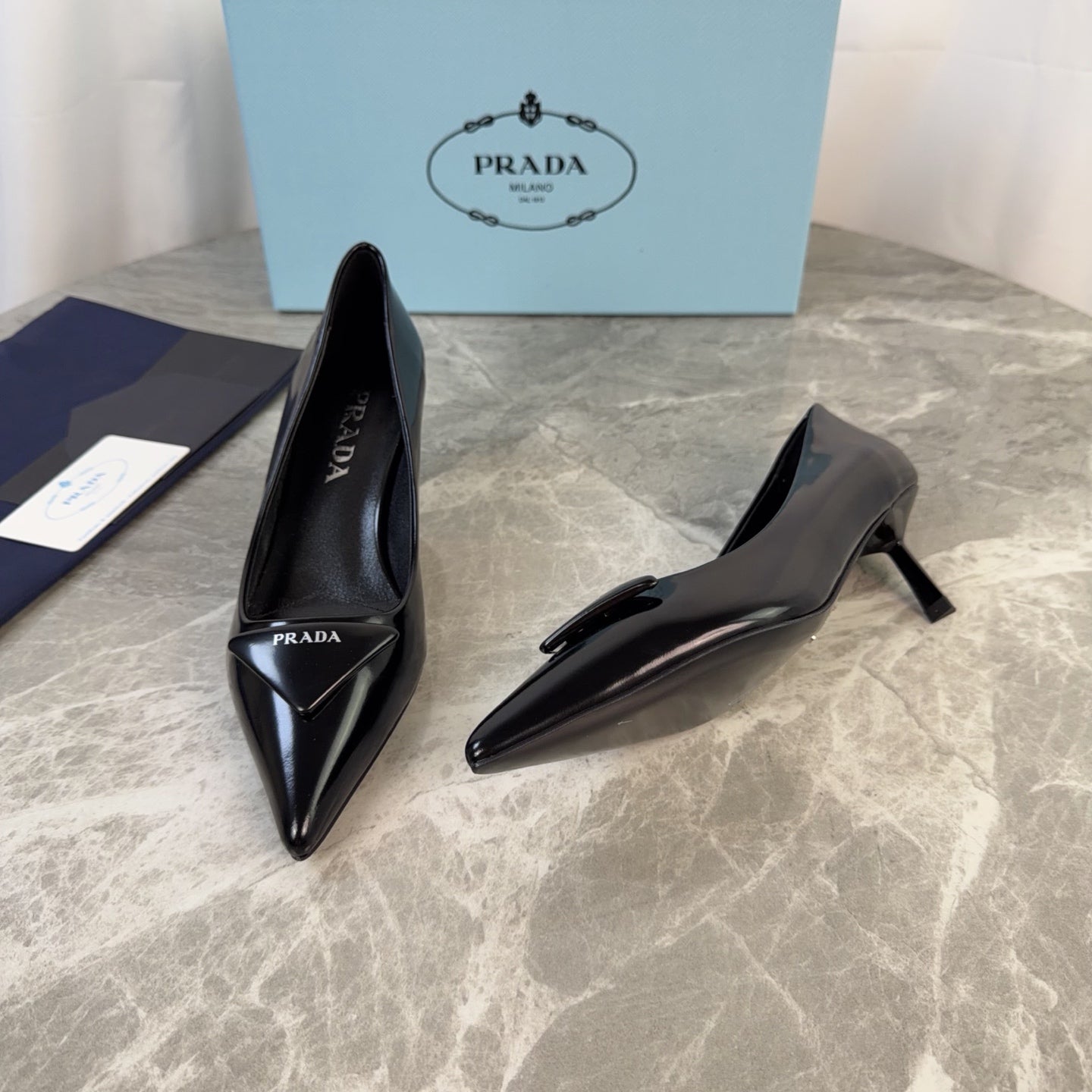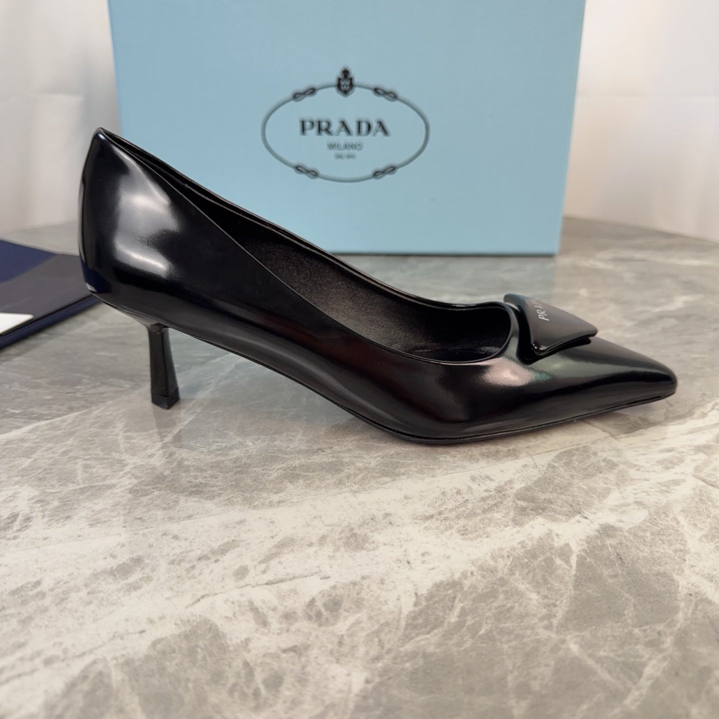 PRADA 25S POINTED-TOE HIGH HEELS 55 MM IN BLACK LAMBSKIN
