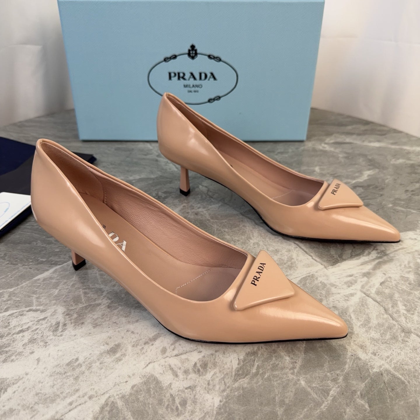 PRADA 25S POINTED-TOE HIGH HEELS 55 MM IN WARM BEIGE LAMBSKIN
