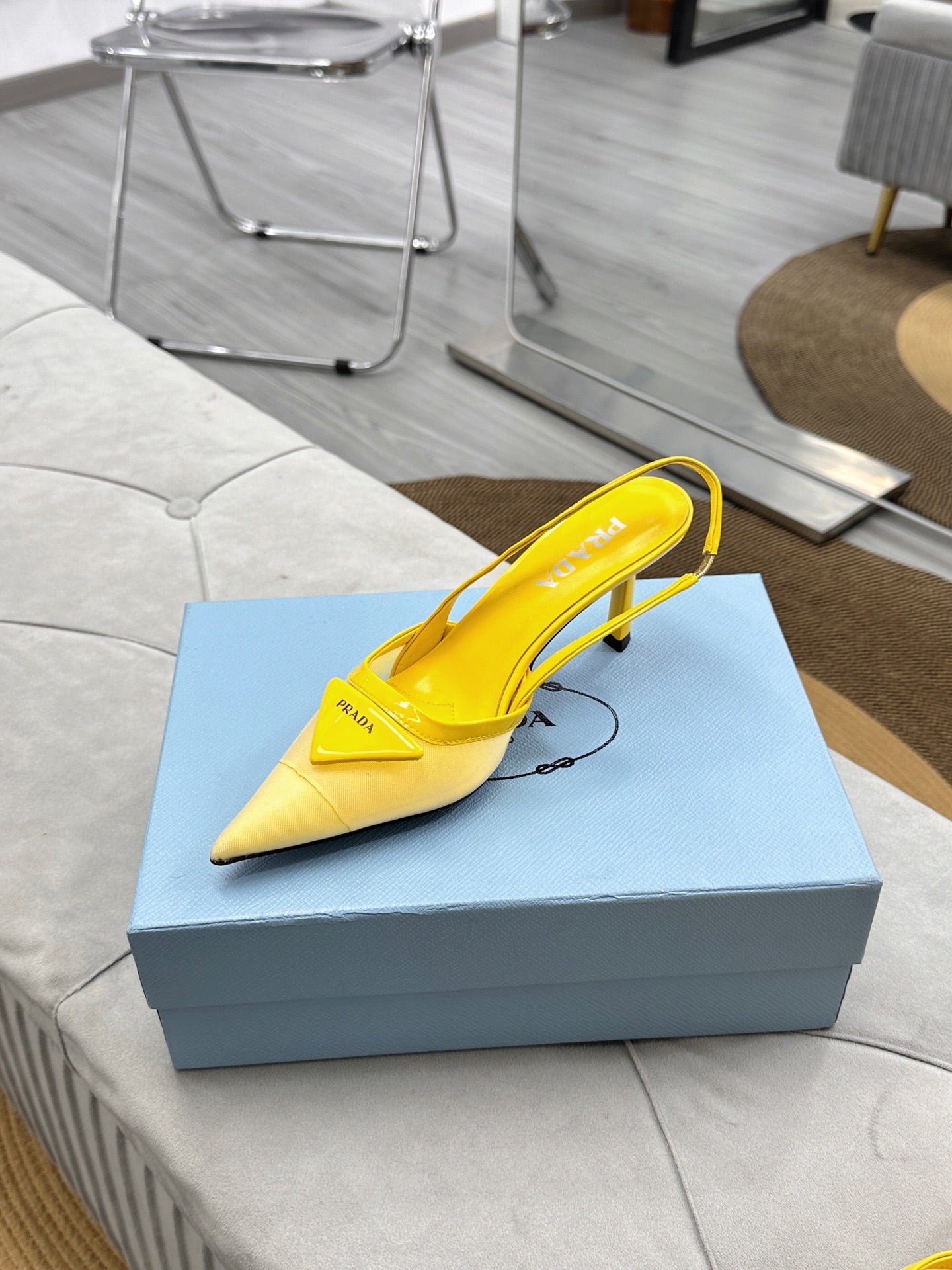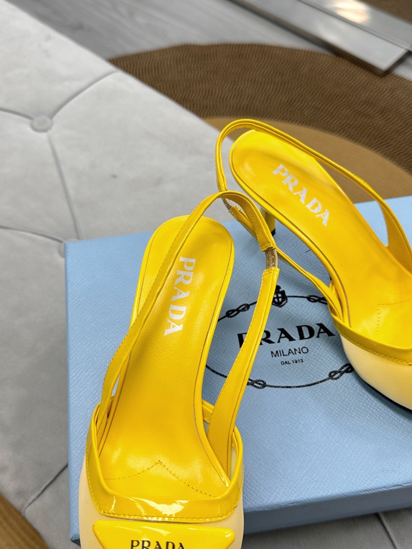 PRADA 25S TRIANGLE LOGO SLINGBACK PUMPS IN YELLOW MESH FABRIC
