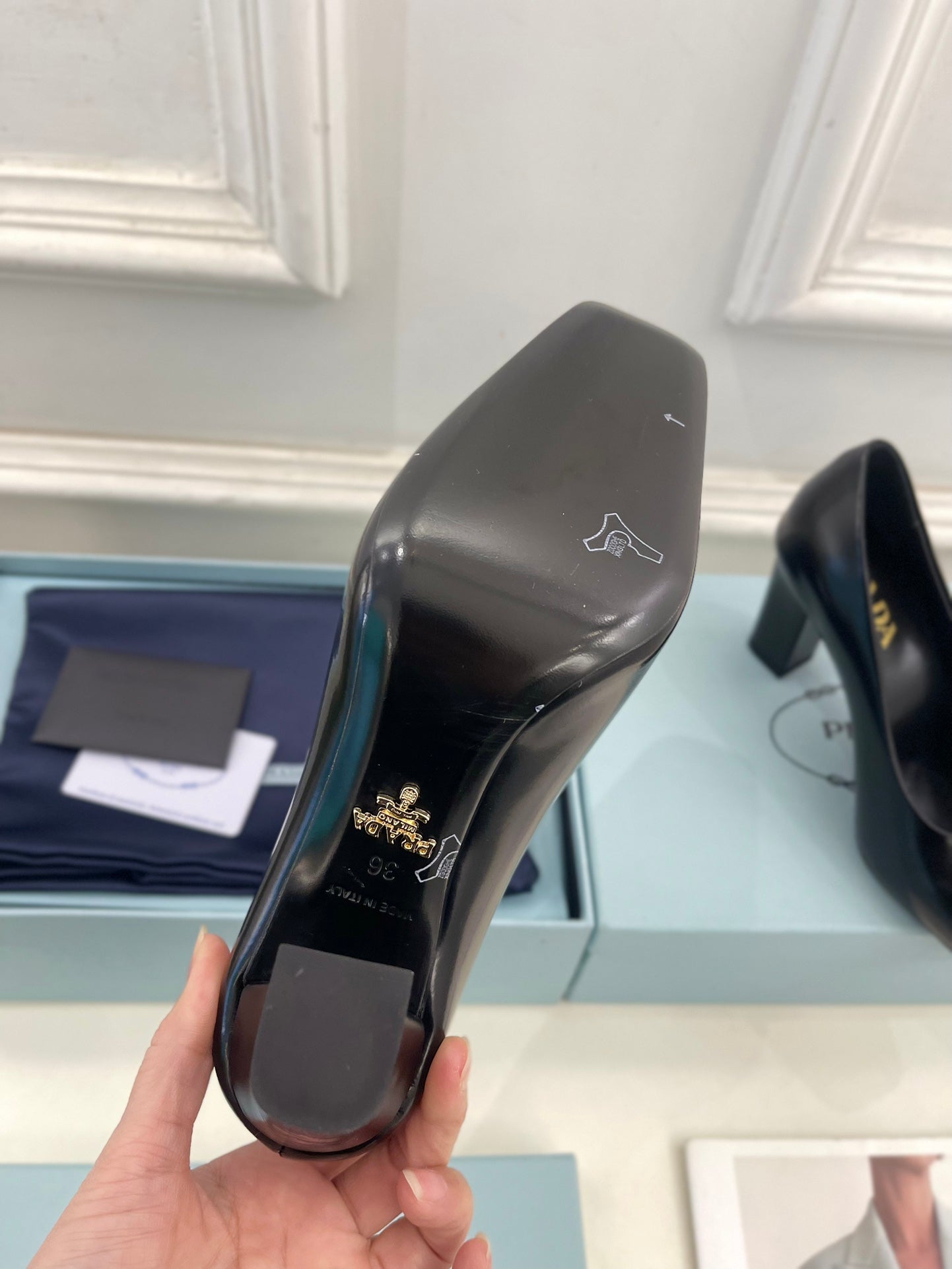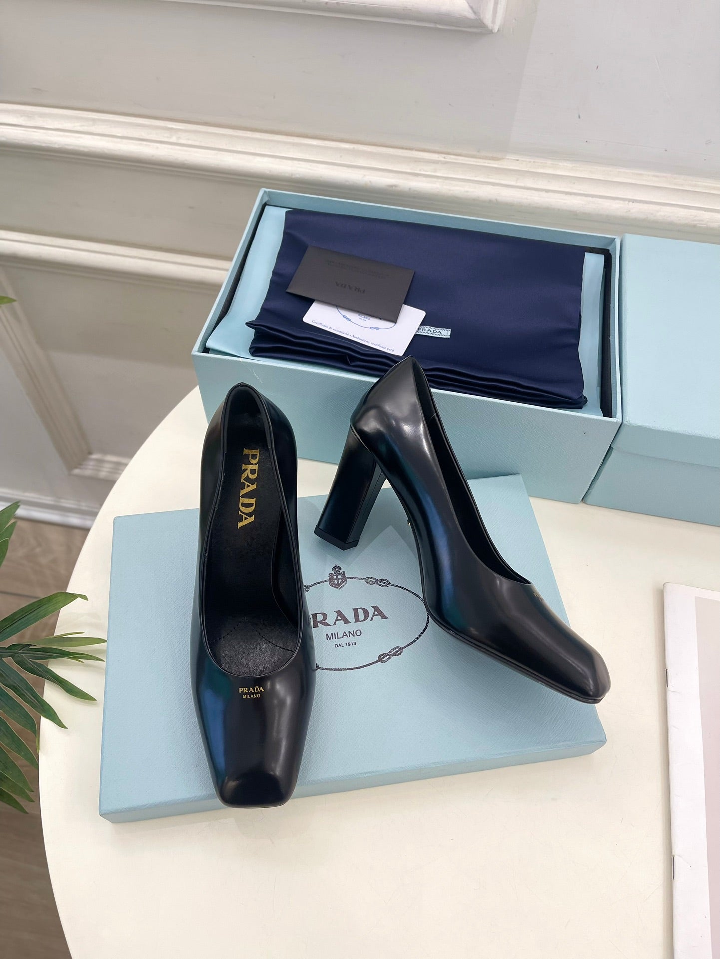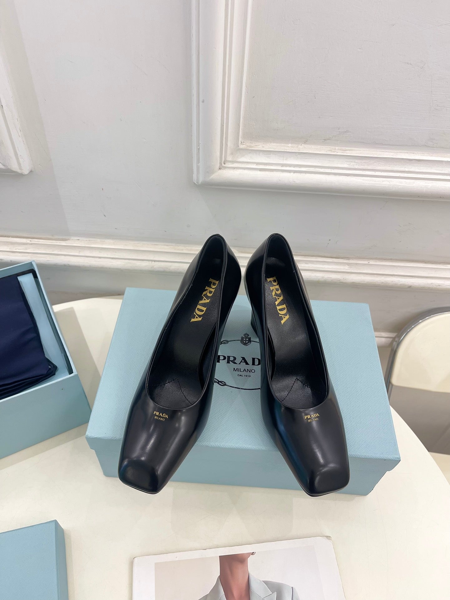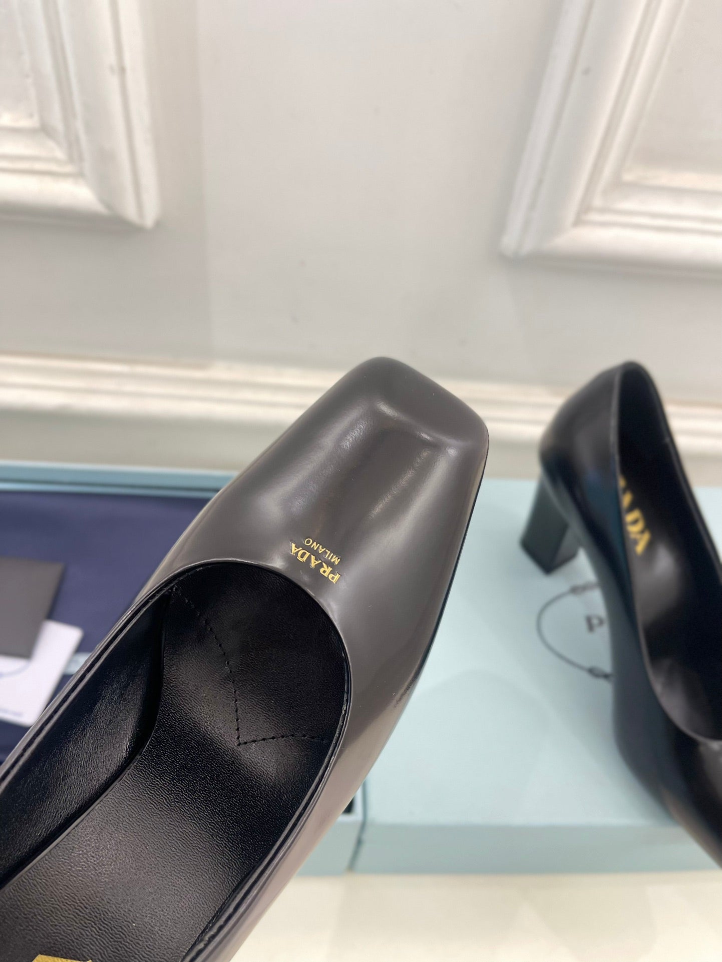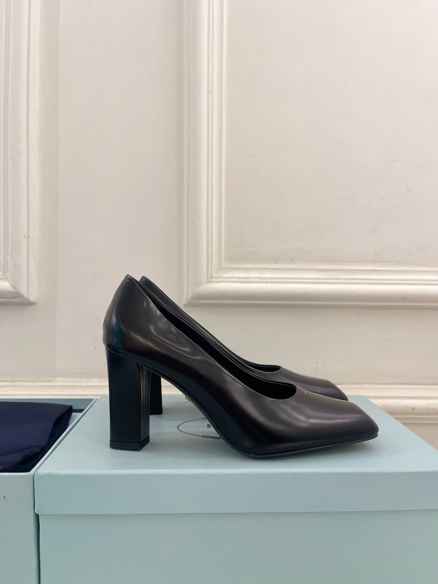 SQUARE TOE HIGH PUMPS IN BLACK SMOOTH LAMBSKIN