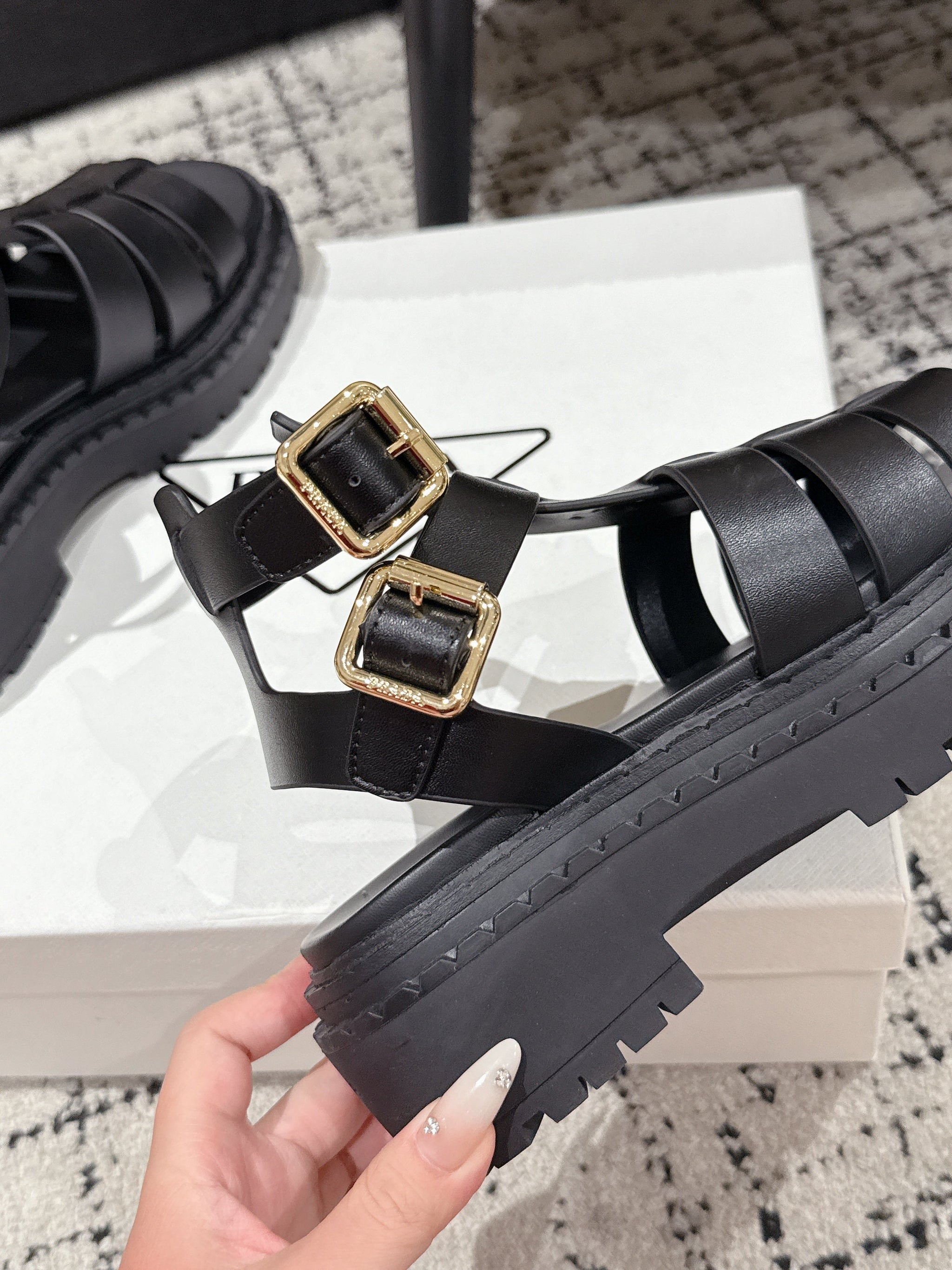 PRADA 25S HIGH TOP OPEN TOE FISHERMAN SANDALS IN BLACK CALFSKIN