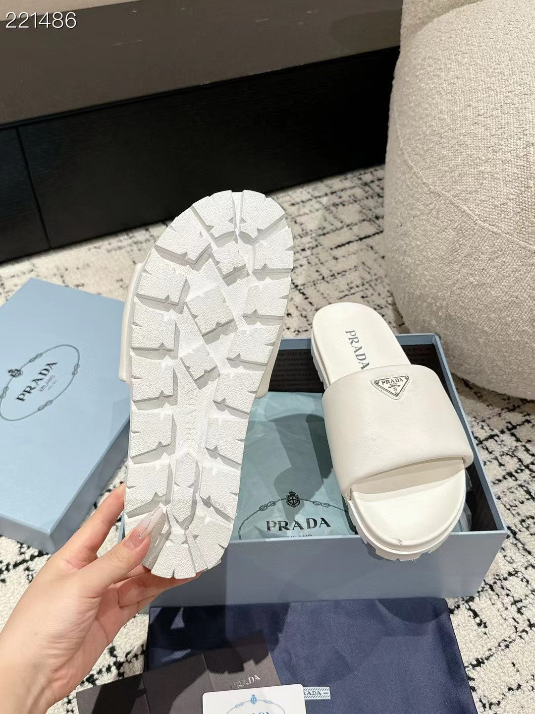 PRADA 25S PADDED SLIDES IN WHITE CALFSKIN WITH LOGO