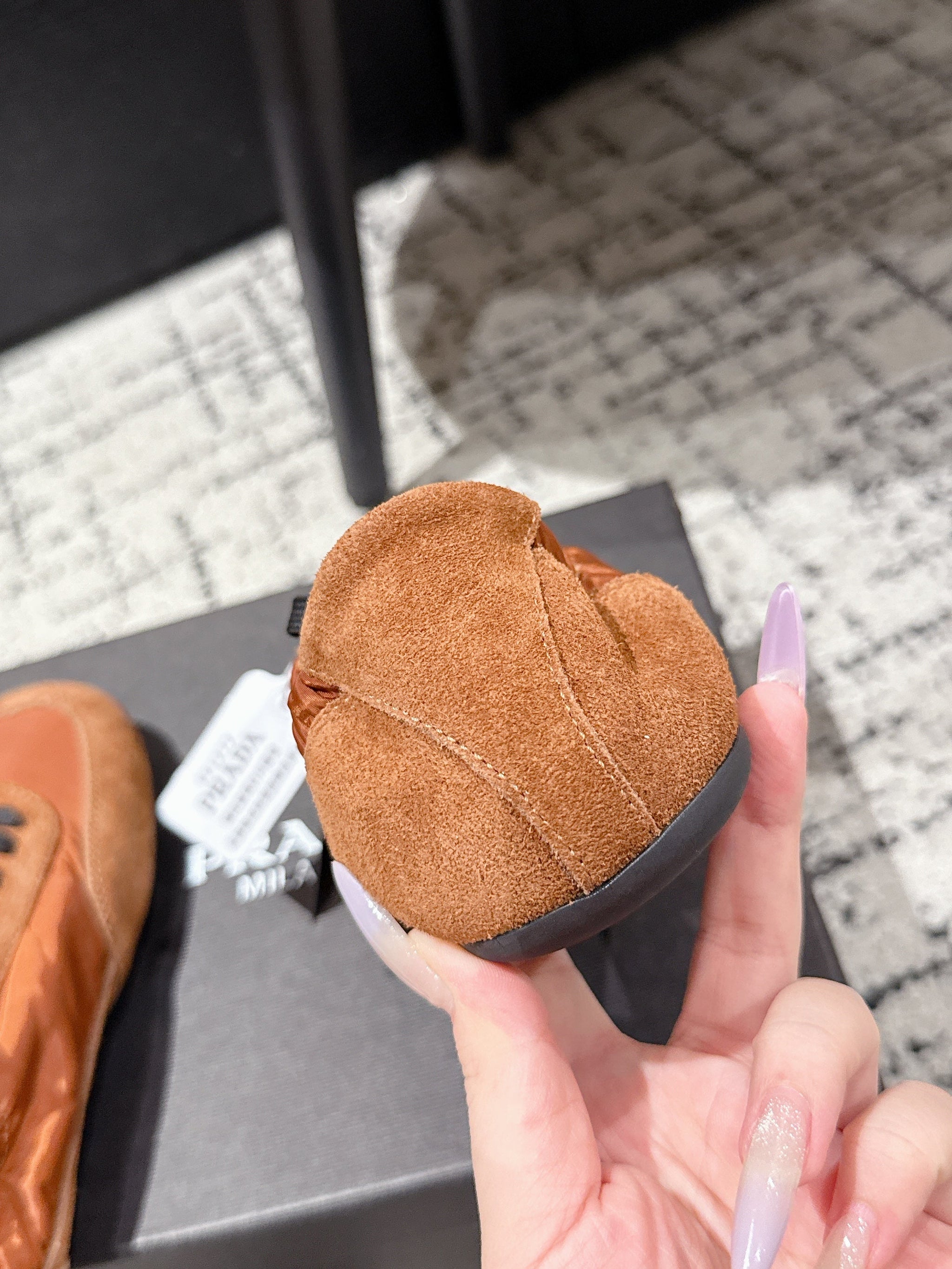PRADA 25S COLLAPSE SNEAKERS IN BURNT ORANGE RE NYLON AND SUEDE