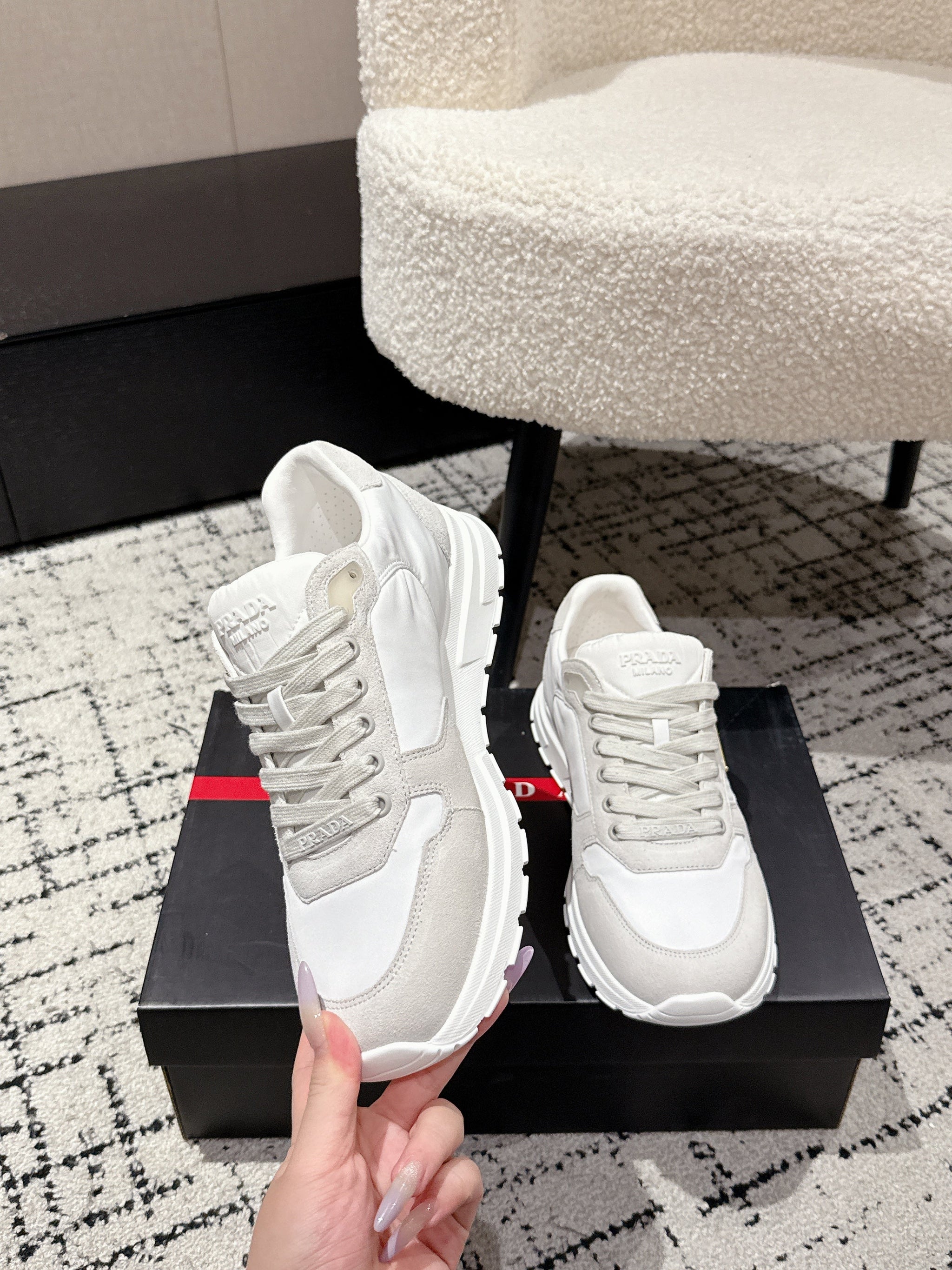 PRADA 25S MEN SNEAKERS LOGO IN WHITE NUBUCK AND CANVAS