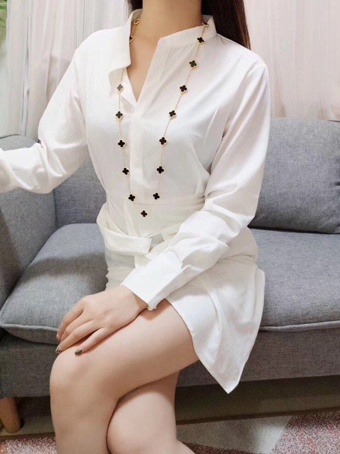 CLOVER 20 MOTIF ONYX 86CM GOLD NECKLACE