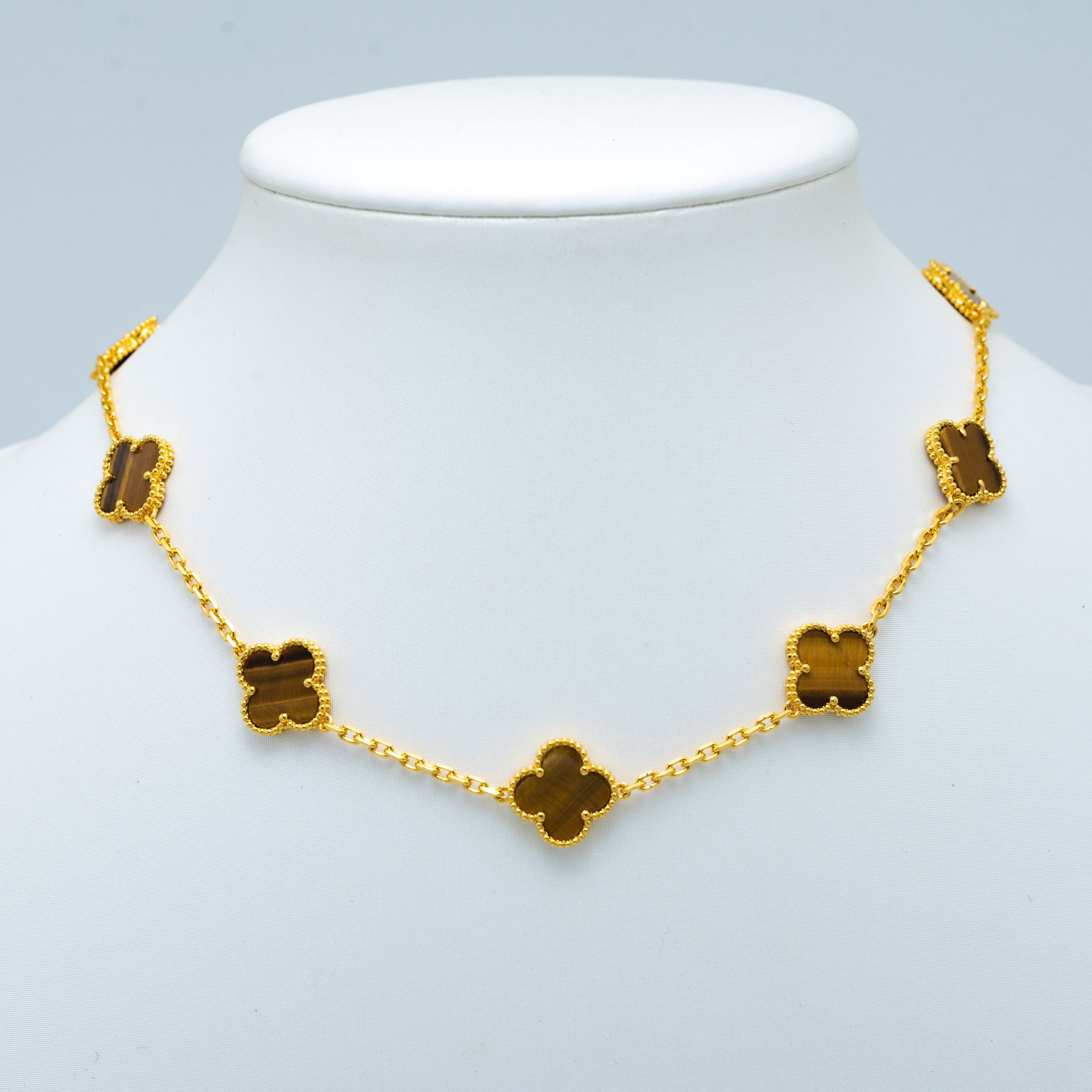 VINTAGE TIGER EYE NECKLACE 10 MOTIFS GOLD