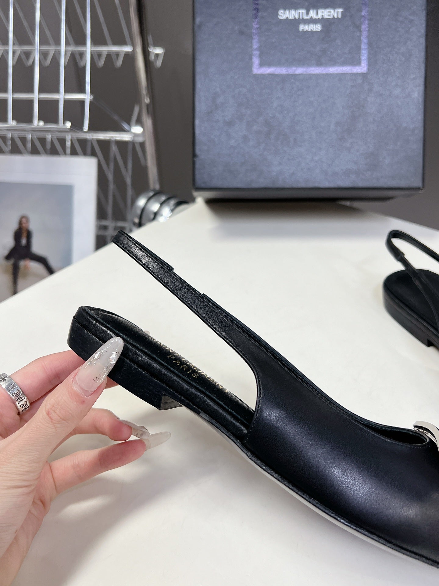 SL SQUARE BUCKLE SLINGBACK BLACK CALFSKIN