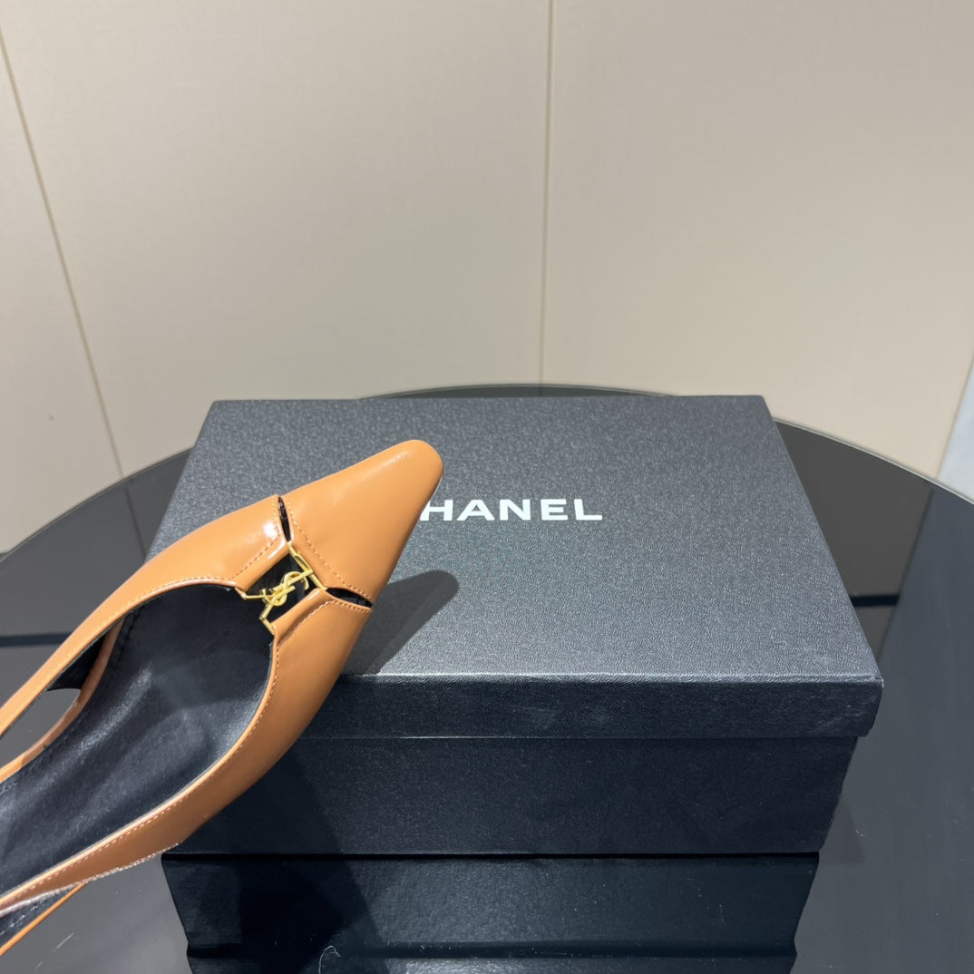 YSL SLINGBACK FLATS 25S IN MUTED ORANGE LAMBSKIN WITH GOLD HARDWARE