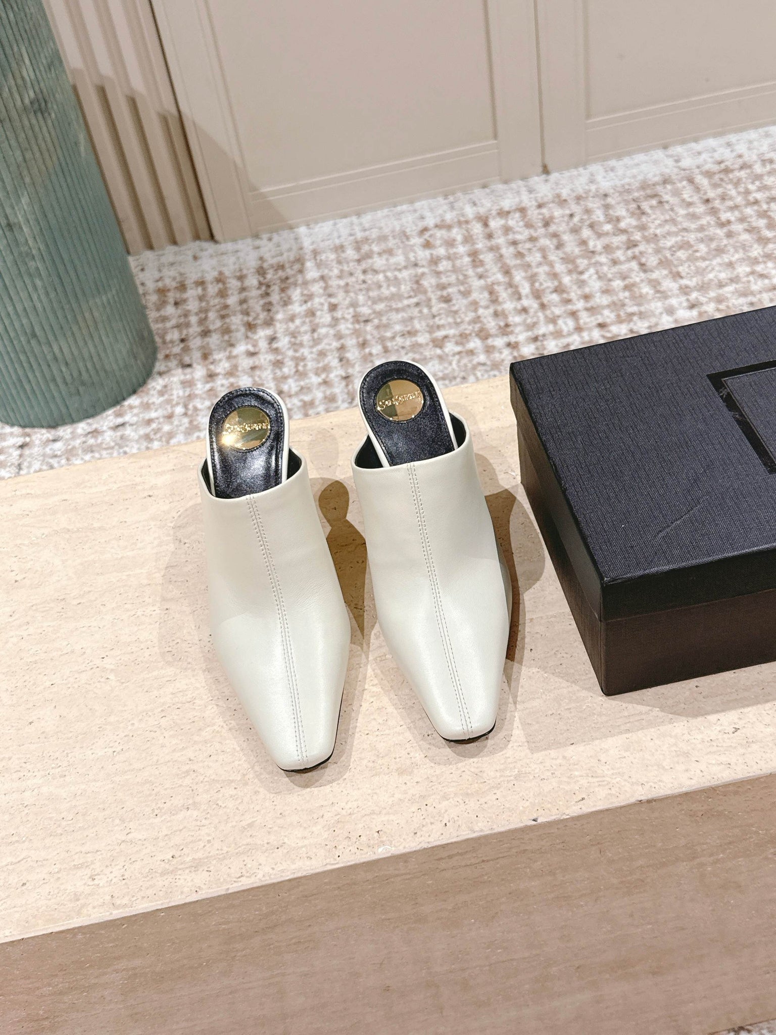 YSL 25S JILL MULES IN IVORY SMOOTH CALFSKIN