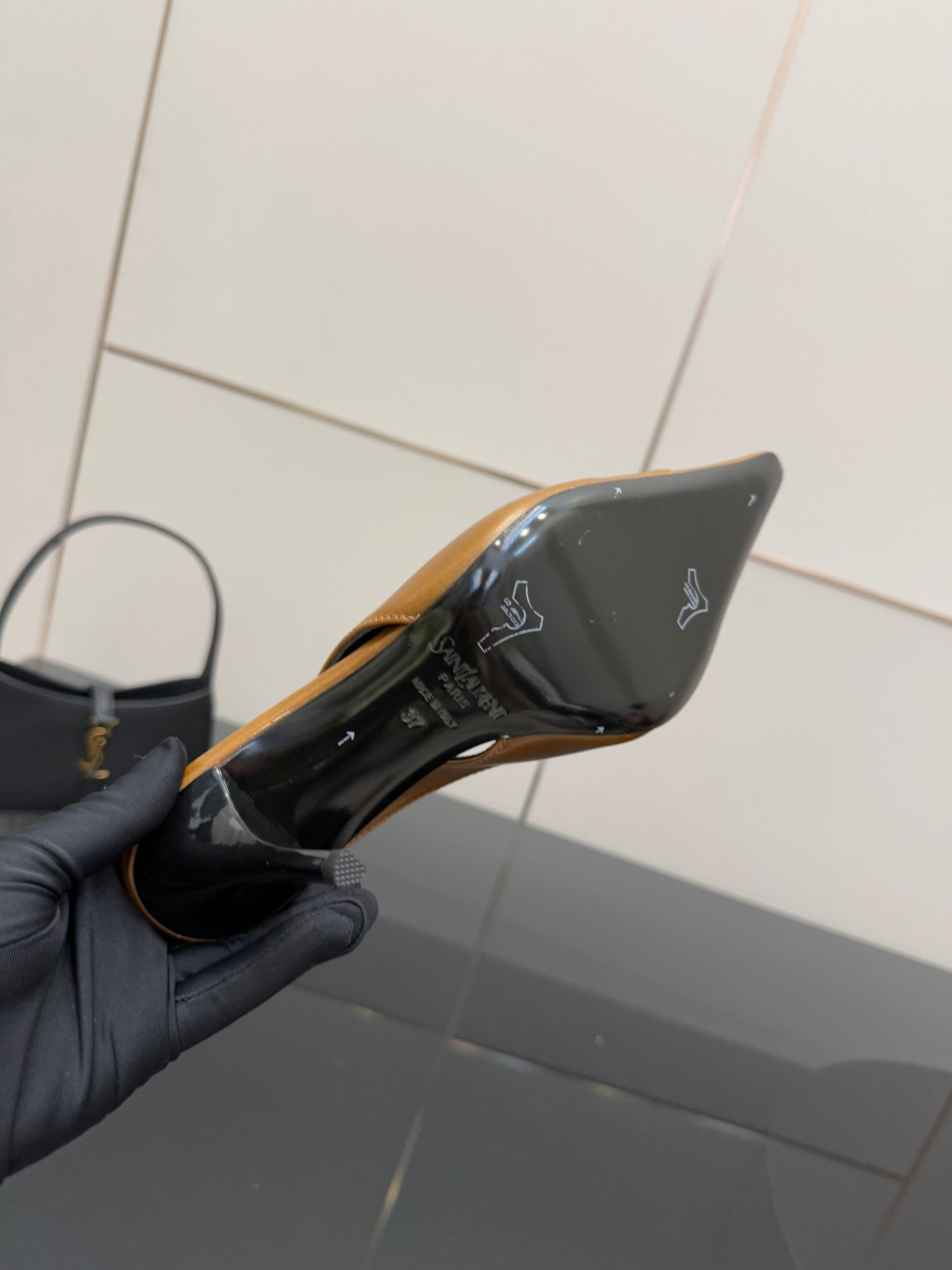YSL 25S SLINGBACK HIGH HEELS 90 MM IN COPPER BROWN LAMBSKIN WITH GOLD HARDWARE STYLE 11