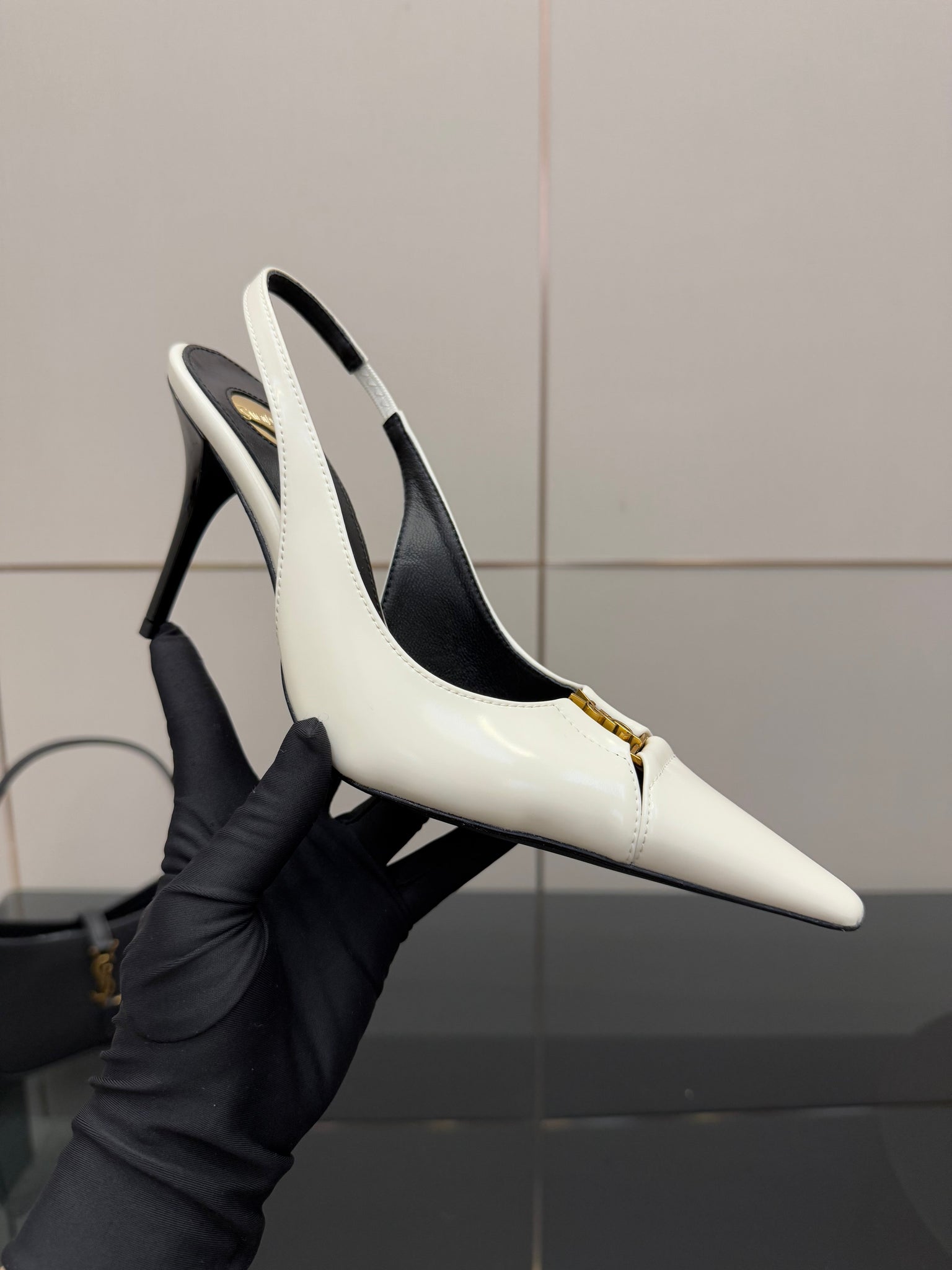 YSL 25S SLINGBACK HIGH HEELS 90 MM IN WHITE LAMBSKIN WITH GOLD HARDWARE STYLE 6