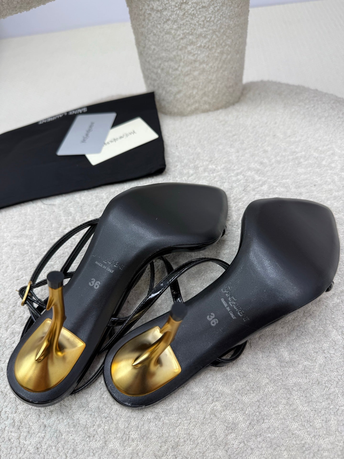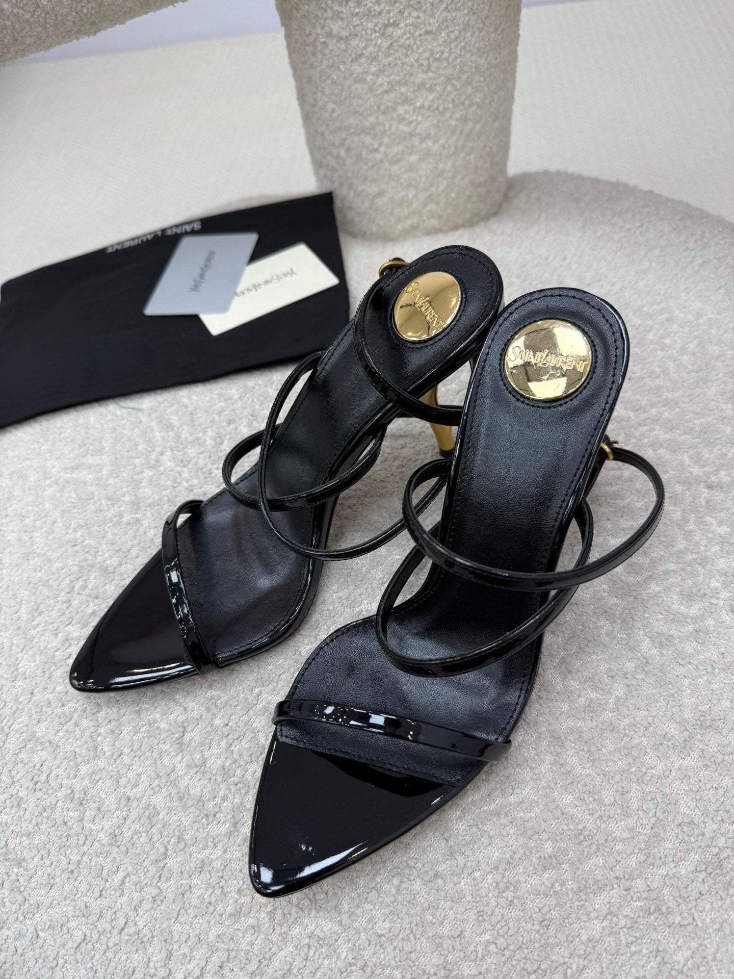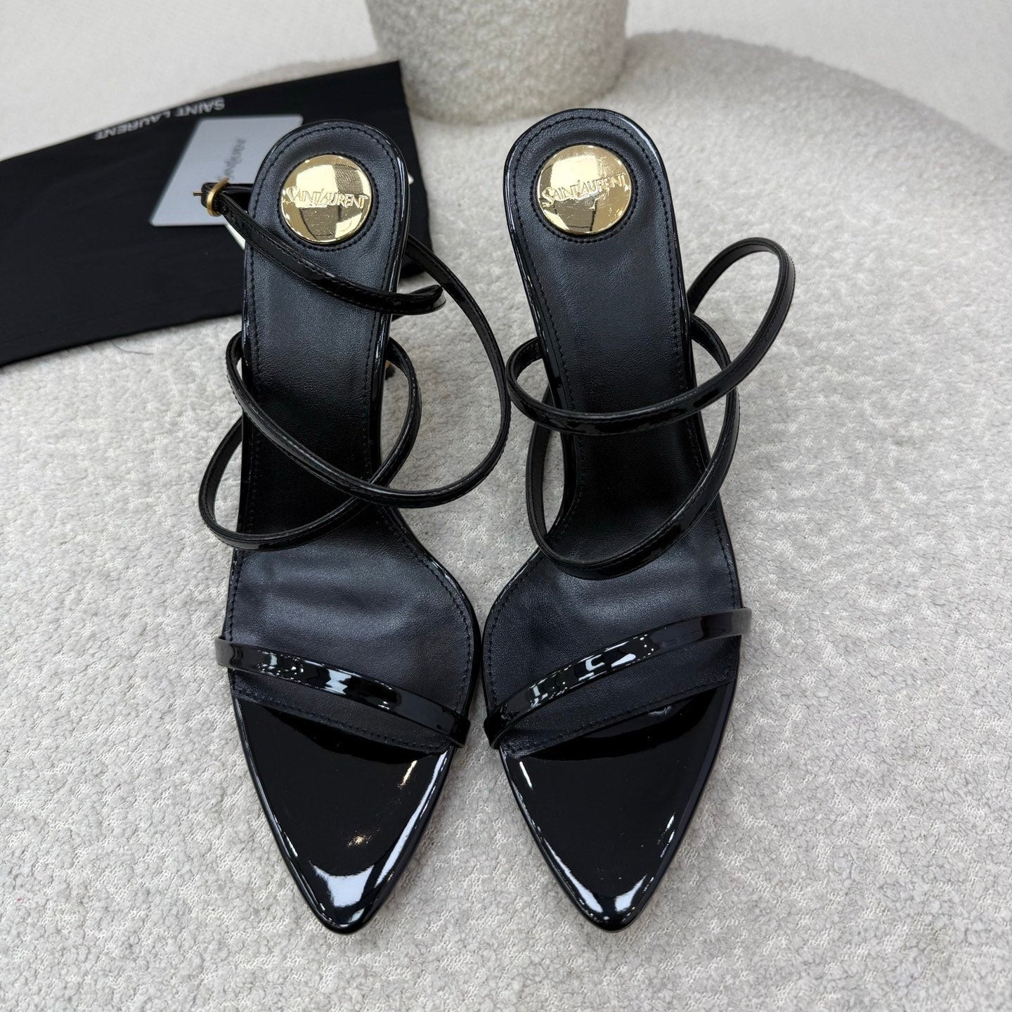 YSL 25S STRAPPY HIGH-HEEL SANDALS 95 MM IN BLACK SHINY LAMBSKIN