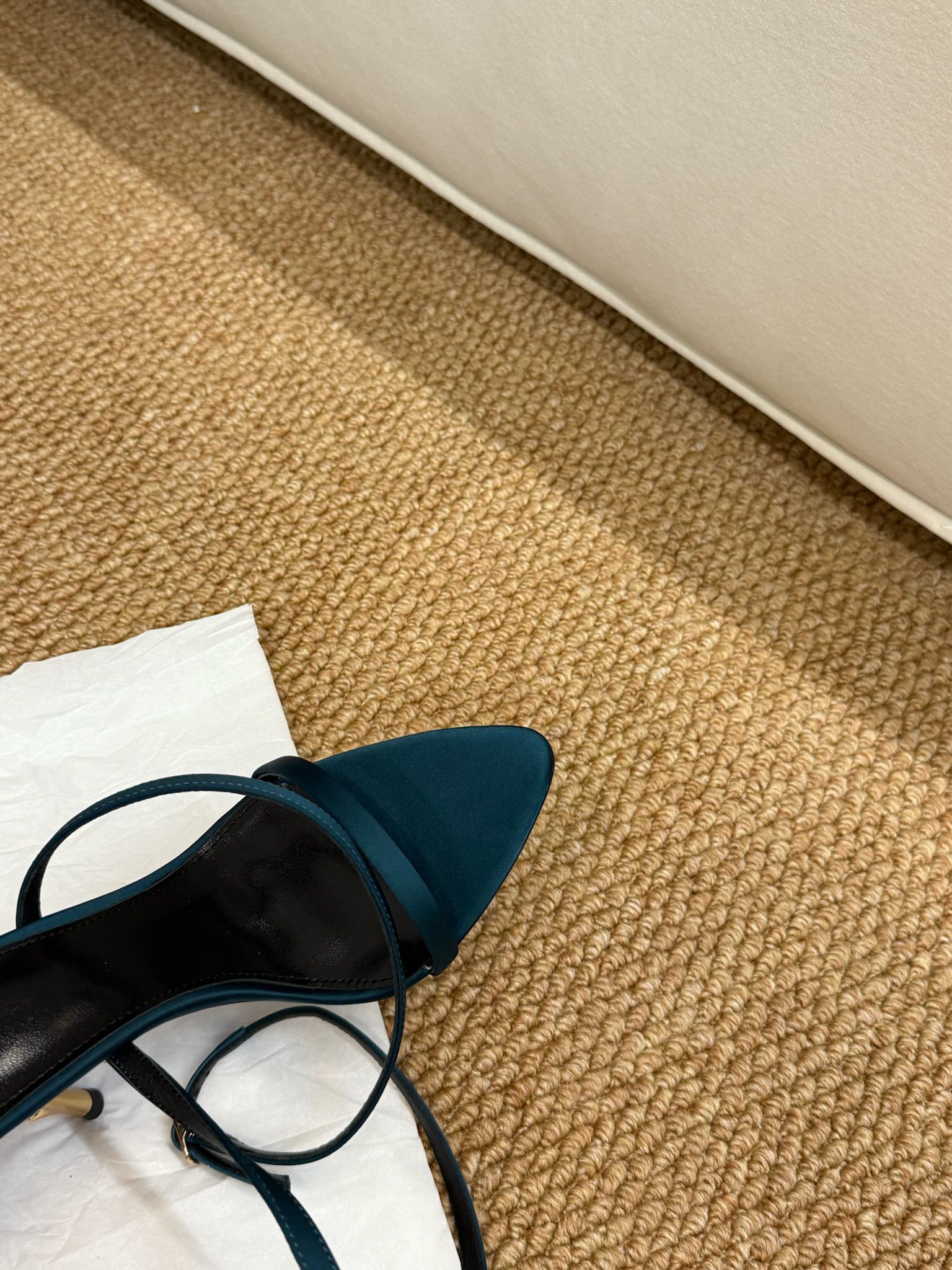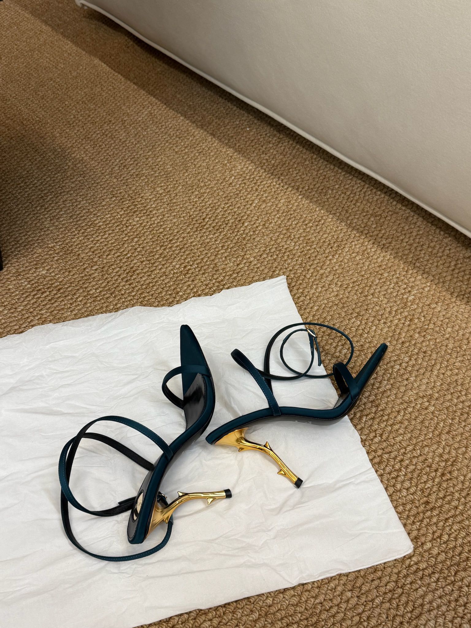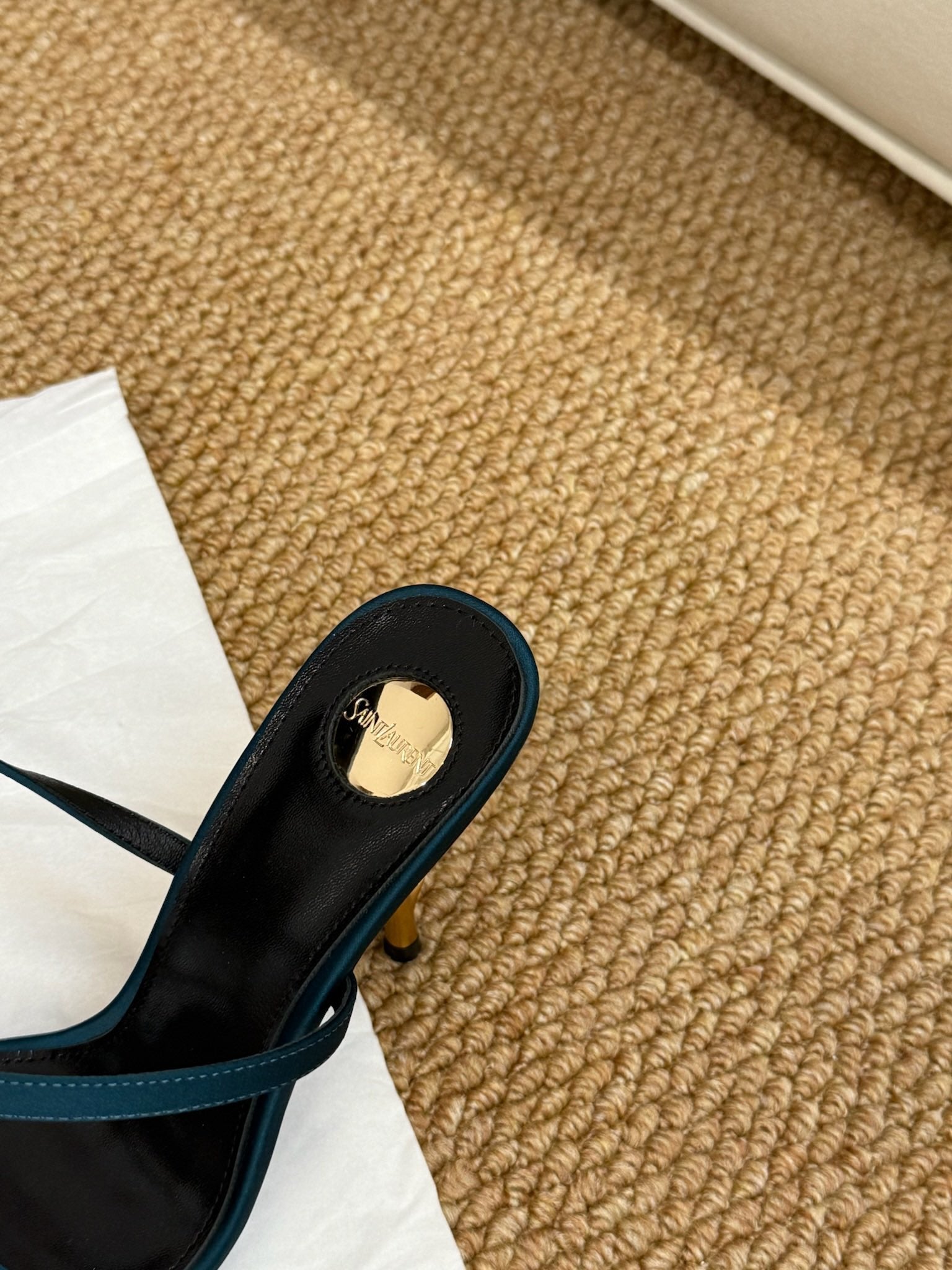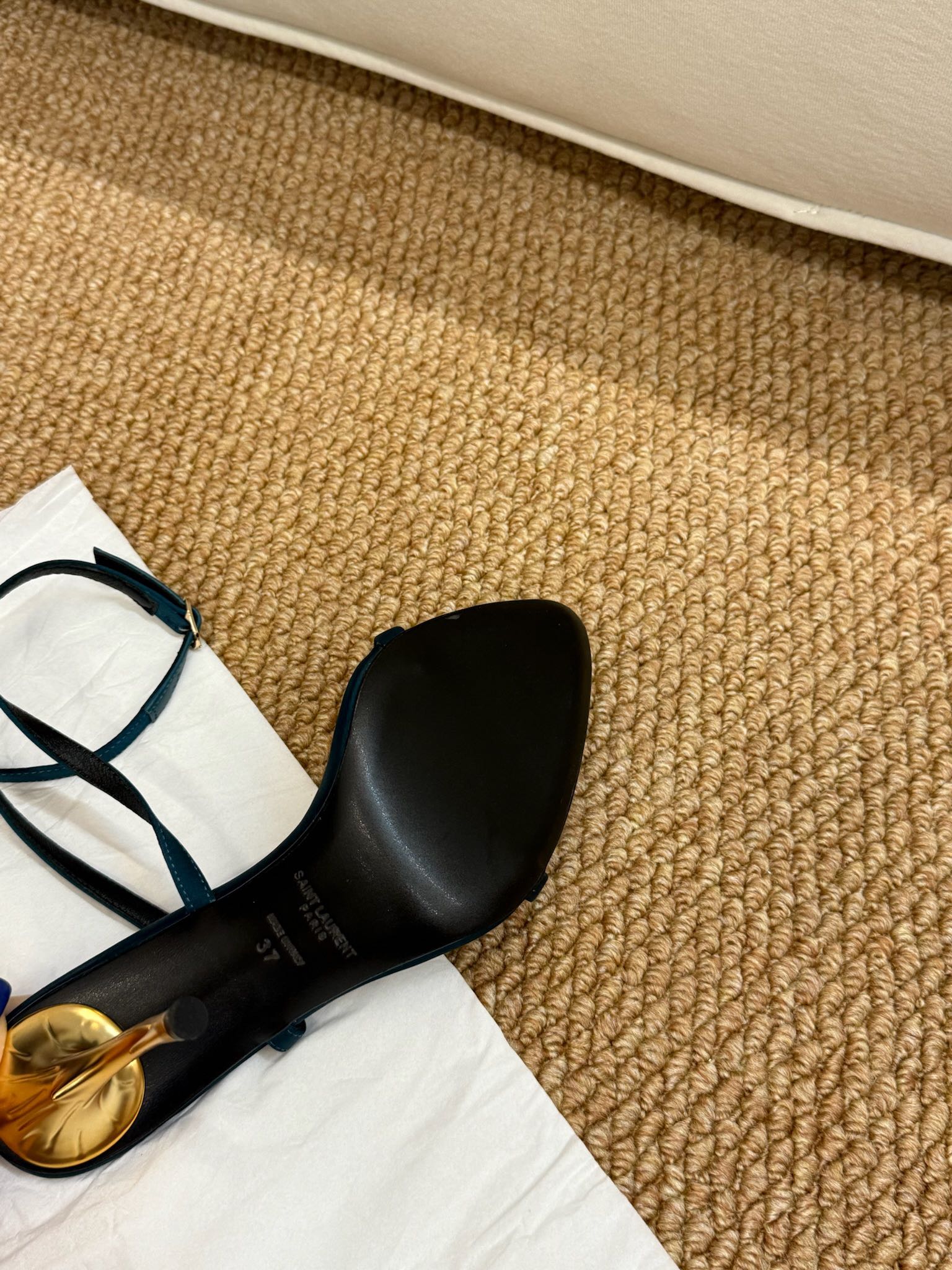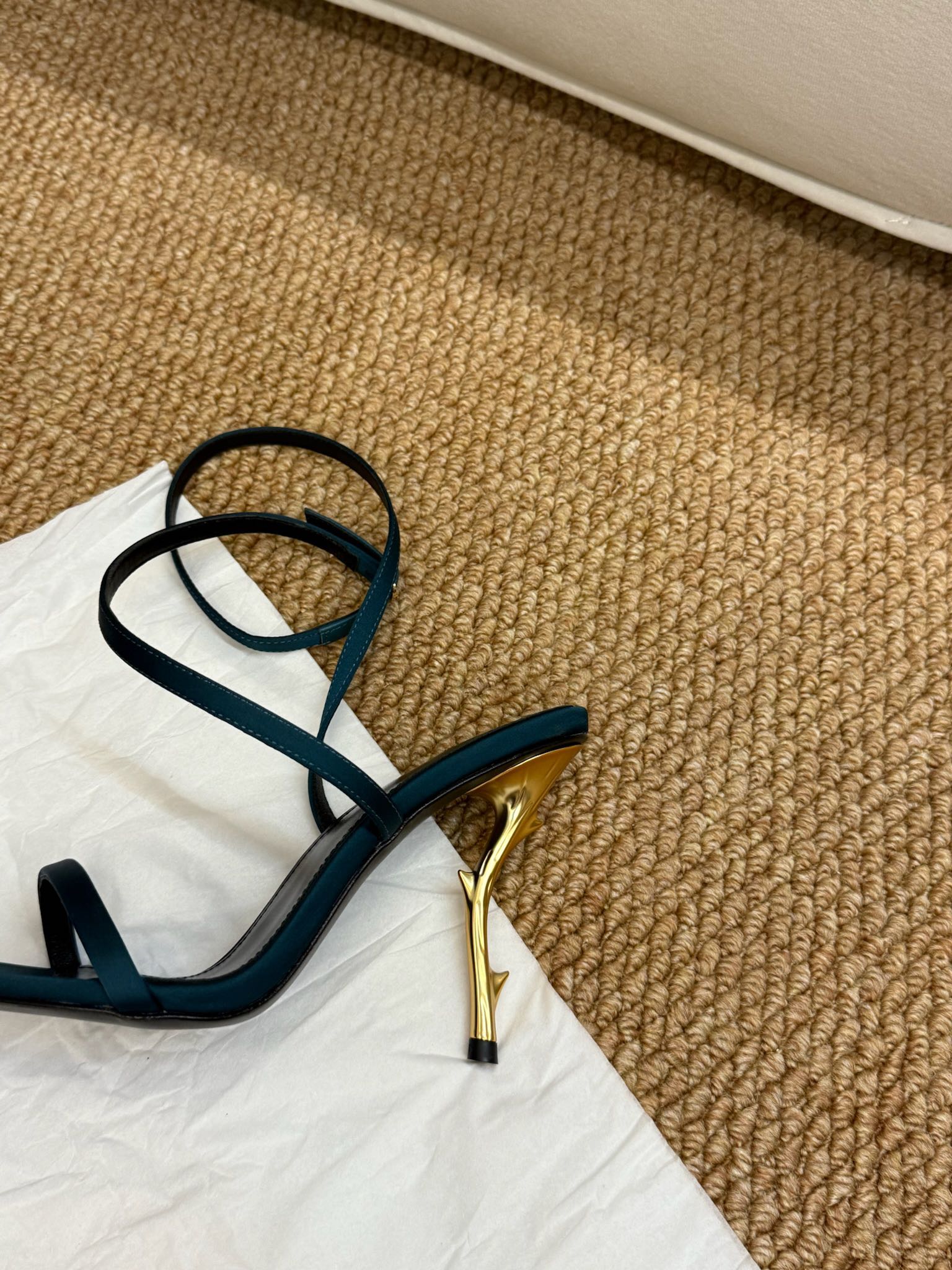 YSL HIGH HEEL SANDALS 25S IN DEEP SEA BLUE SATIN AND LAMBSKIN