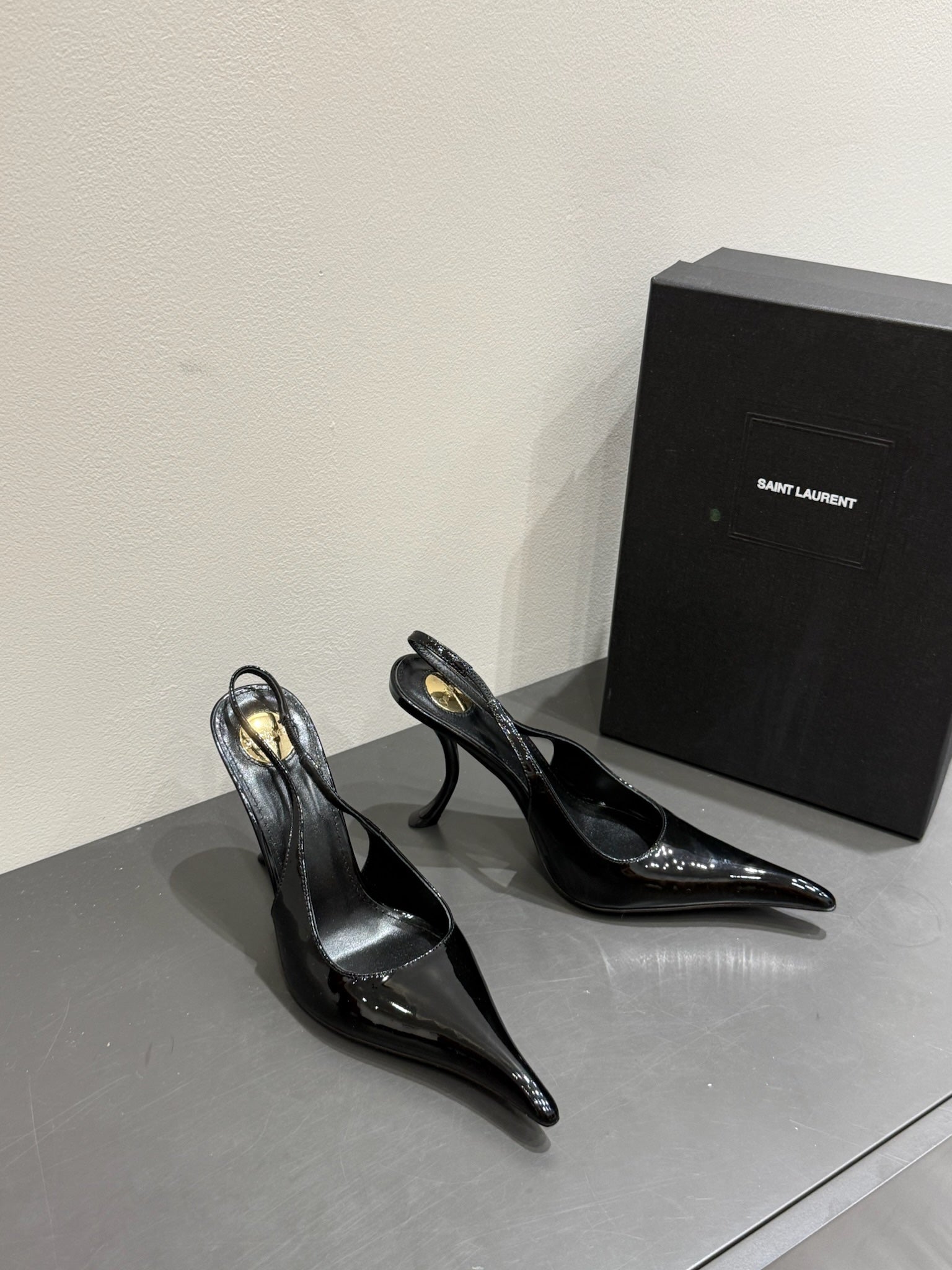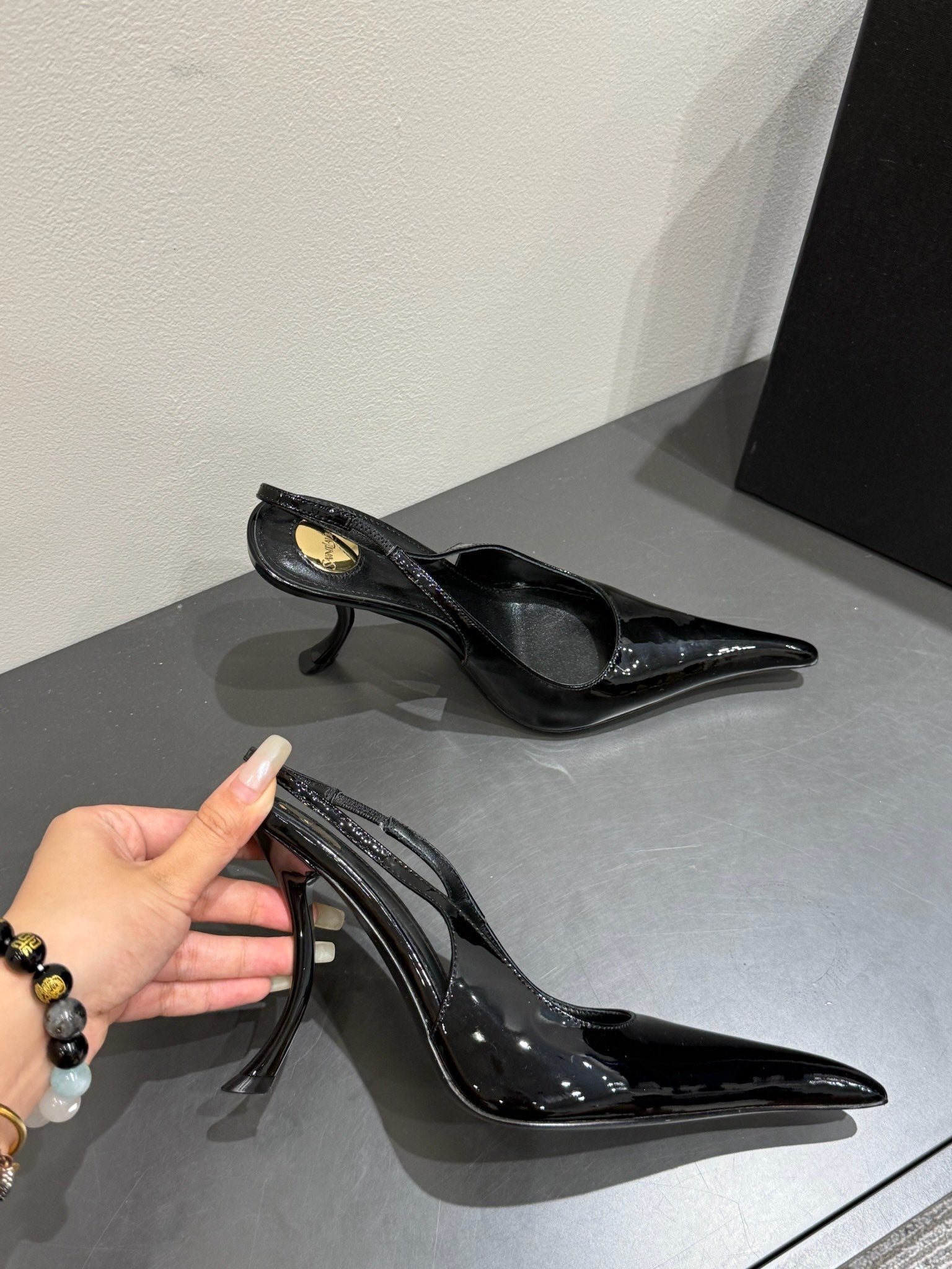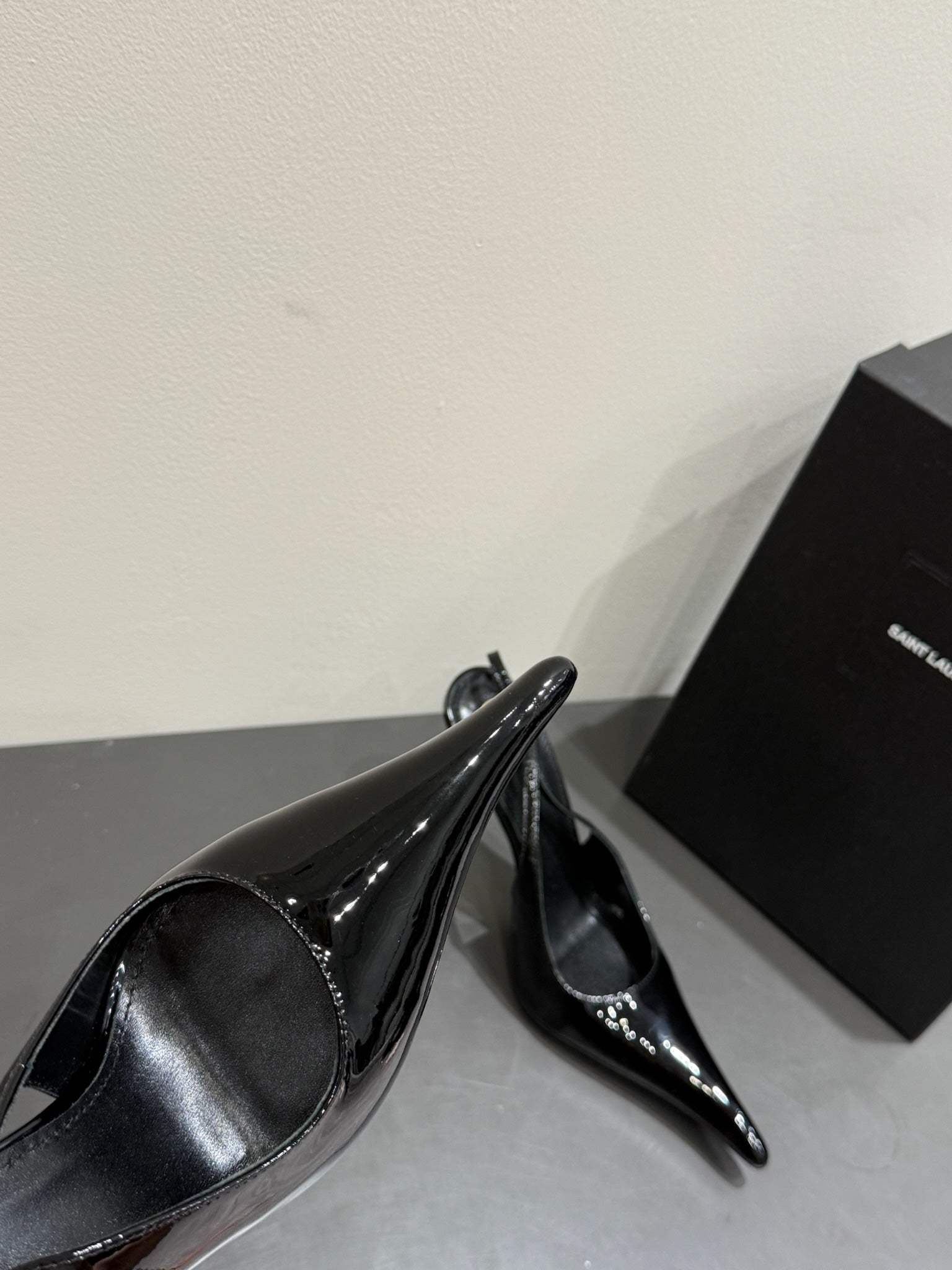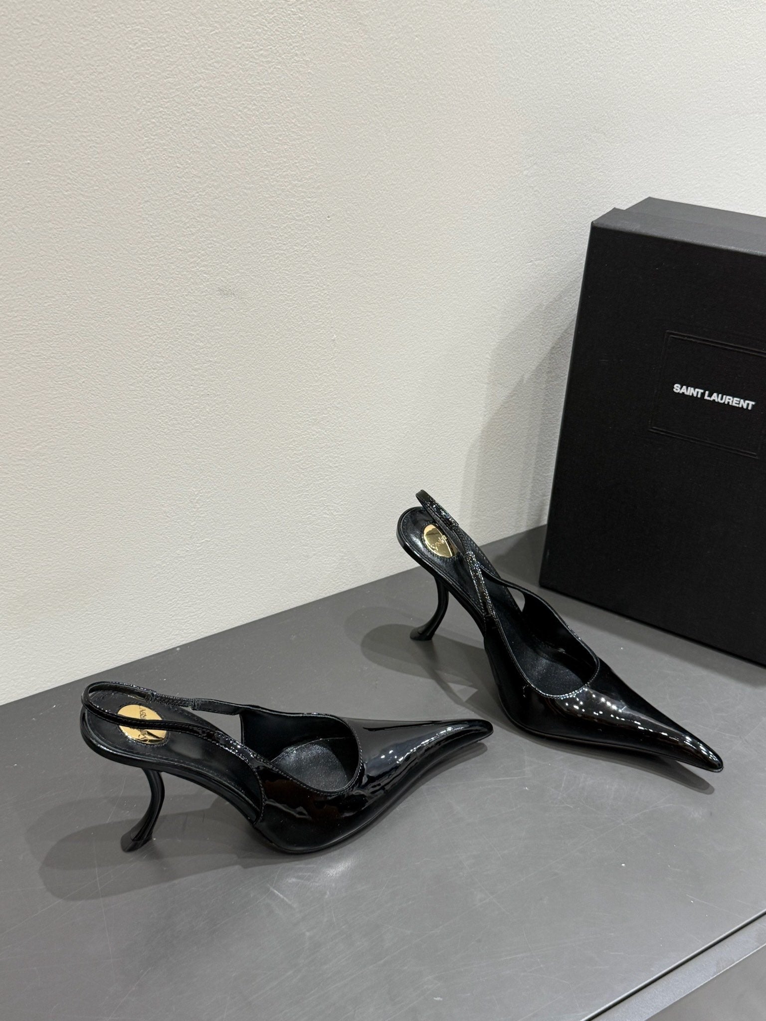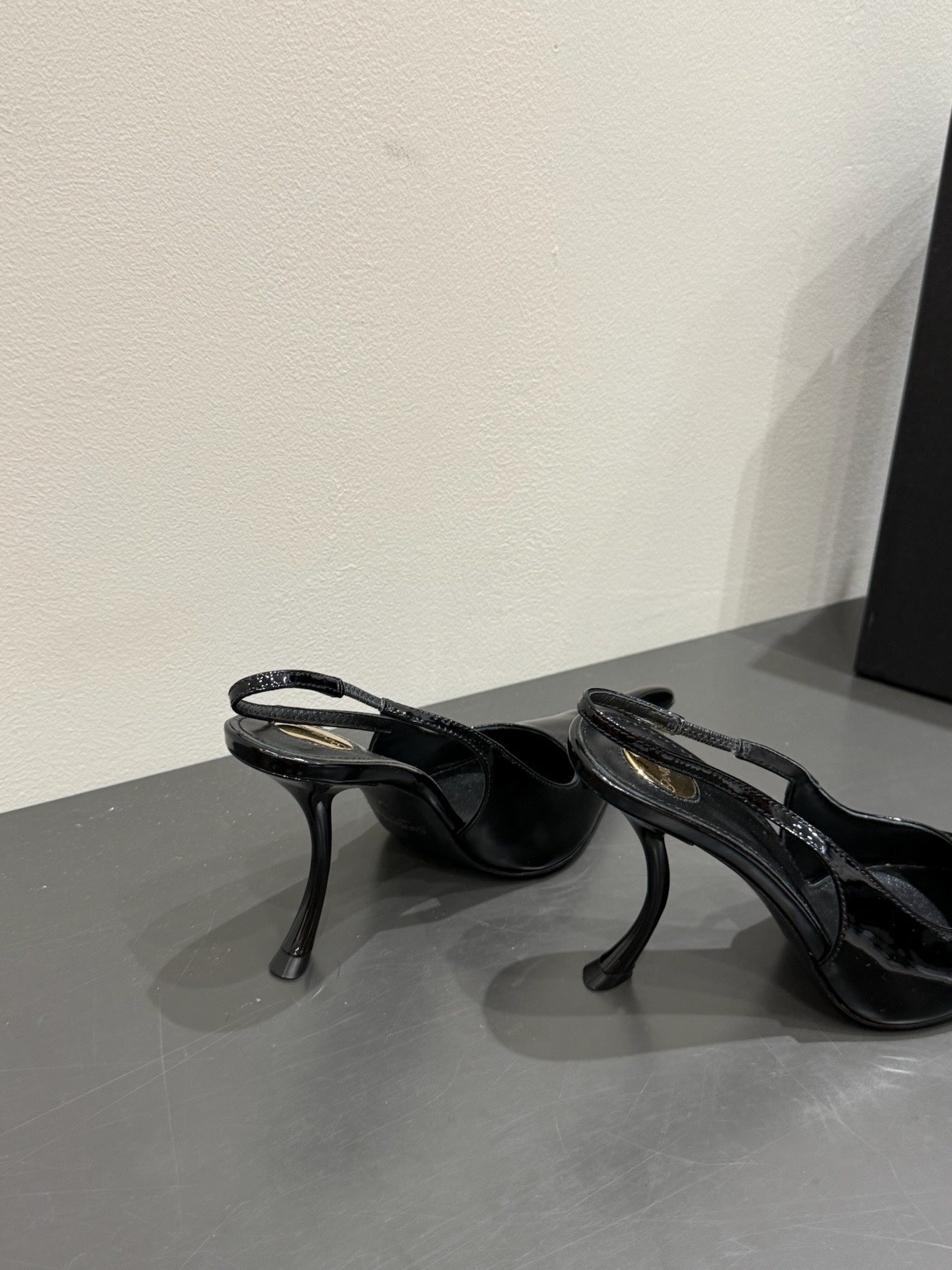 YSL HIGH SLINGBACK 25S IN BLACK GLOSSY LAMBSKIN