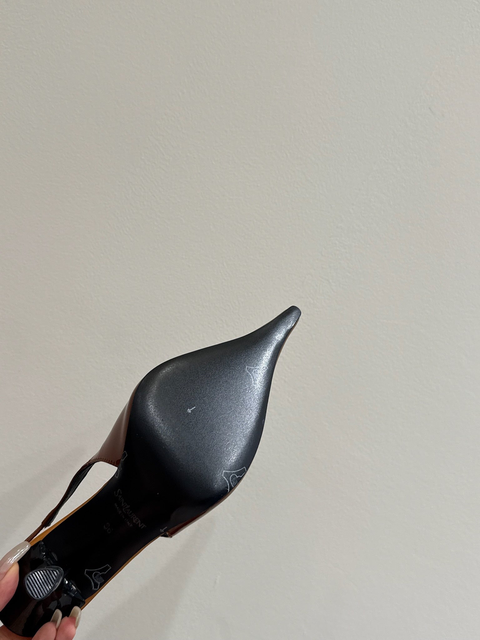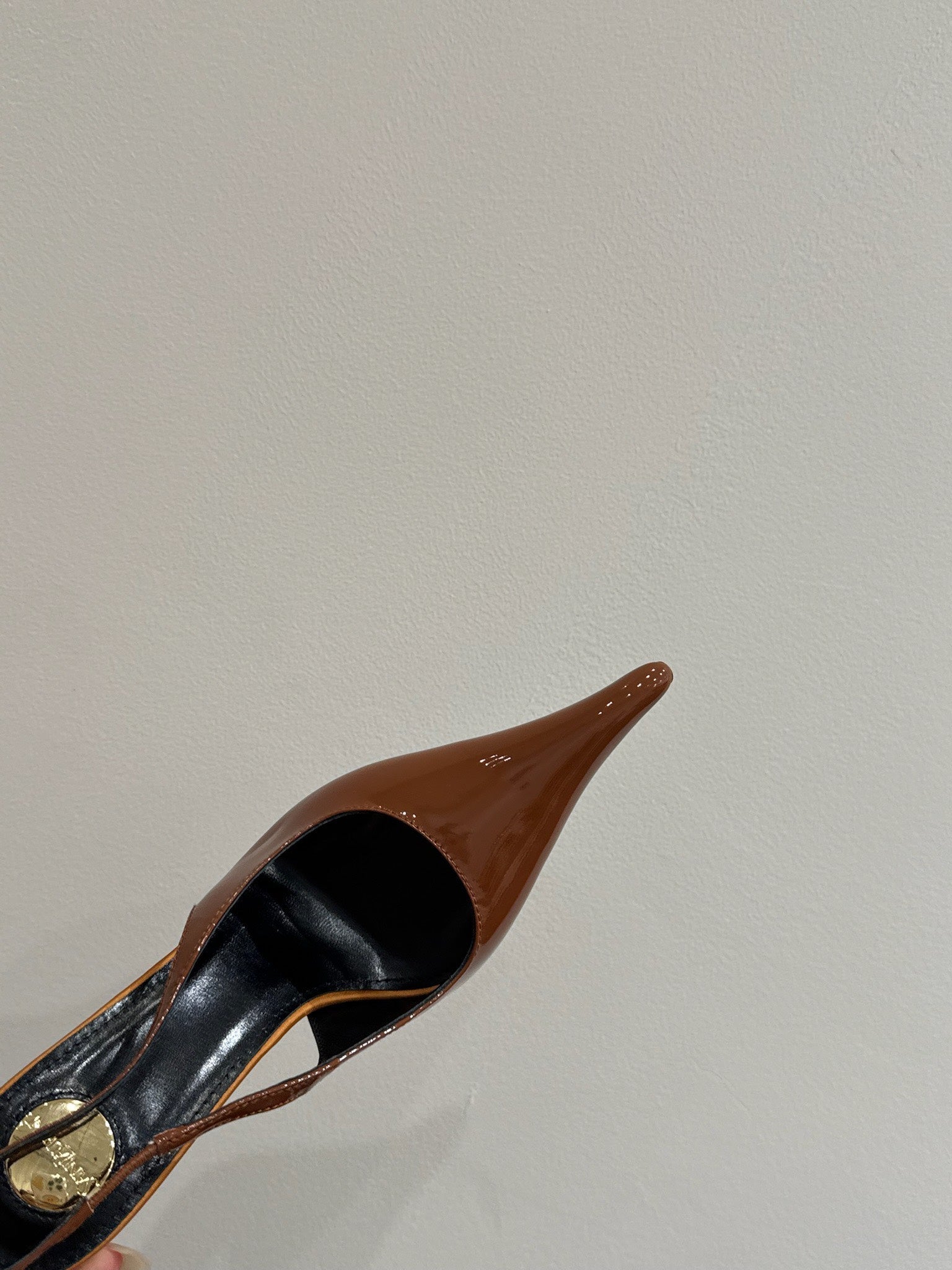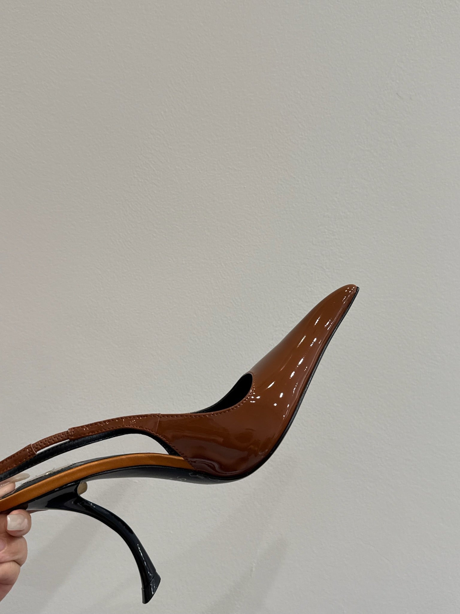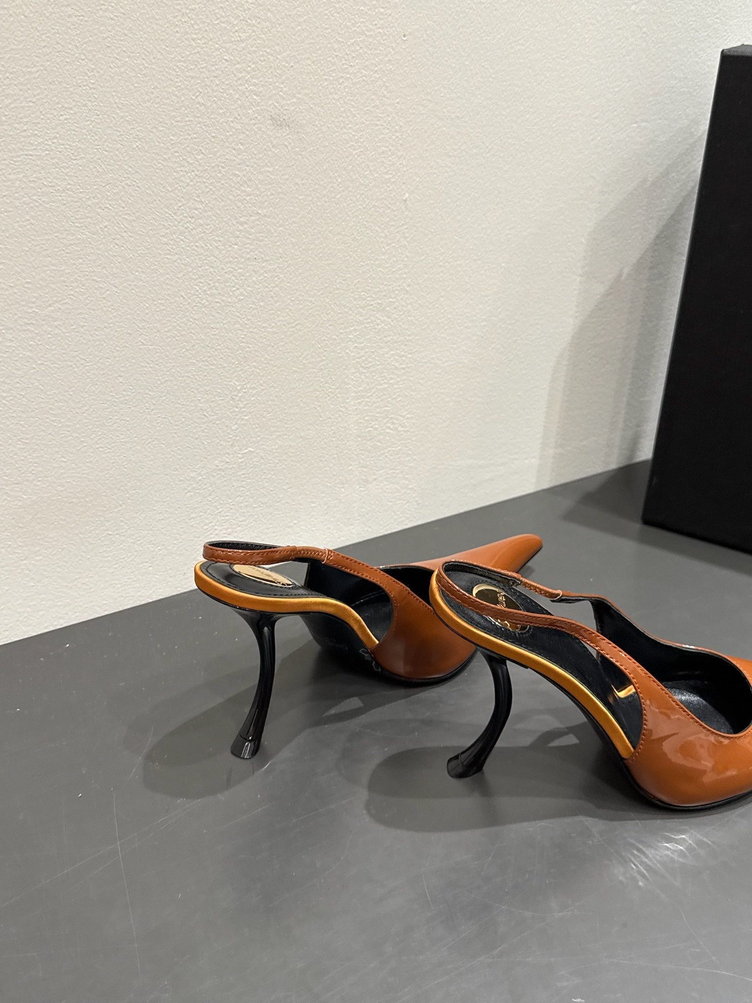 YSL HIGH SLINGBACK 25S IN BURNT ORANGE GLOSSY LAMBSKIN