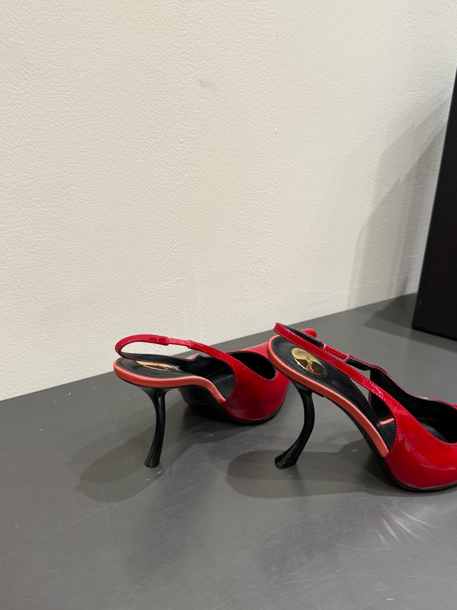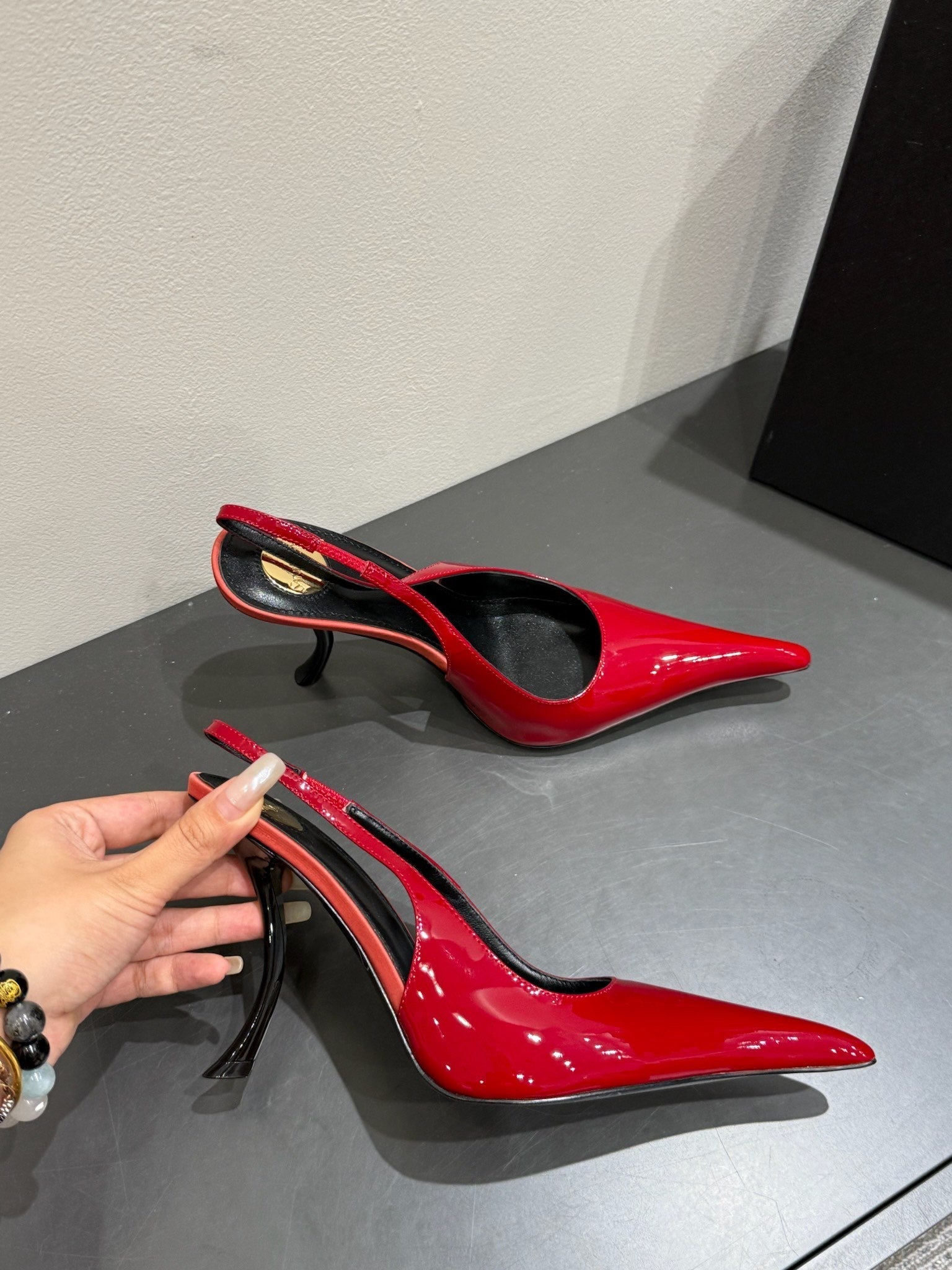 YSL HIGH SLINGBACK 25S IN DARK RED GLOSSY LAMBSKIN
