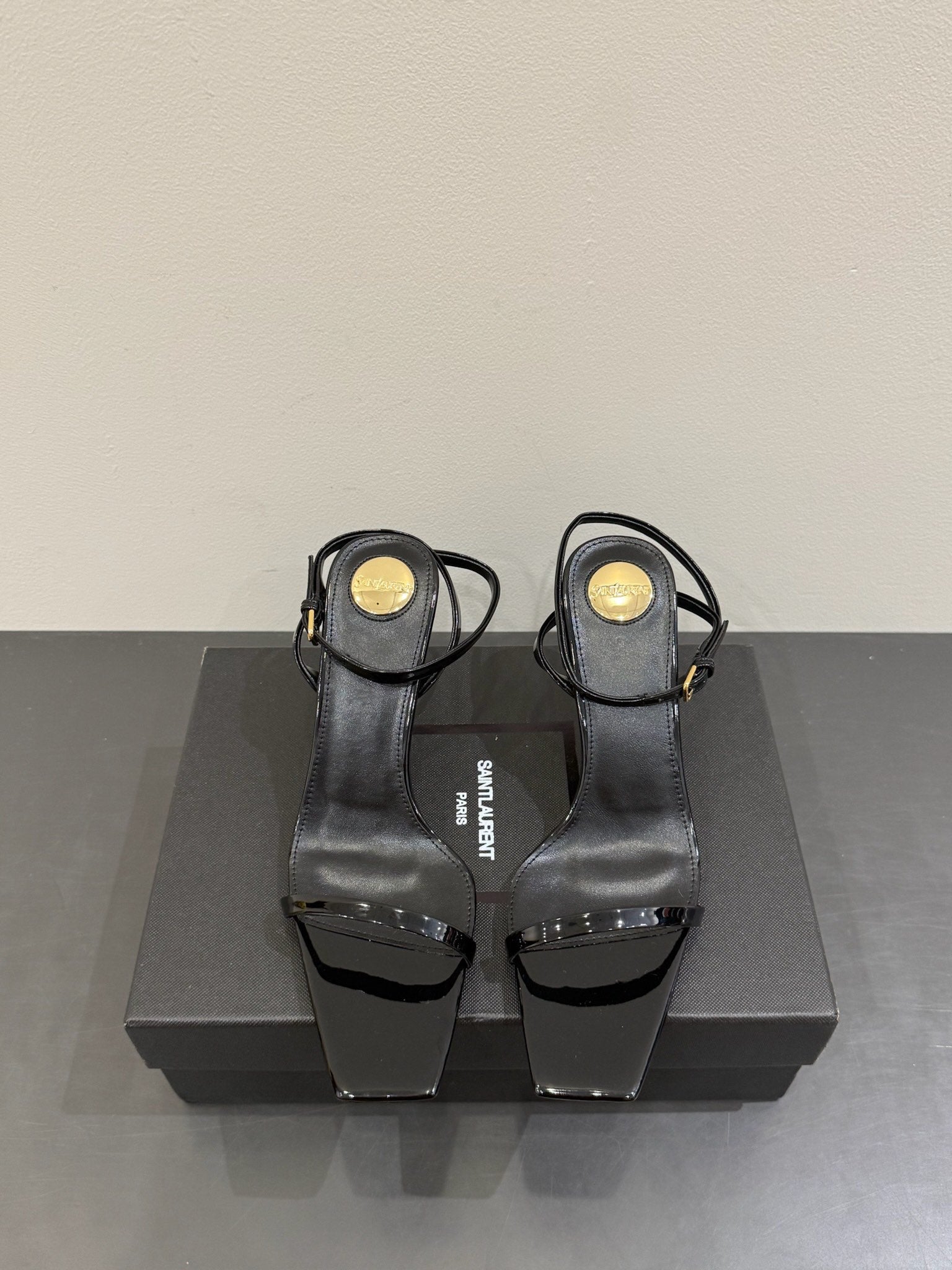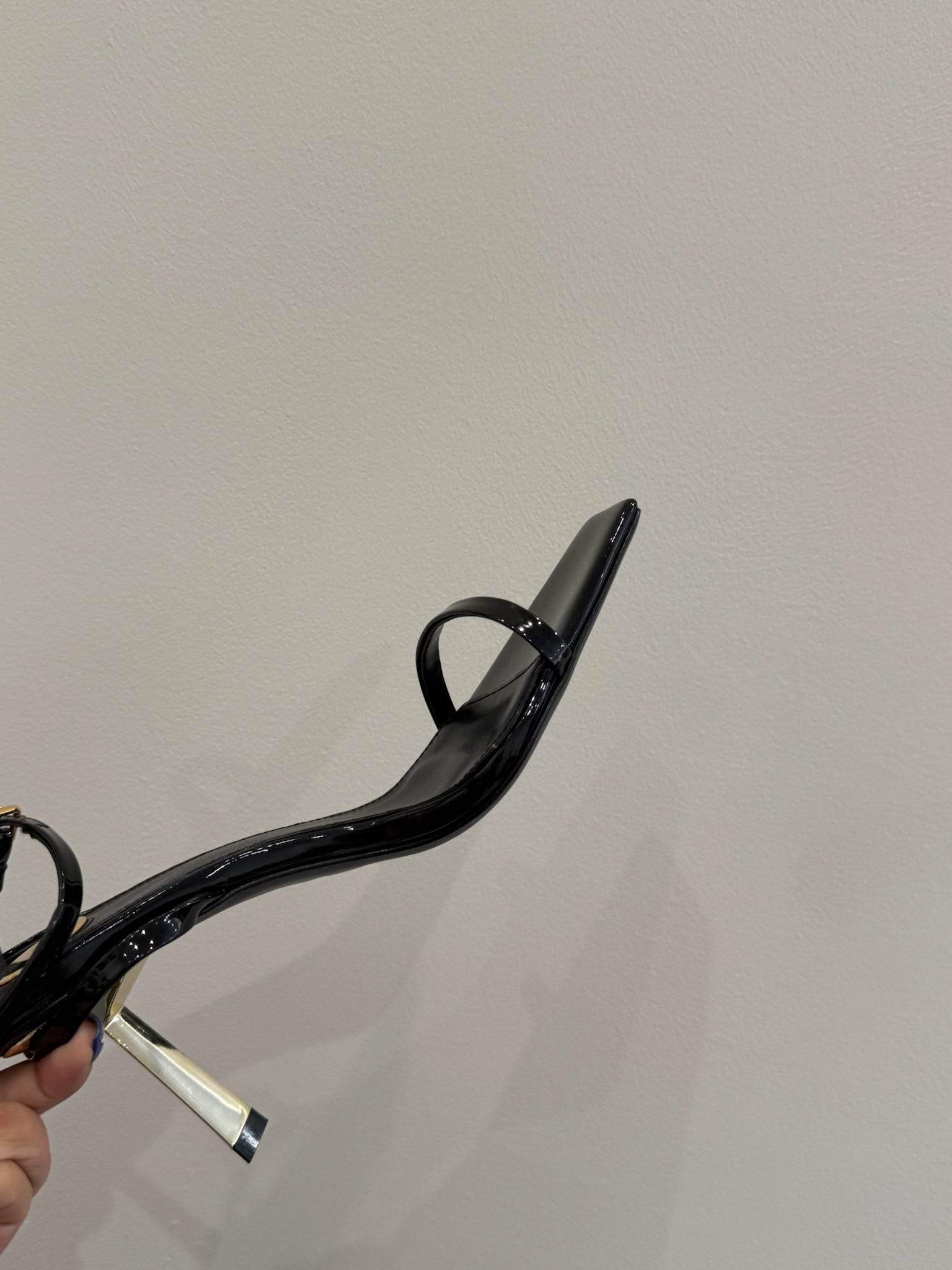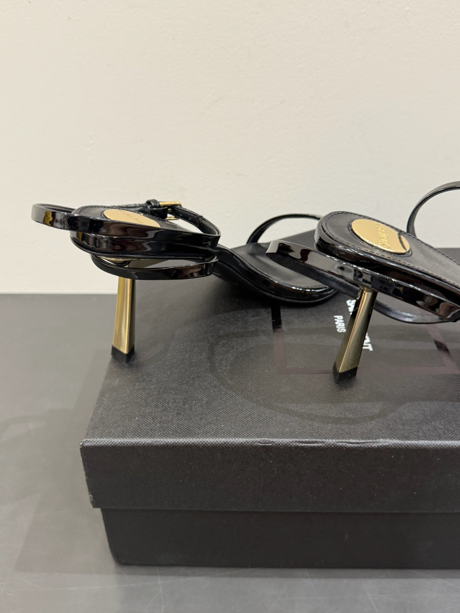YSL KITTEN HEEL SANDALS 25S IN BLACK GLOSSY LAMBSKIN