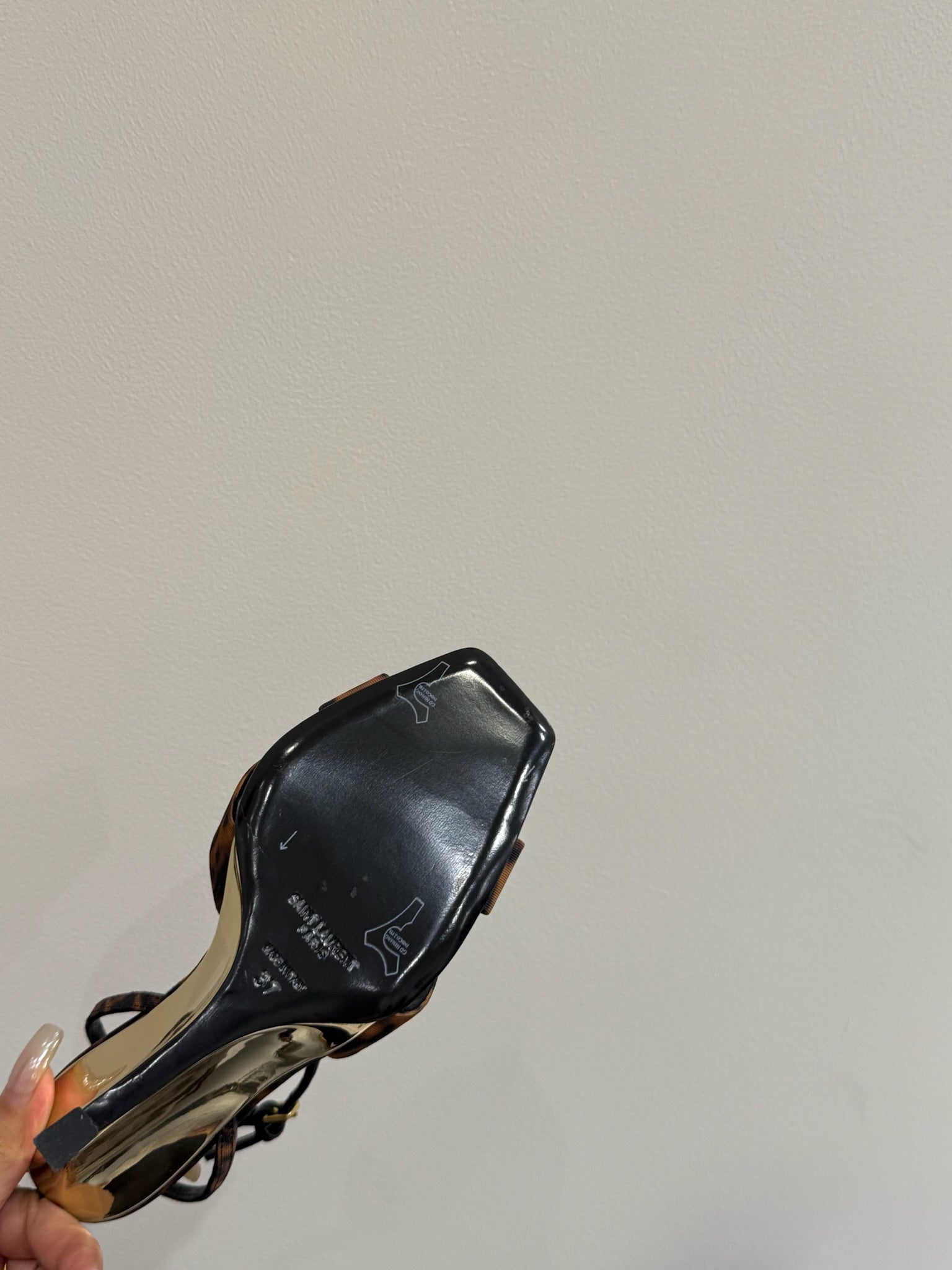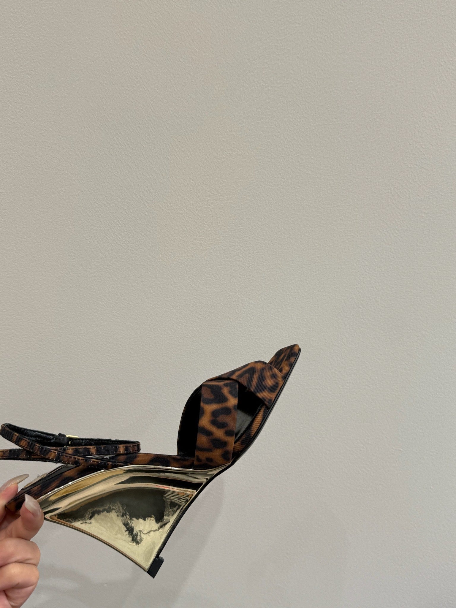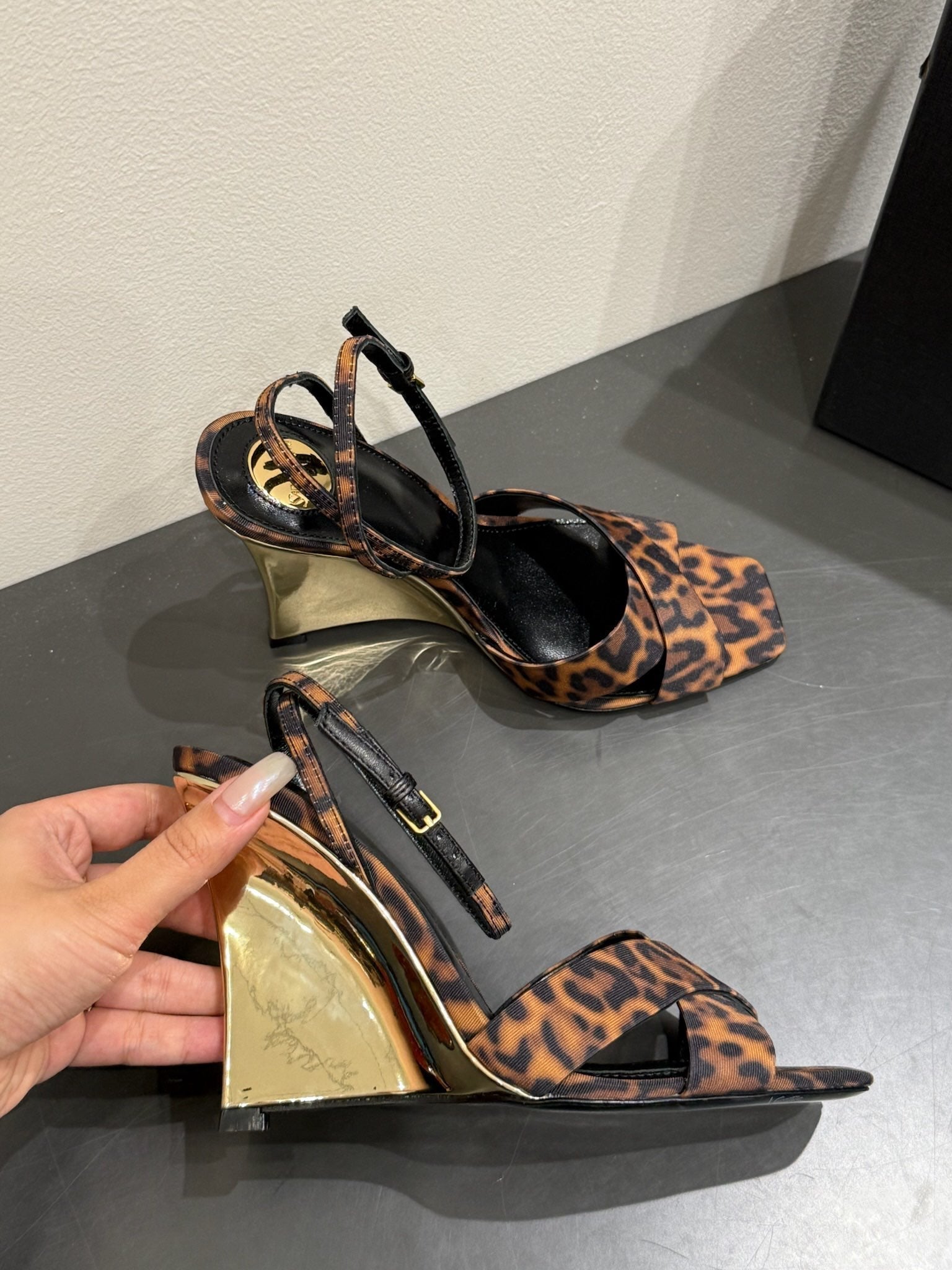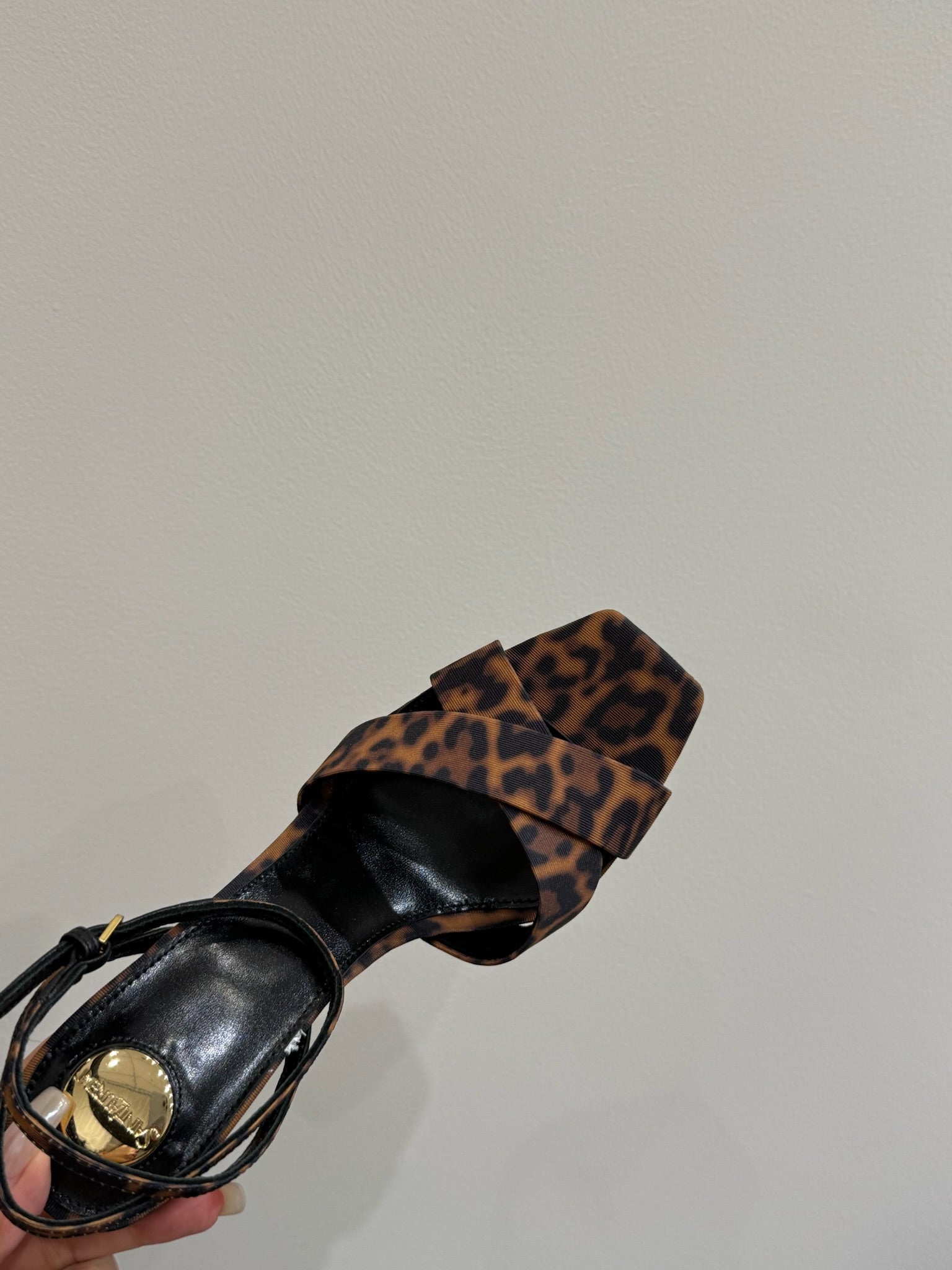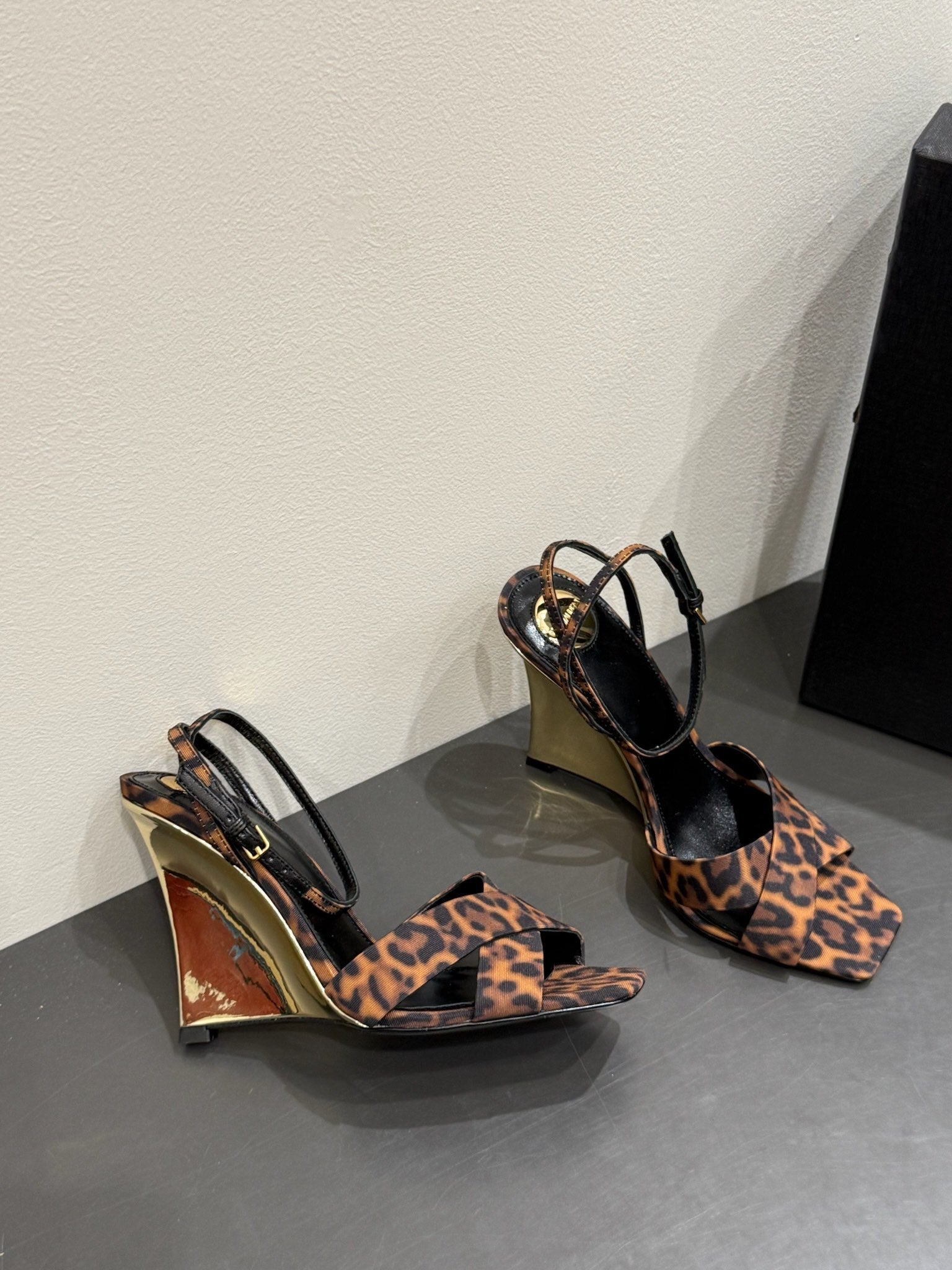 YSL STRAPPY WEDGE SANDALS 25S IN LEOPARD PRINT FABRIC