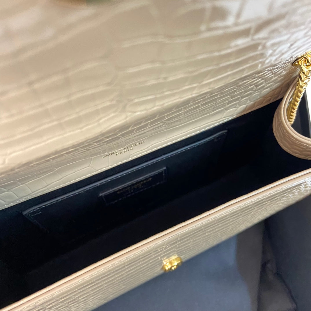 KATE TASSEL 24 CROCODILE PATTERN CALFSKIN BEIGE CREAM WITH GOLD LOGO