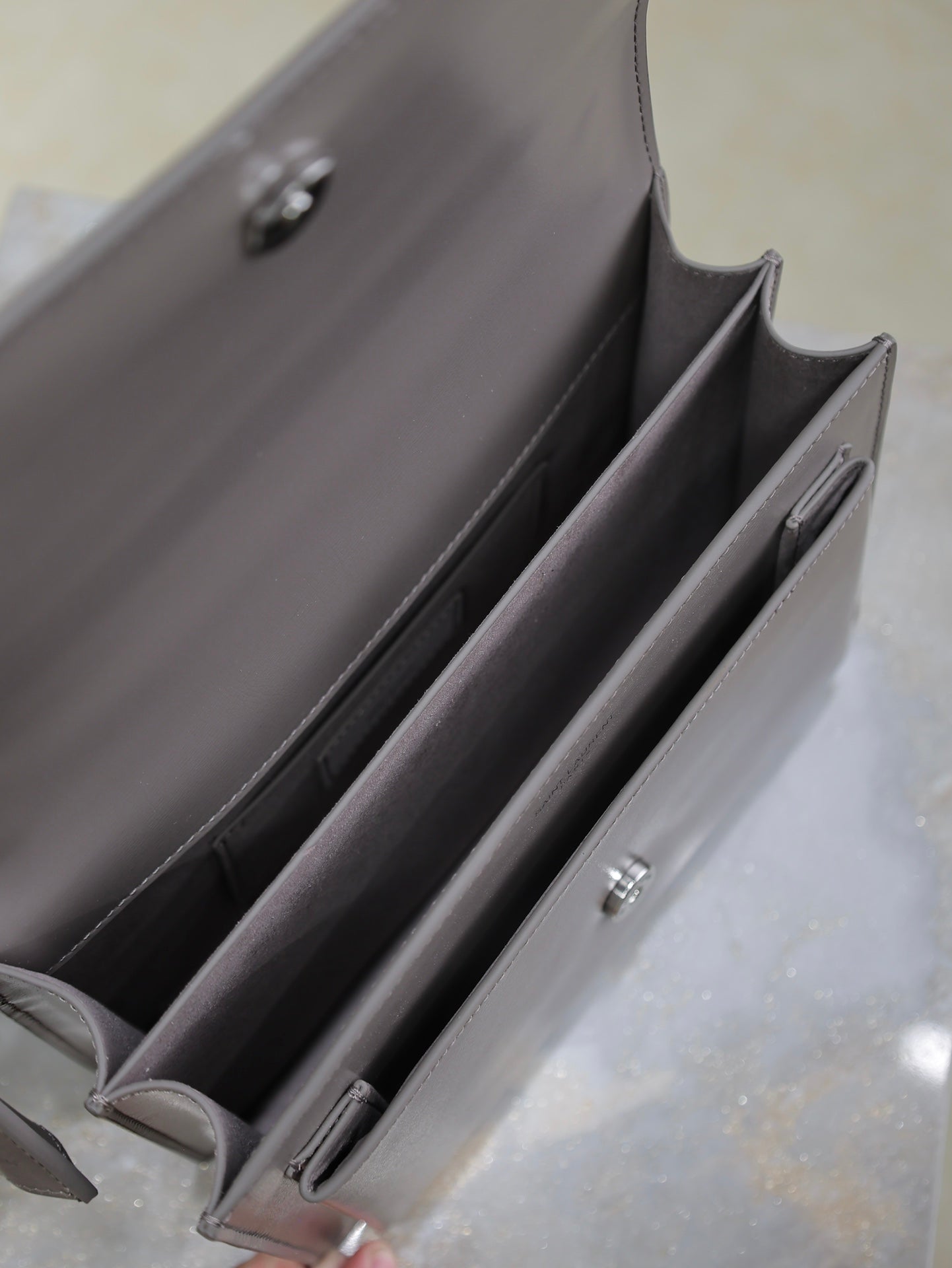 YSL 25S SUNSET BAG 22 IN DARK PURPLE CALFSKIN SILVER HARDWARE