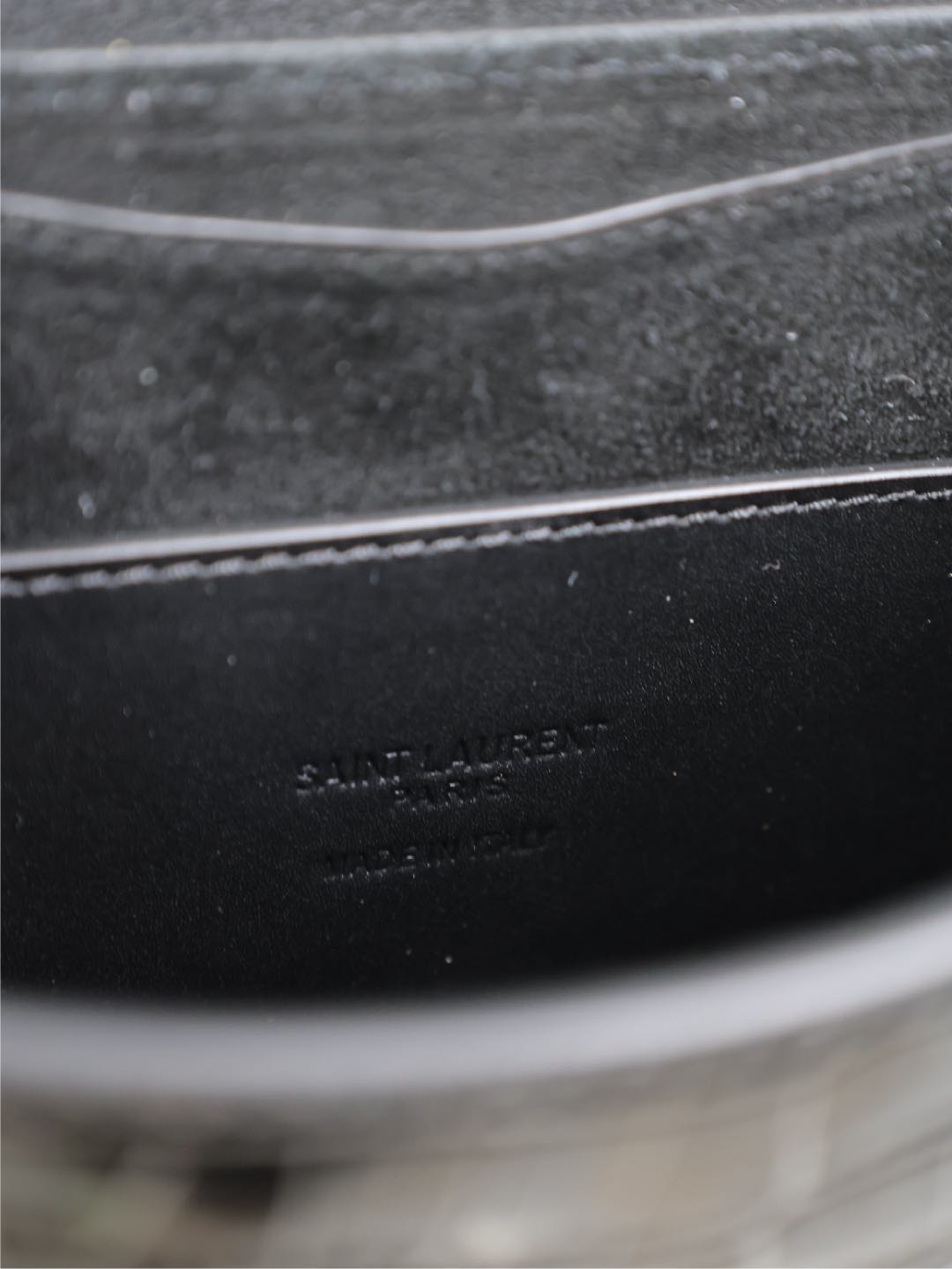 KAIA SMALL CROCODILE PATTERN BAG 18 IN BLACK GLOSSY CALFSKIN COPPER HARDWARE