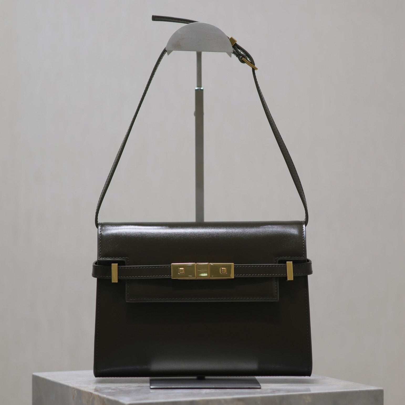 MANHATTAN IN BOX SMALL 24 IN KOMBU GREEN CALFSKIN GOLD HARDWARE
