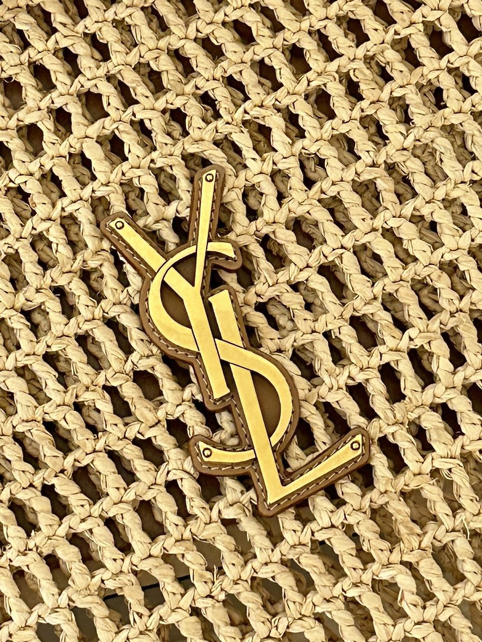 OXALIS 40 IN RAFFIA CROCHET AND LEATHER VINTAGE BROWN