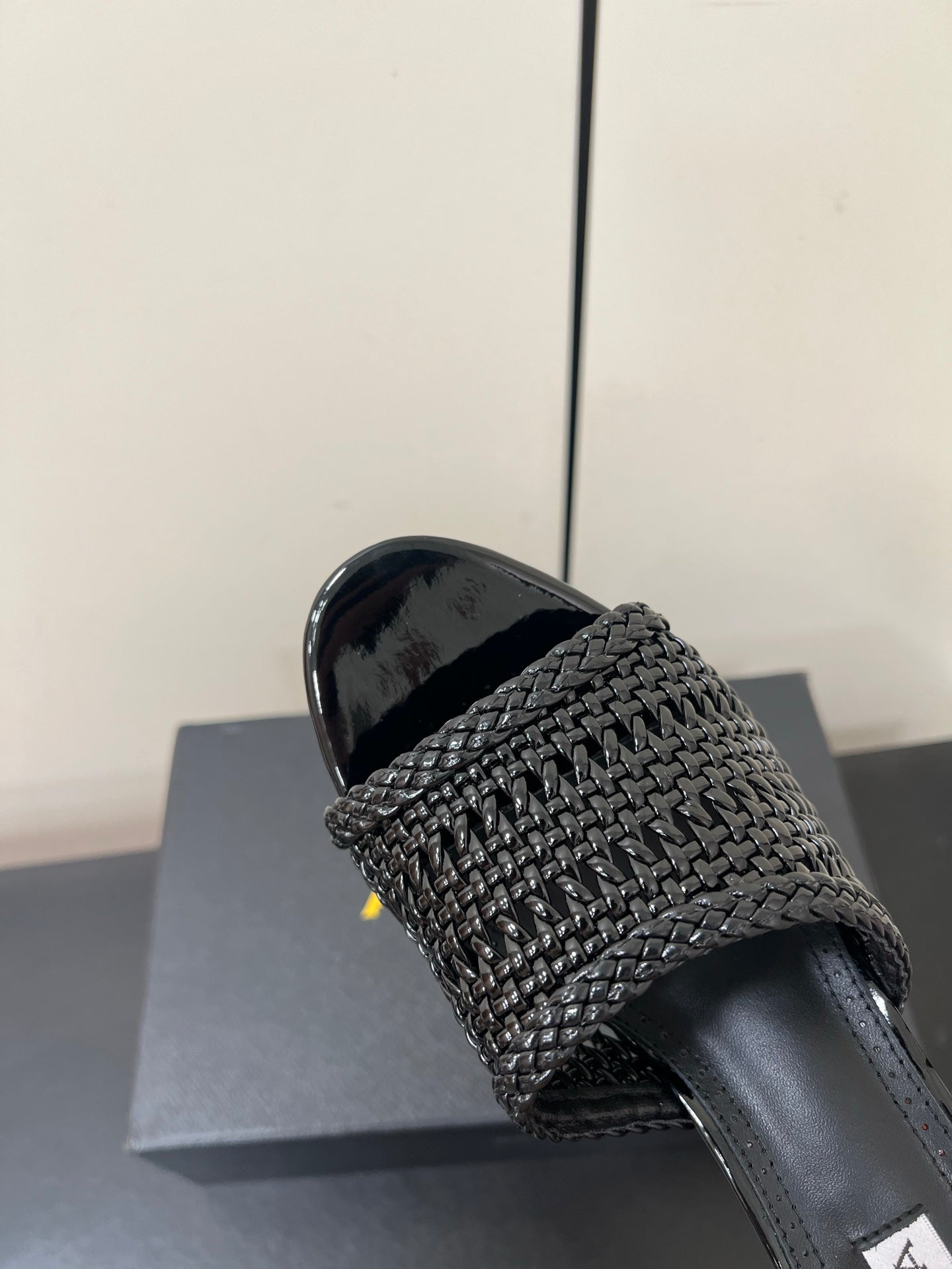 ALAIA HIGH HEEL 25S 70 MM IN BLACK LAMBSKIN WITH WOVEN PATTERN