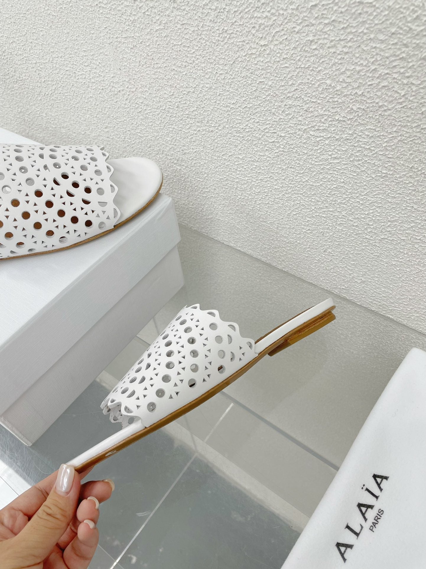 ALAIA VIENNE FLAT MULES IN WHITE LAMBSKIN