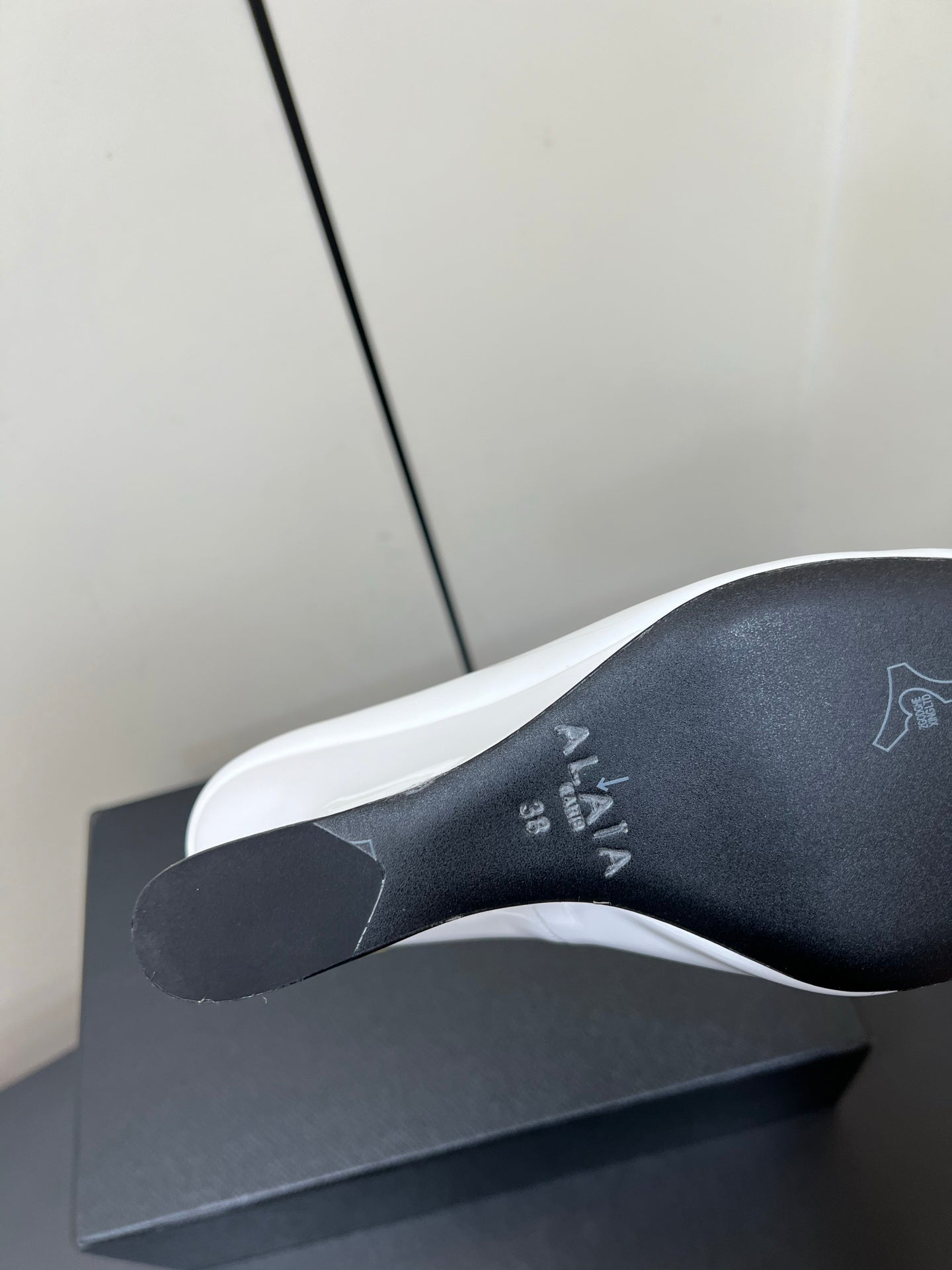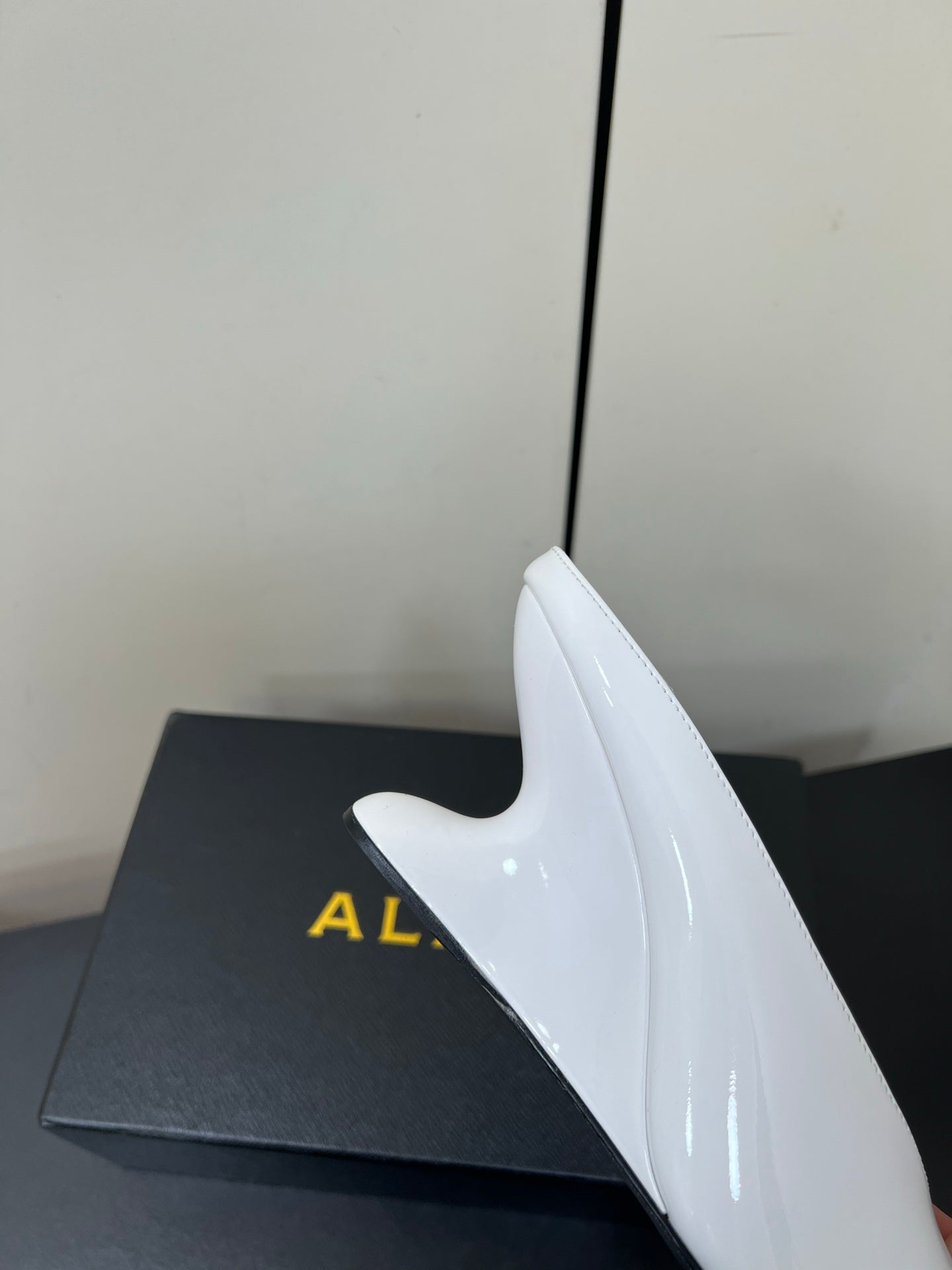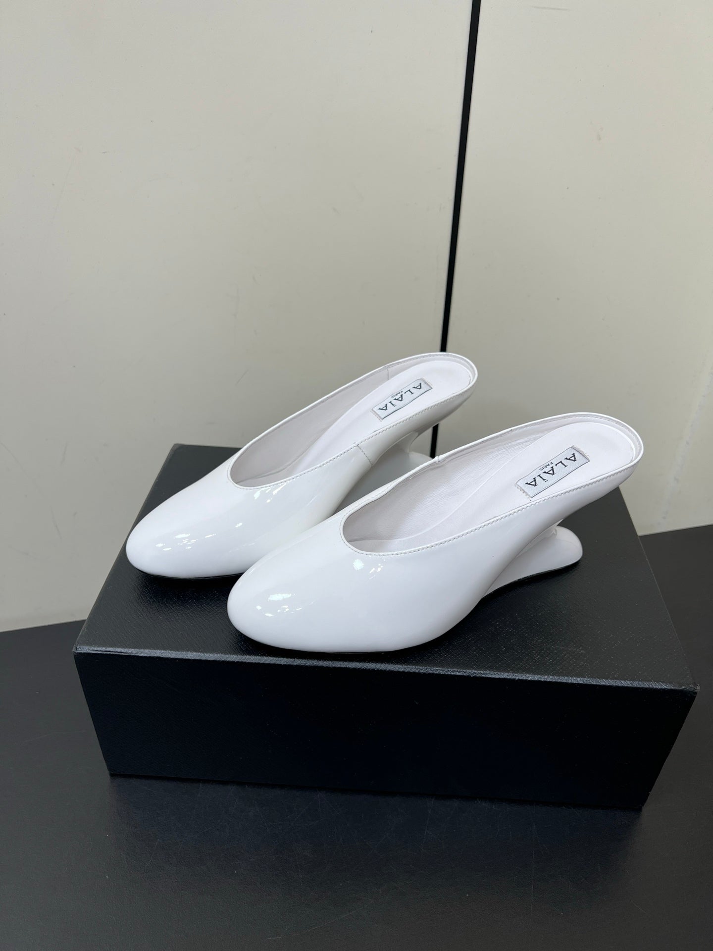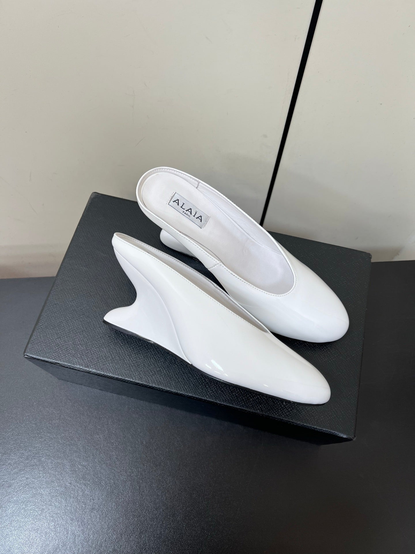 ALAIA WEDGE MULES 25S IN CREAM WHITE LAMBSKIN