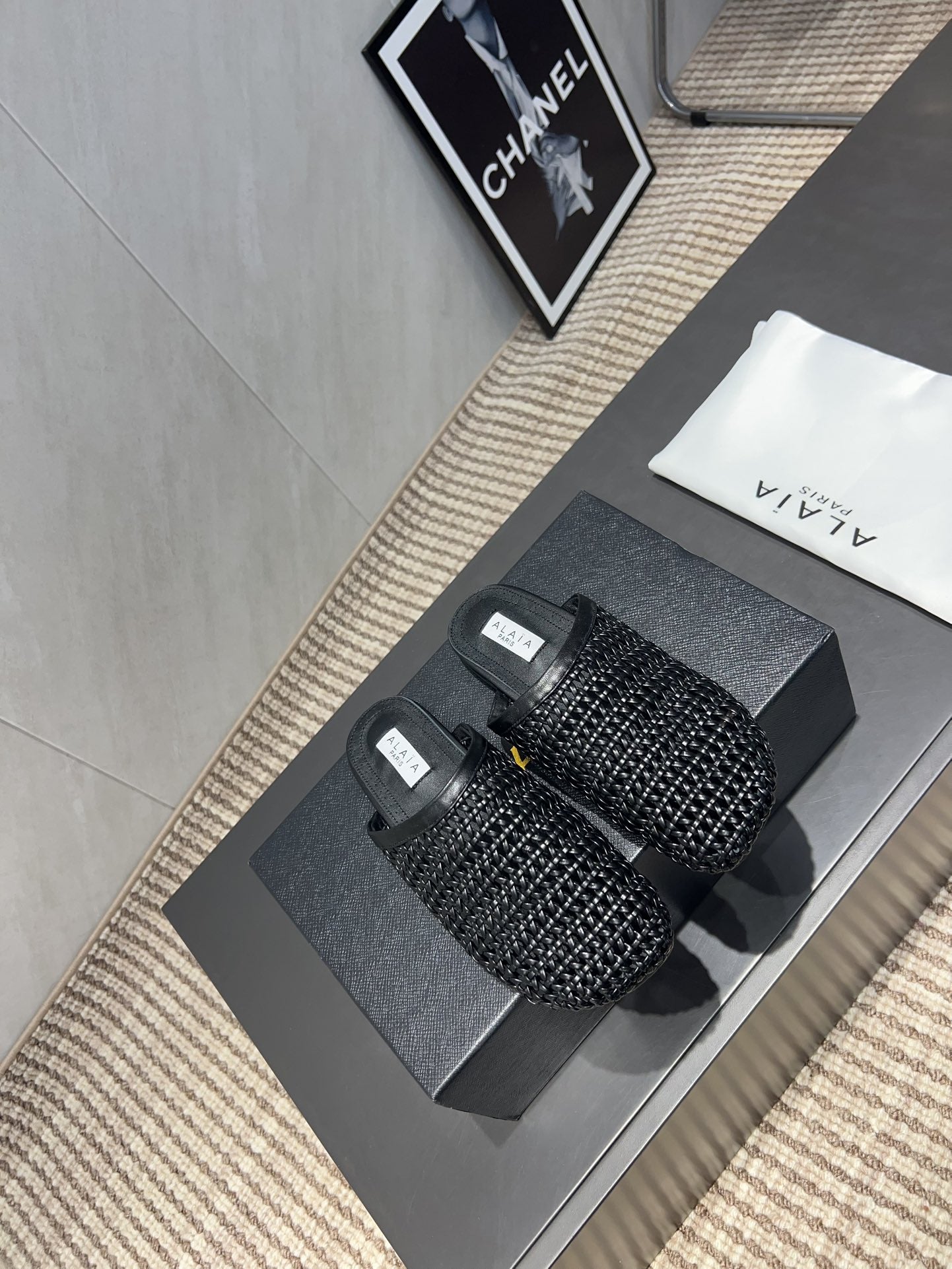 ALAIA WOVEN FLAT SHOES IN BLACK CALFSKIN STYLE 5