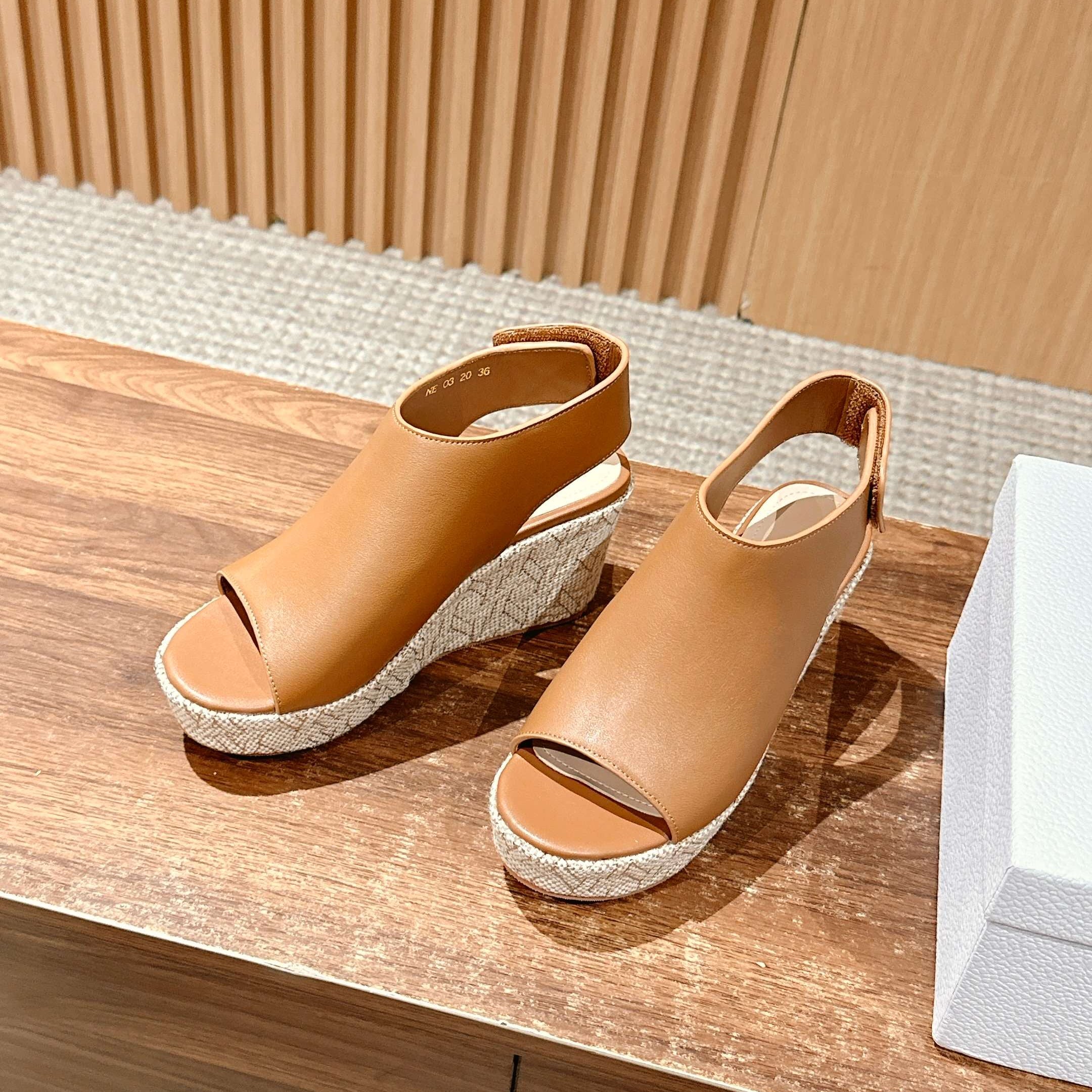 ATTITUDE WEDGE HIGH SLINGBACK 90MM IN BROWN CALFSKIN CANVAS SOLE