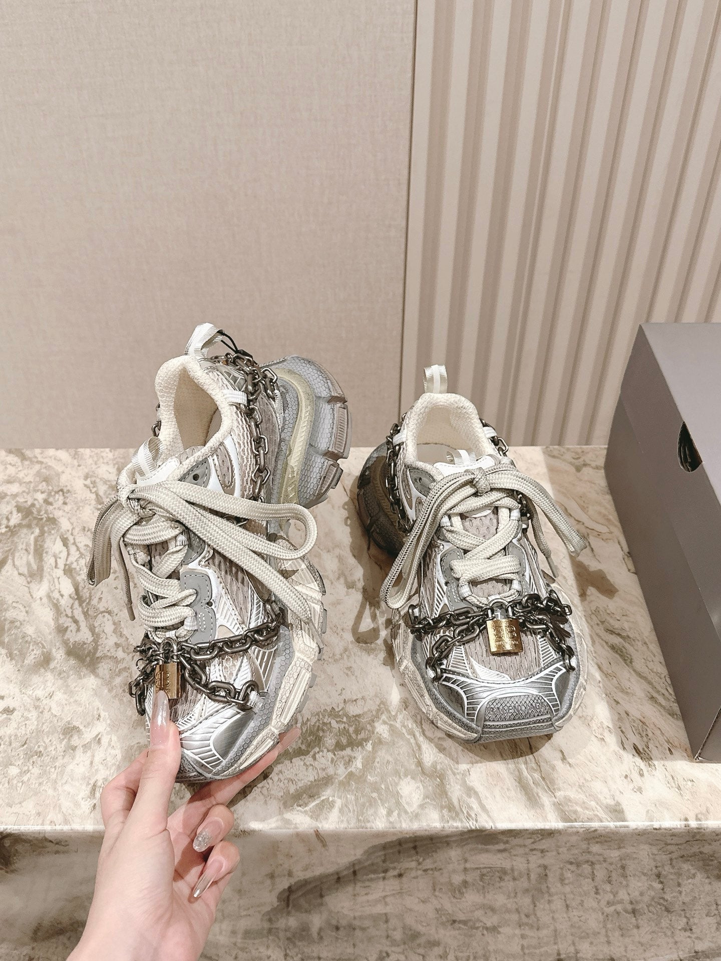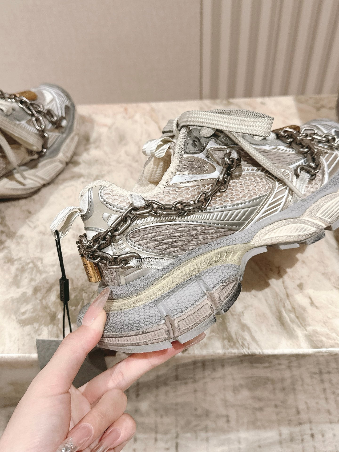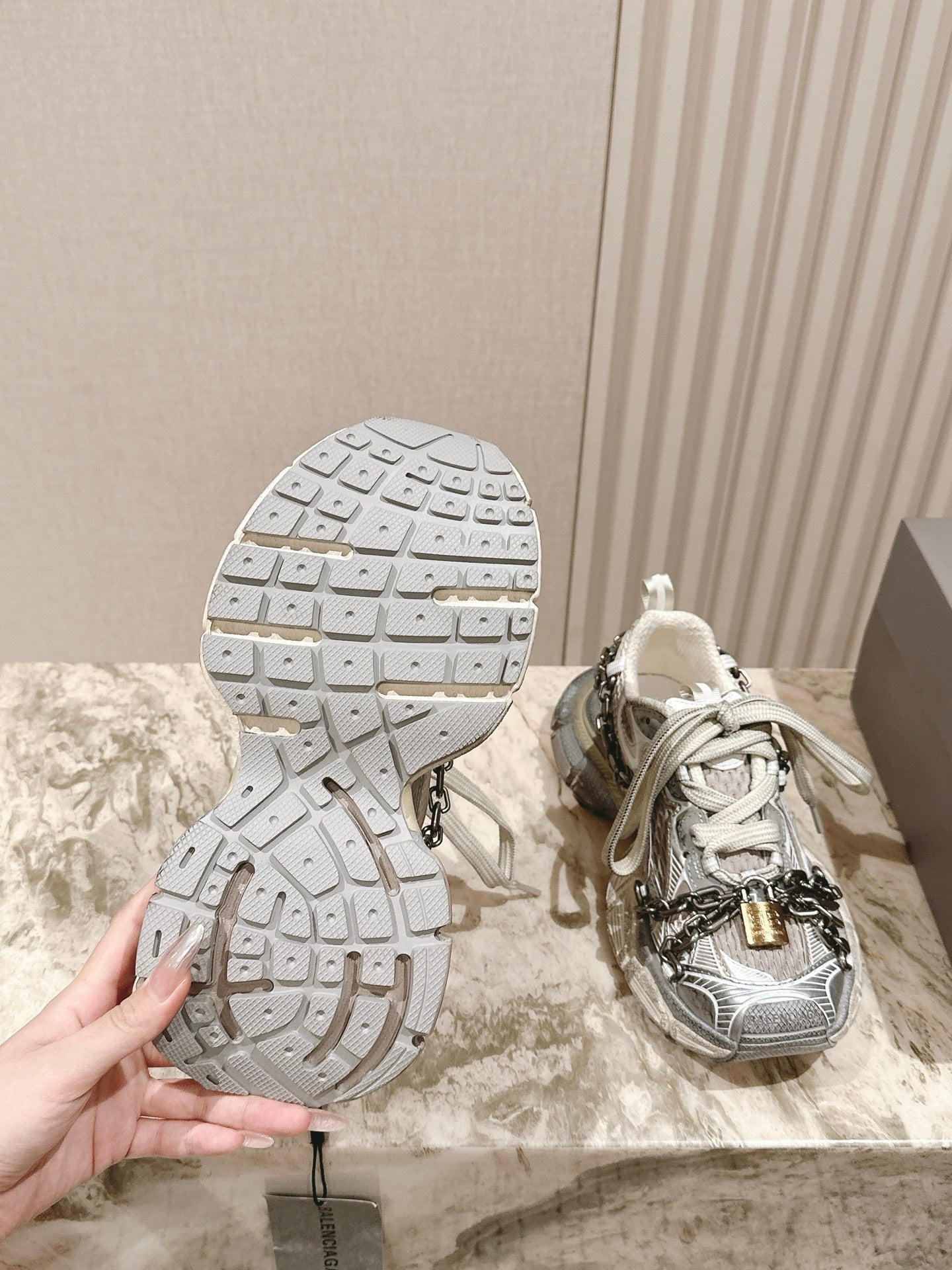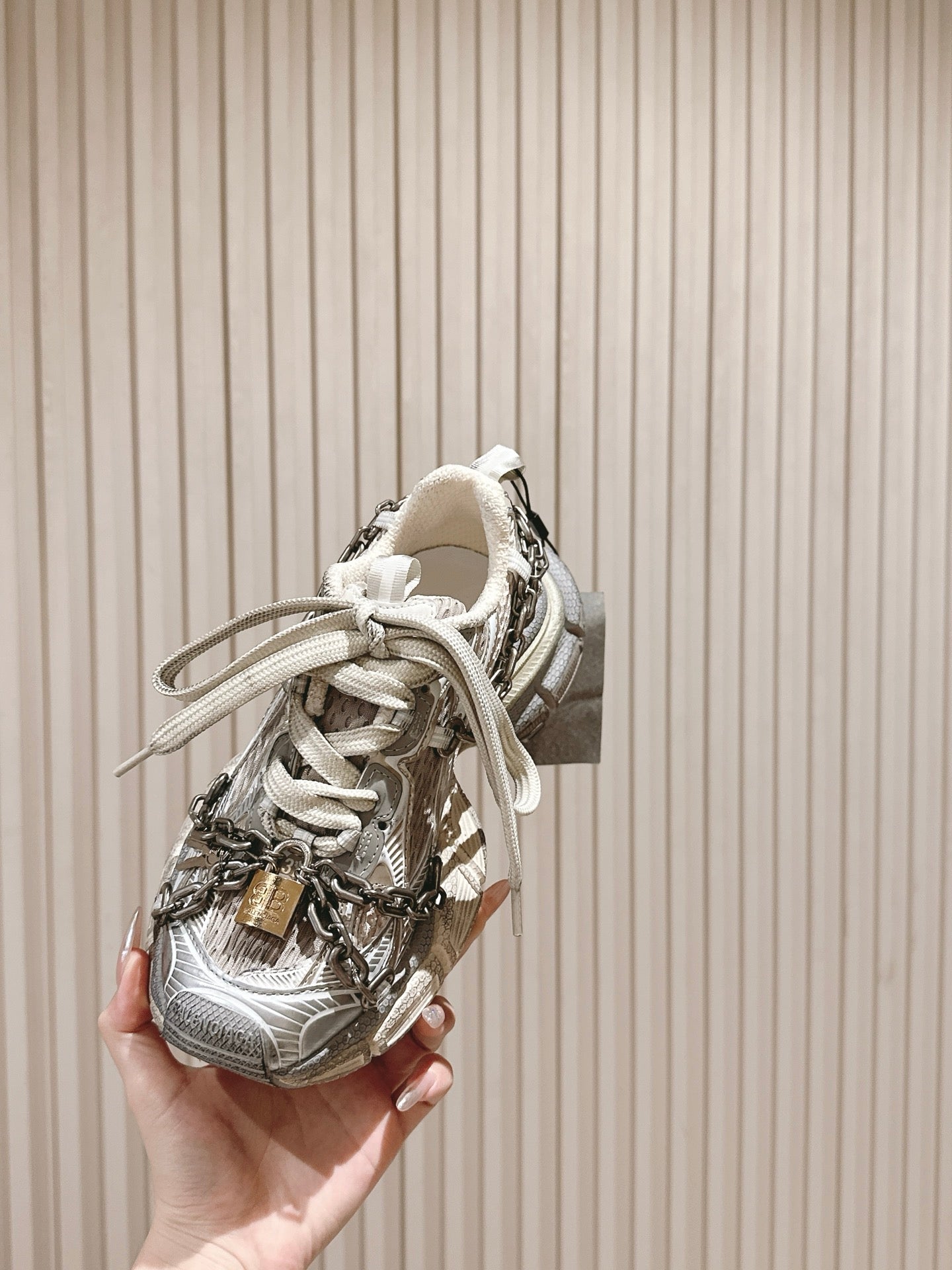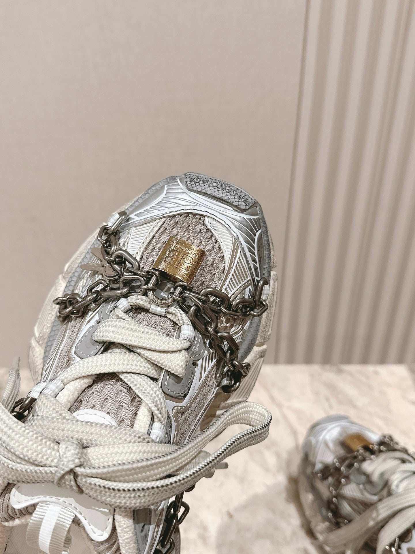 BALENCIAGA 25S 3XL SNEAKERS CHAIN-PADLOCK IN BEIGE MESH FABRIC AND SILVER PU