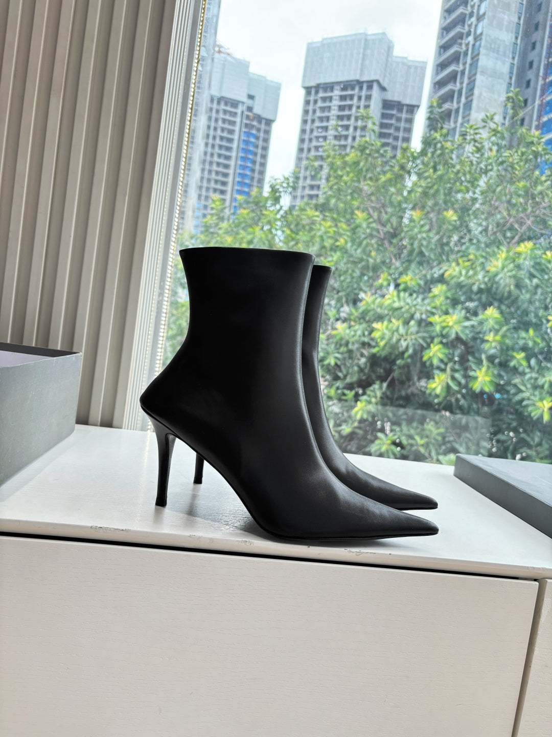 BALENCIAGA 25S ANKLE BOOTS WITH ZIPPER IN BLACK COW LEATHER