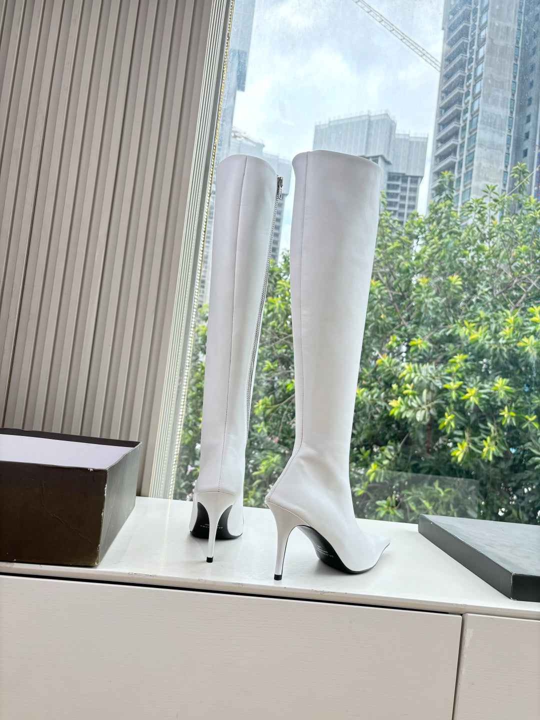 BALENCIAGA 25S HIGH BOOTS WITH ZIPPER IN WHITE COW LEATHER